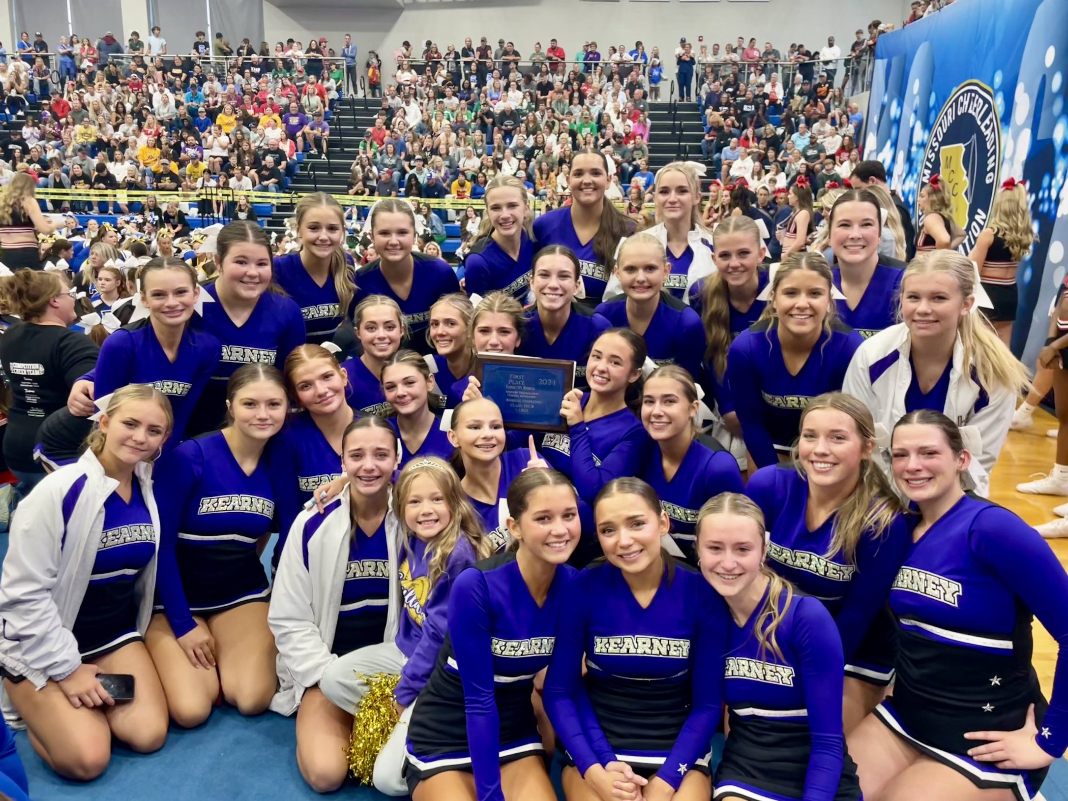 Kearney, Mo., September 30, 2024: The Kearney High School Cheer squad earned the first-place trophy at the Kansas City Regional Championships yesterday in Liberty.