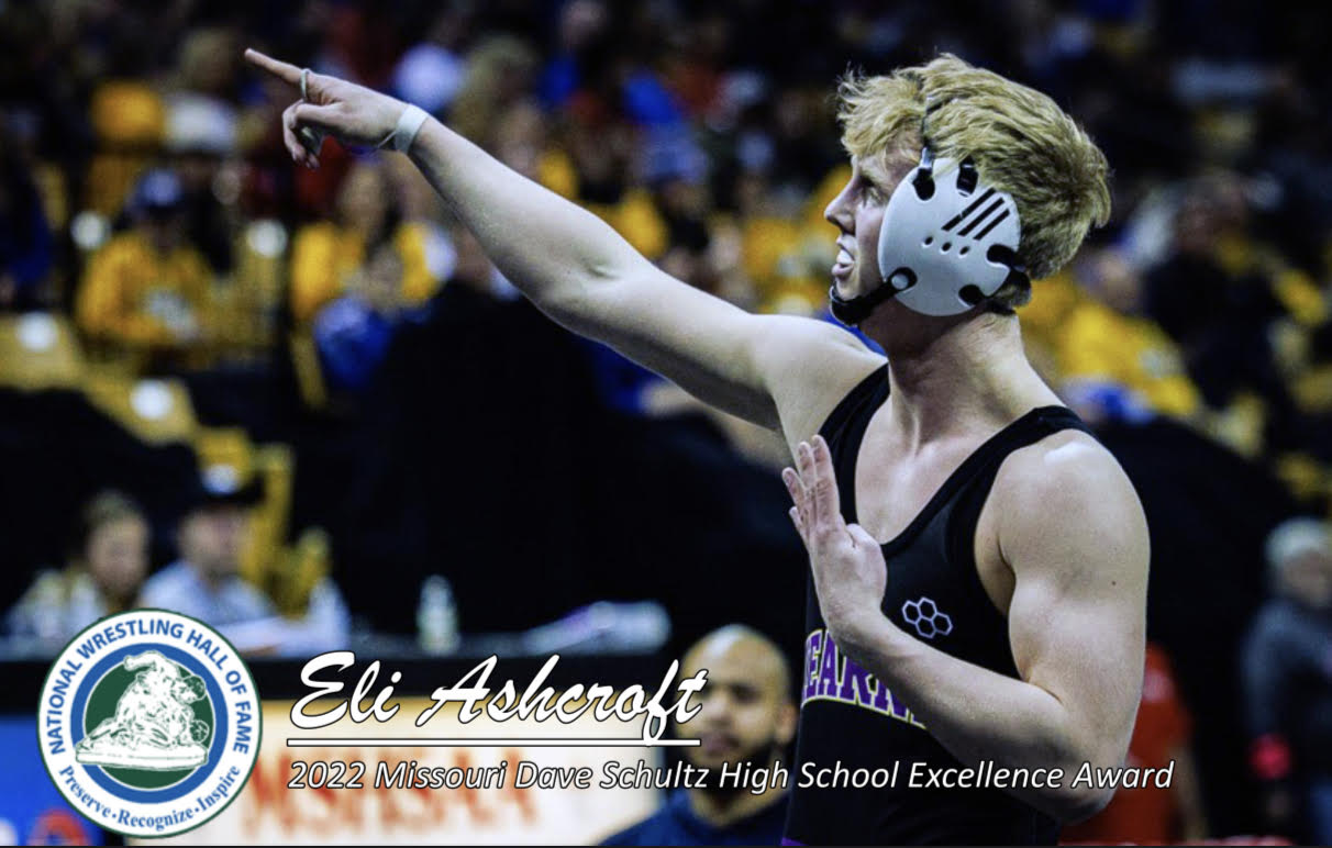 Congratulations to Kearney High School senior Eli Ashcroft for being named Missouri’s Dave Schultz High School Excellence Award Winner as selected by the National Wrestling Hall of Fame! This award is presented annually to a male high school senior based equally on outstanding wrestling success, scholastic achievement, and citizenship or community service. Mr. Ashcroft earned four straight state wrestling titles during his time at KHS. He will be attending Kent State. LEARN MORE