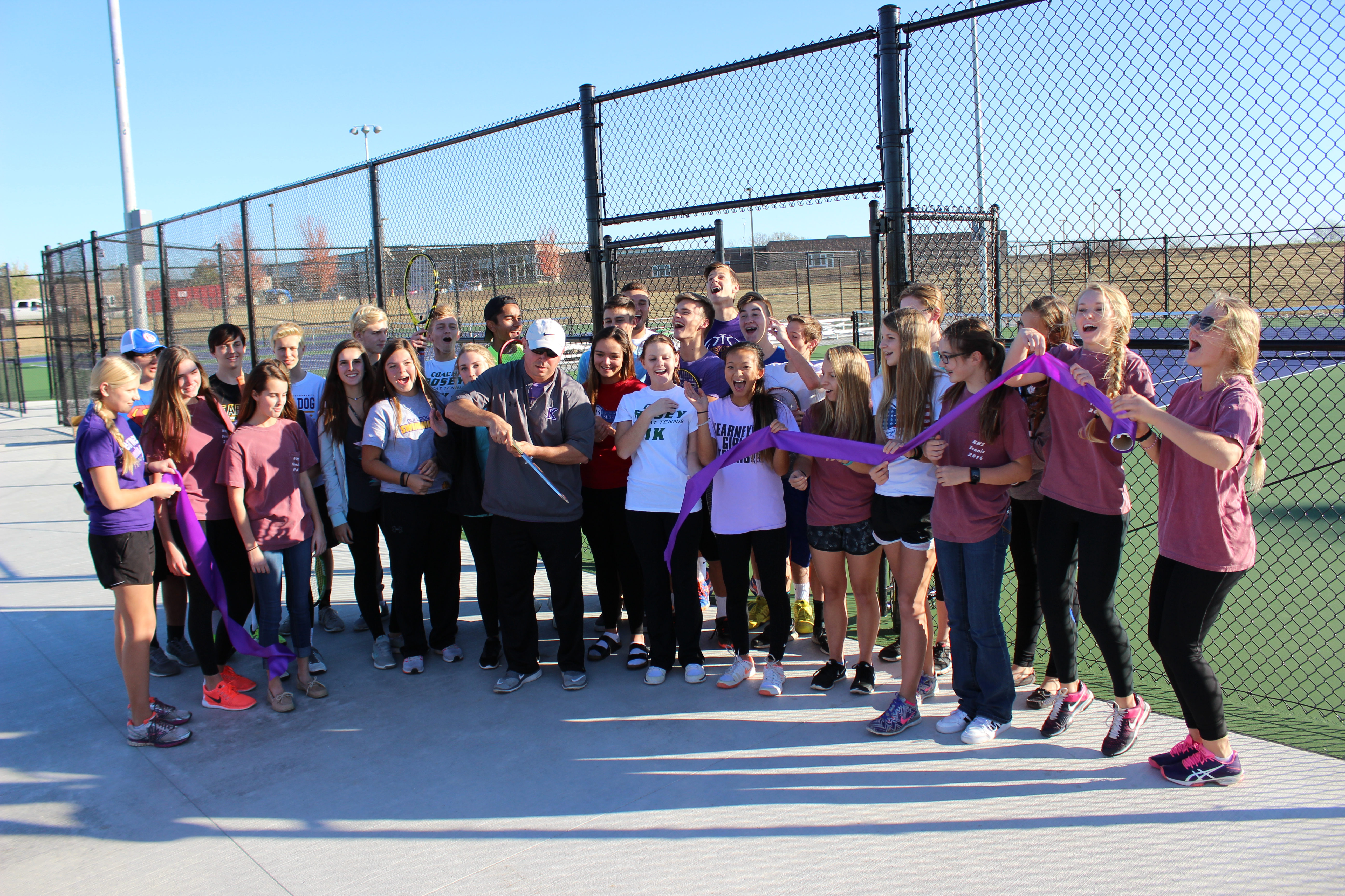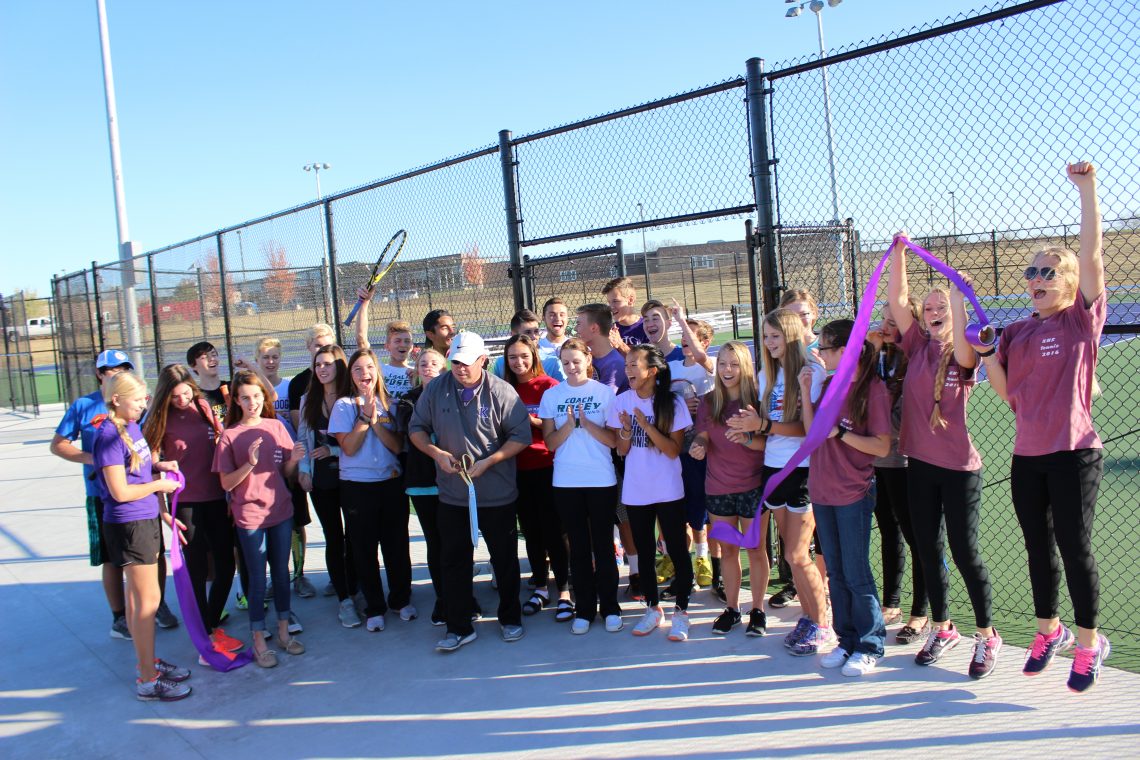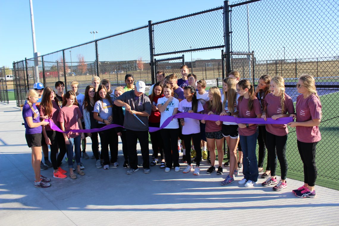 KSD celebrated the newly-built tennis courts with a ribbon cutting ceremony, and a few friendly matches between students and staff. The new courts are located on the south side of Bulldog Stadium. Athletic Director, Eric Marshall helped the boys and girls tennis teams cut the purple ribbon in celebration of its completion.