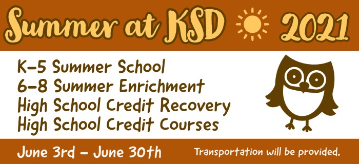 As we look ahead to summer, here are a few important details and dates to keep in mind. KSD is pleased to announce transportation will be provided this year!