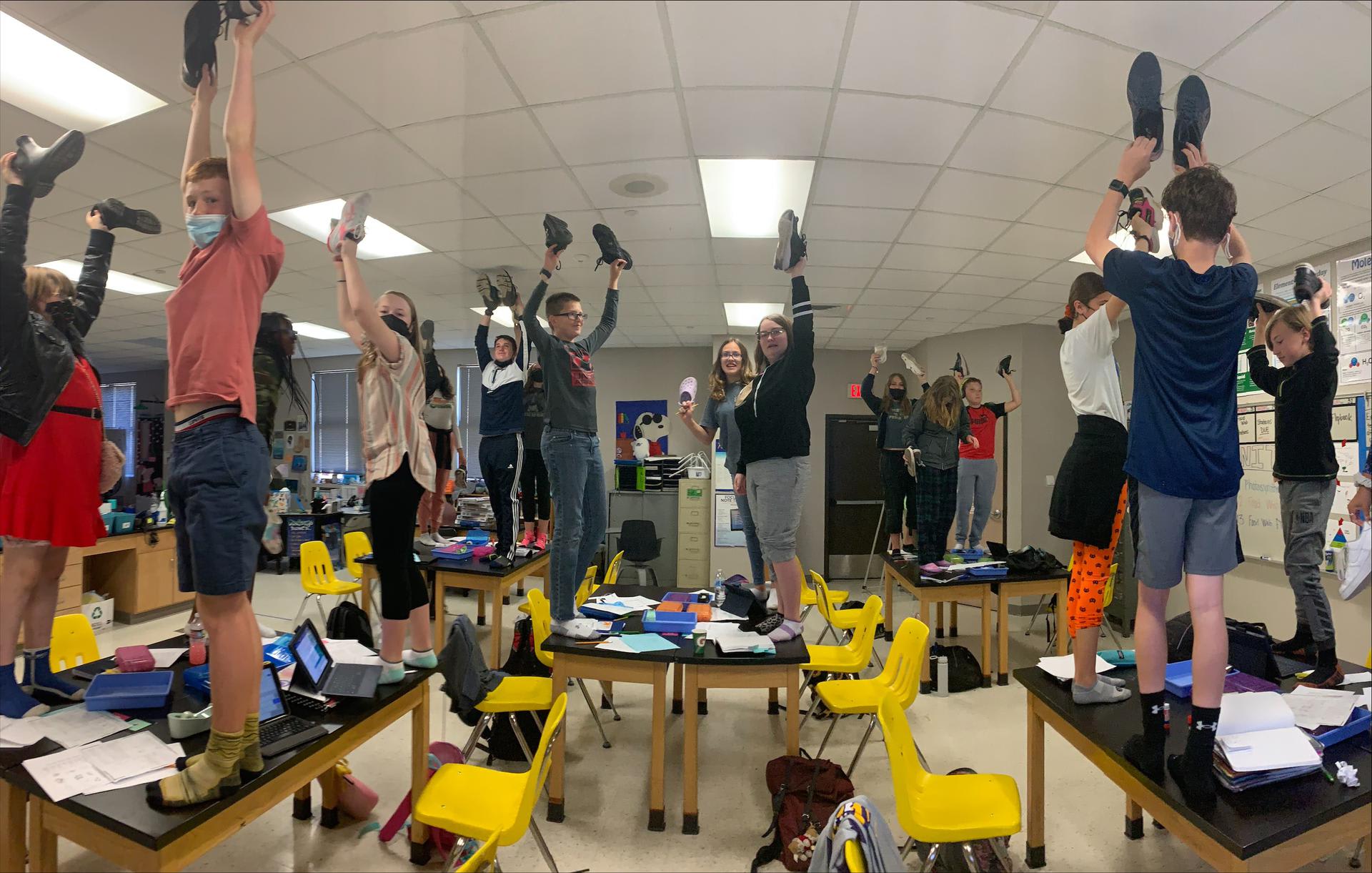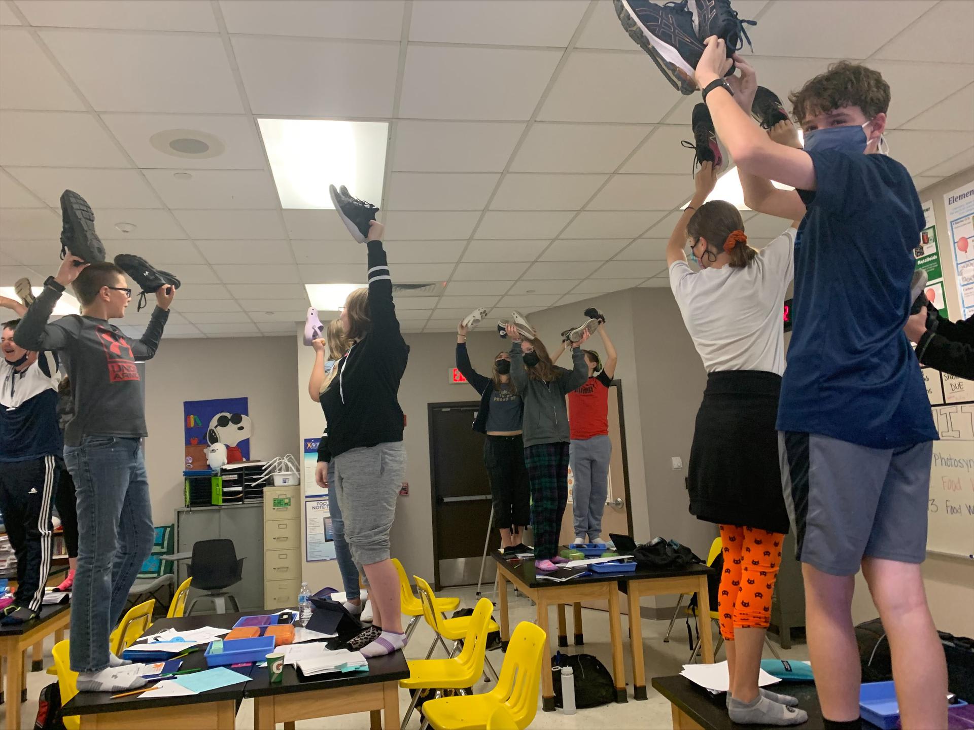 7th graders prepare for all emergencies. Just ask them. In case of a flood, removes your shoes and hold them over your head so they don’t get wet and then stand on top of your desk. What do you do next??? Well, you smile because your teacher pranked you on April Fools! |