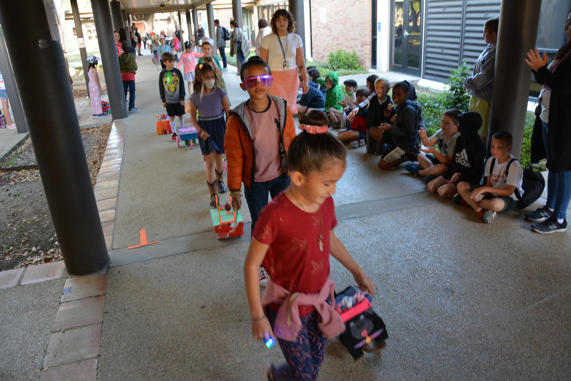 Fiesta Shoe Box parade is back! This year 1st and 3rd graders used their creativity to make amazing floats. They rolled through the ramps and breezeways as fellow students, teachers, and parents cheered them on! It was quite a site!