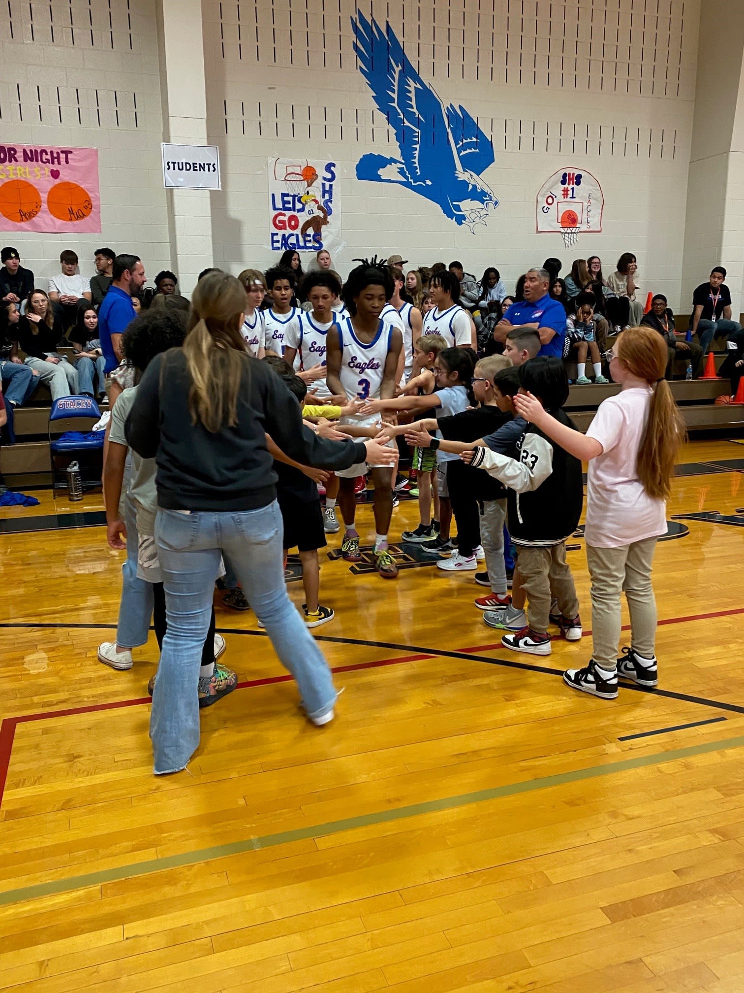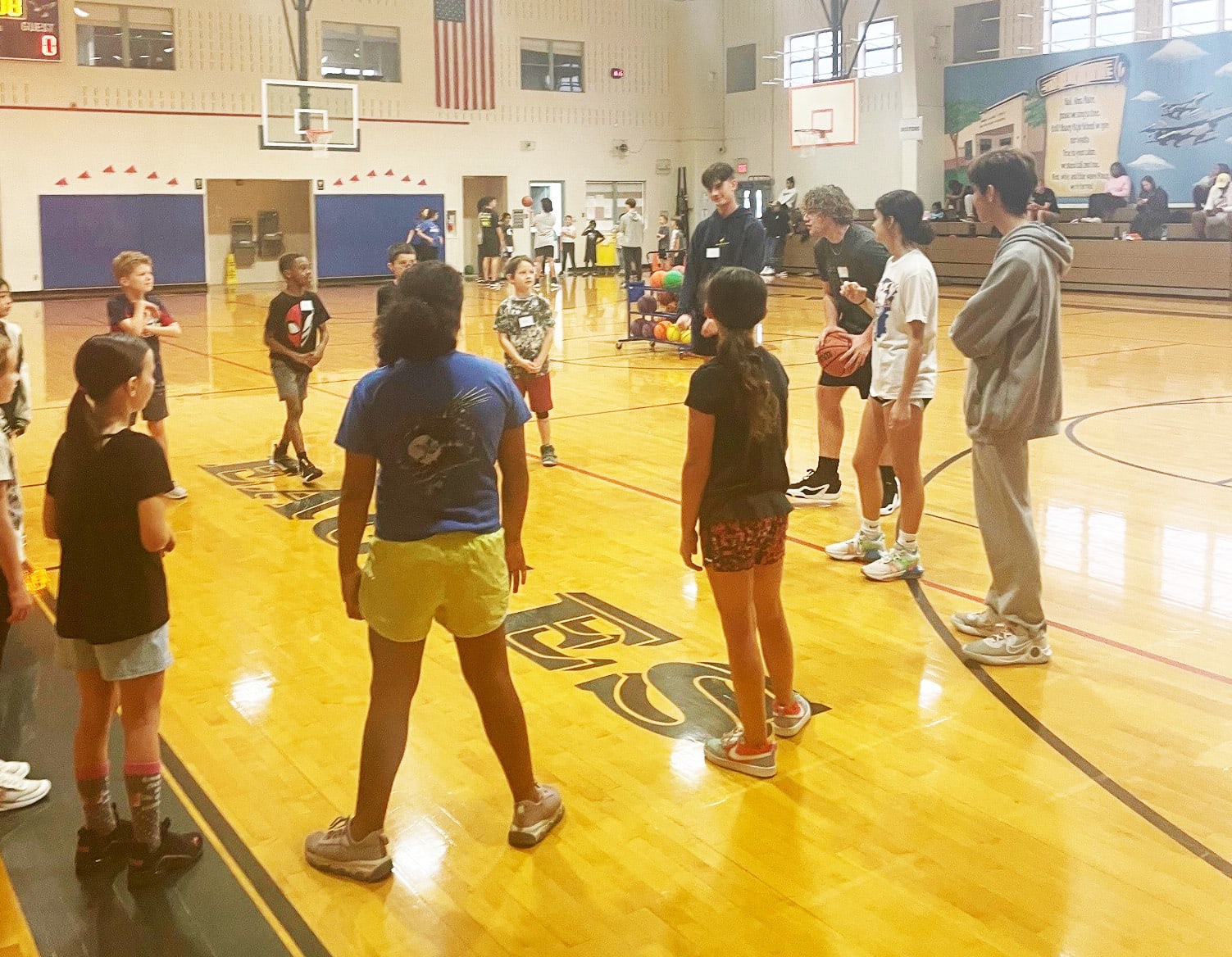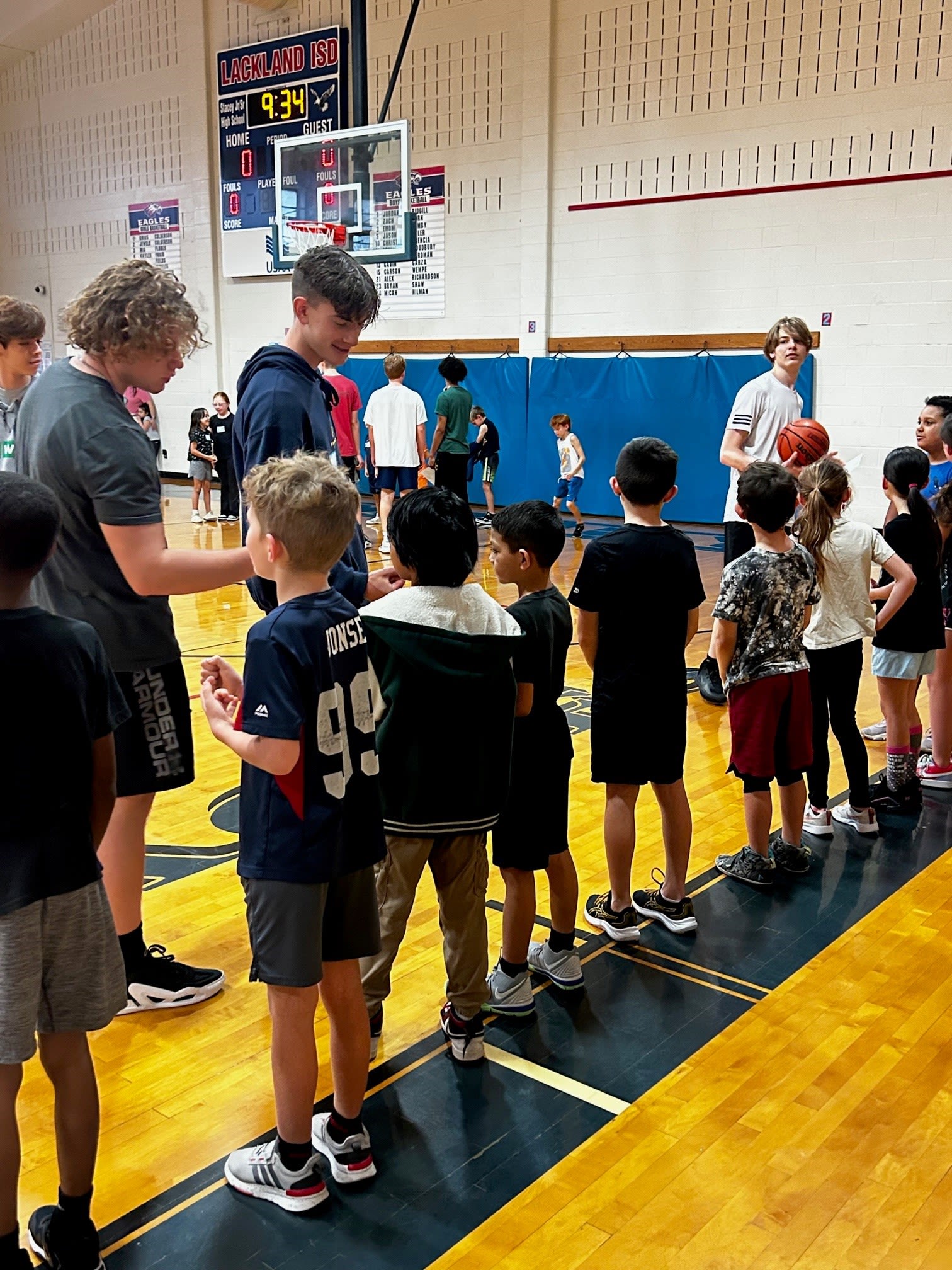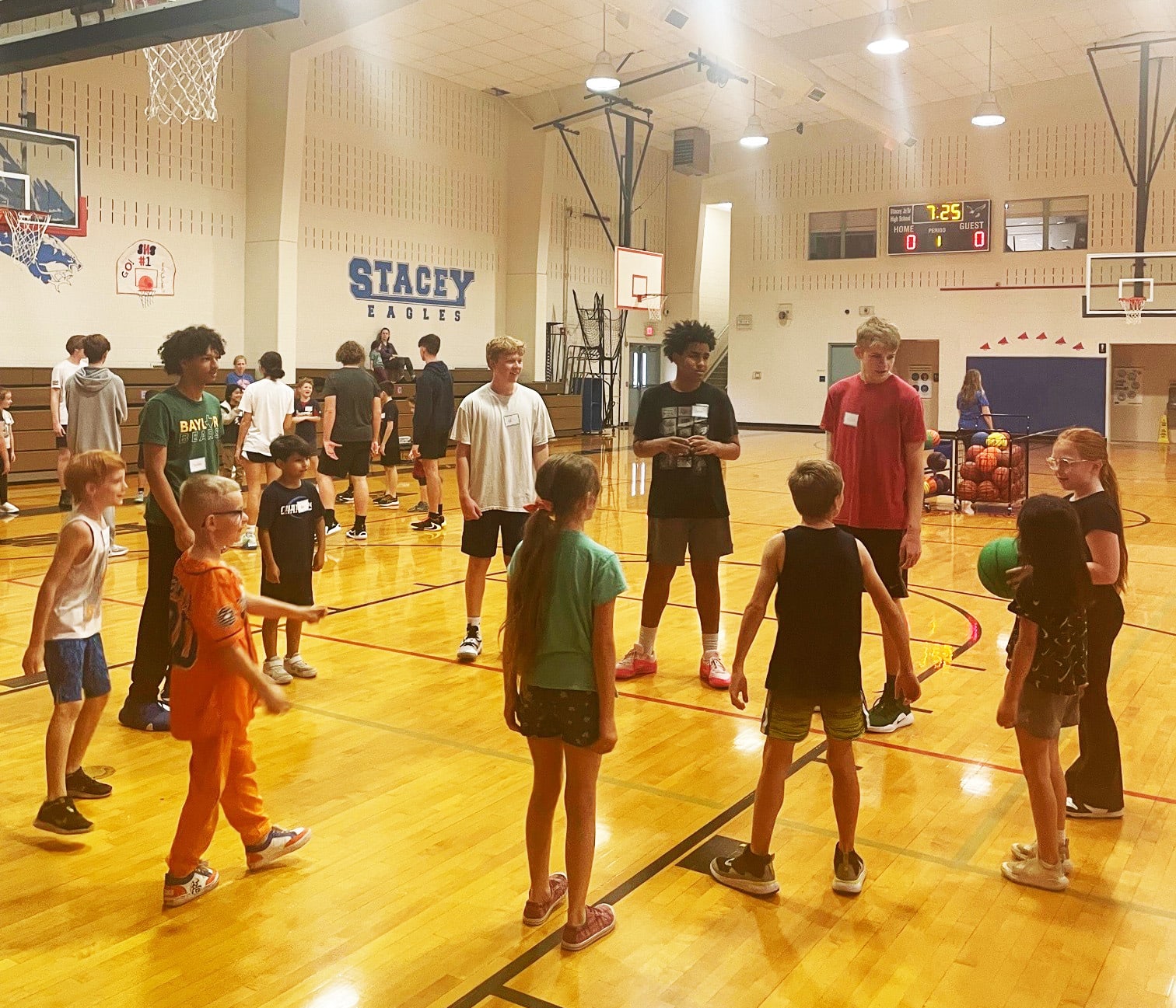 On Saturday, February 10th, Mrs.Duron’s Family and Community Service class hosted a basketball camp for the third graders. The varsity boys basketball team helped them with their dribbling, passing, and teamwork skills. This camp was a good opportunity for the team to teach basket ball basics and be a positive role model to the little ones. Following the camp, the campers were invited to attend the basketball game and were able to participate in a halftime shoot around. It was great to have extra fans in the crowd to cheer on their district champions at their last home game.