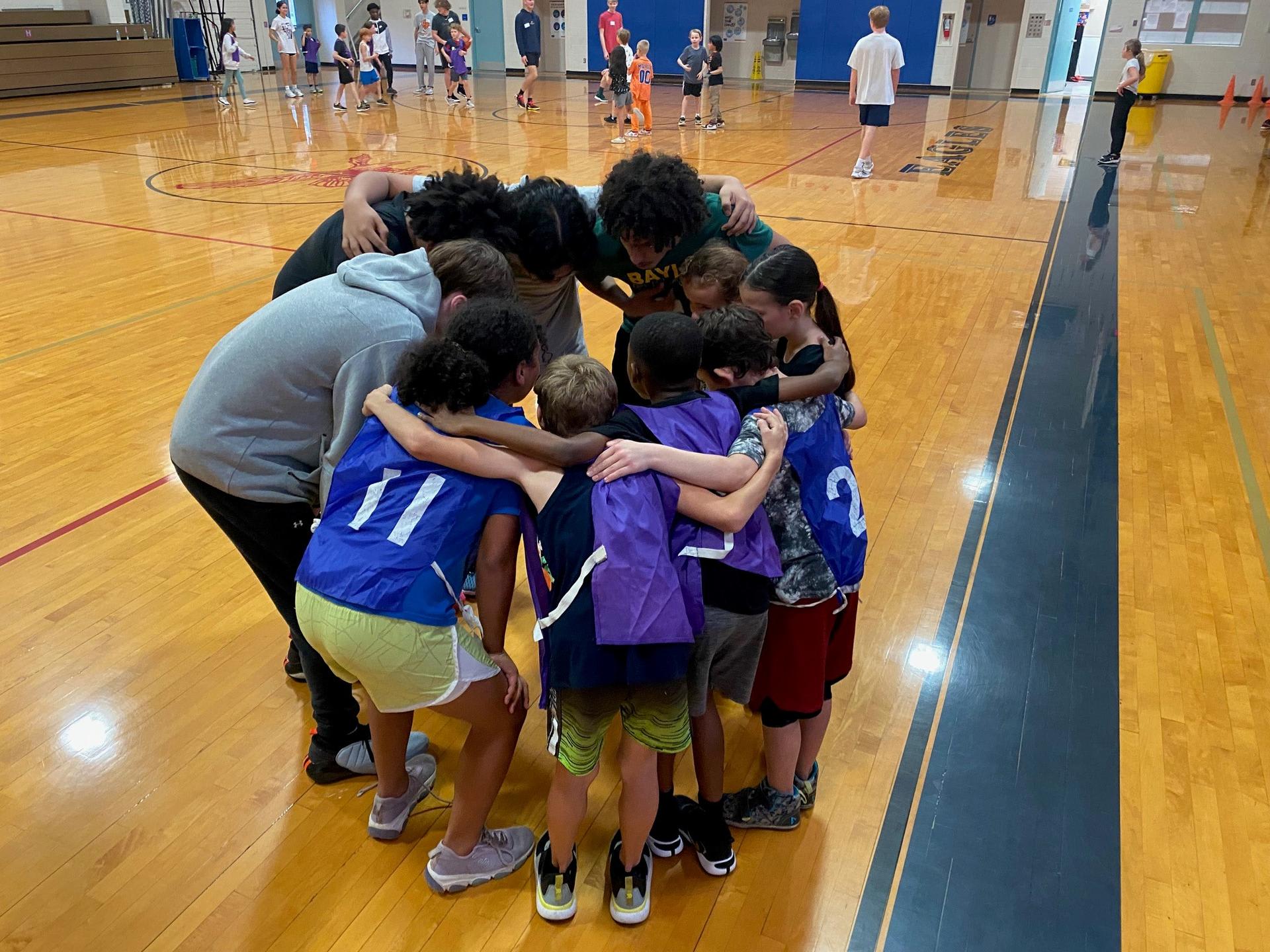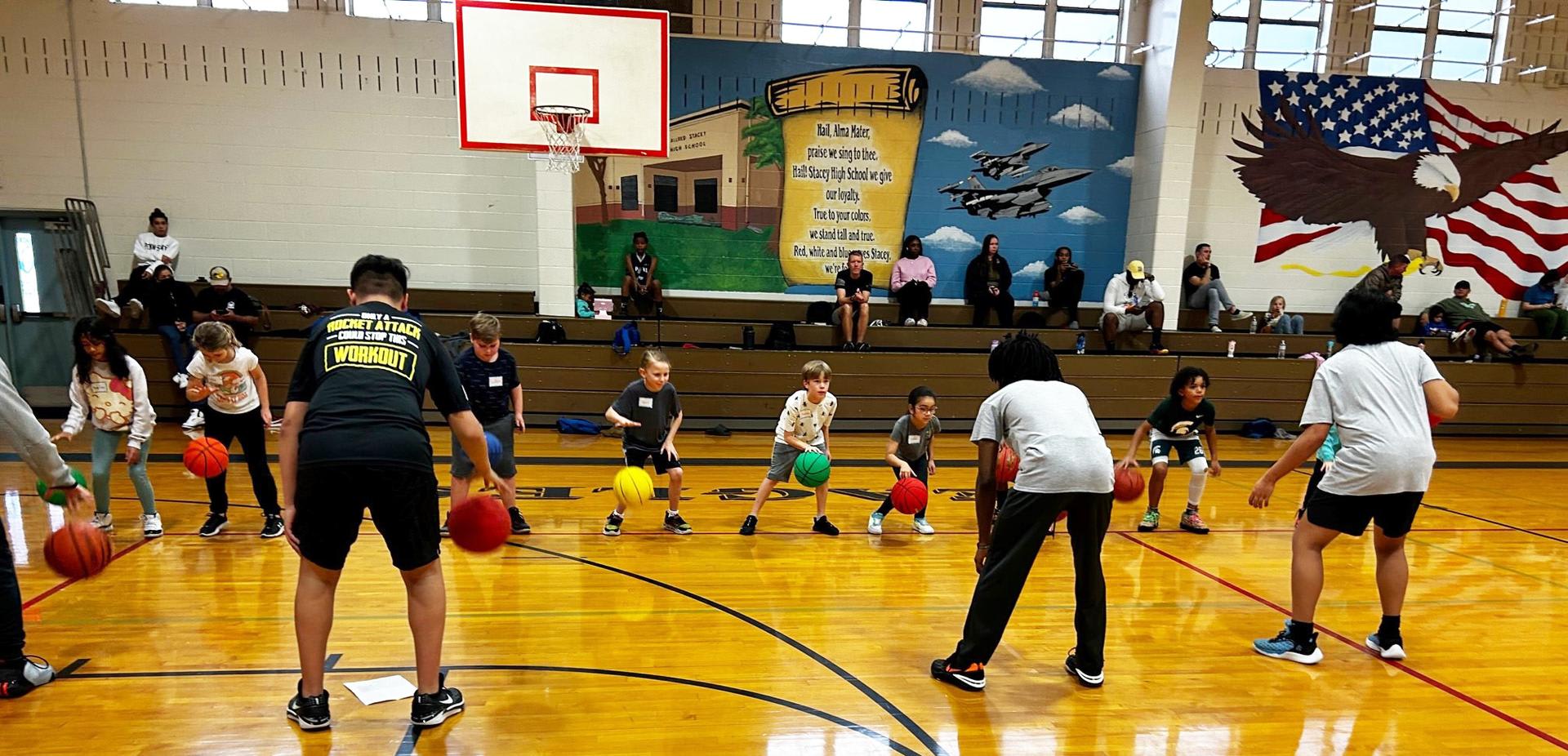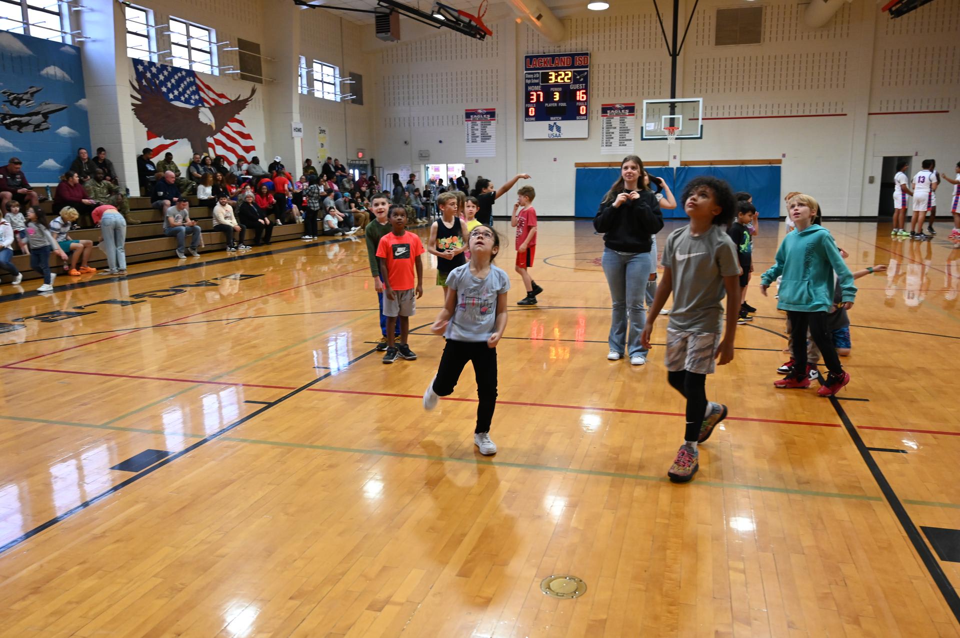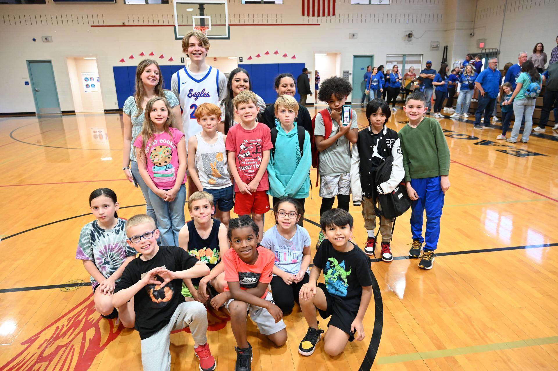 On Saturday, February 10th, Mrs.Duron’s Family and Community Service class hosted a basketball camp for the third graders. The varsity boys basketball team helped them with their dribbling, passing, and teamwork skills. This camp was a good opportunity for the team to teach basket ball basics and be a positive role model to the little ones. Following the camp, the campers were invited to attend the basketball game and were able to participate in a halftime shoot around. It was great to have extra fans in the crowd to cheer on their district champions at their last home game.
