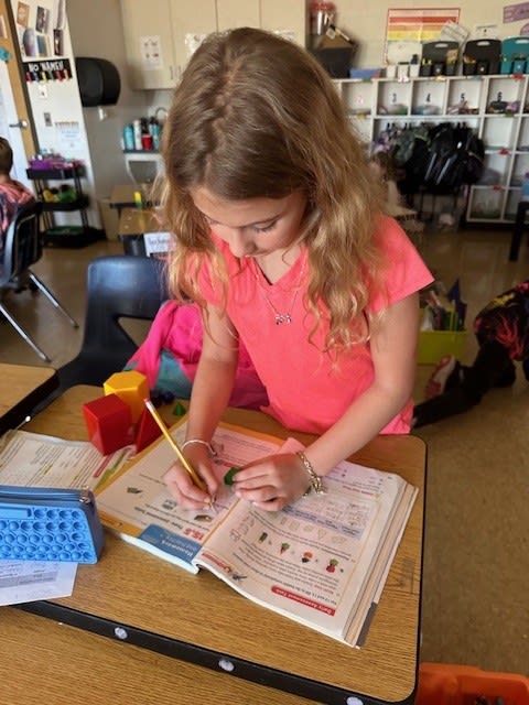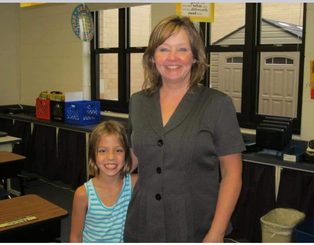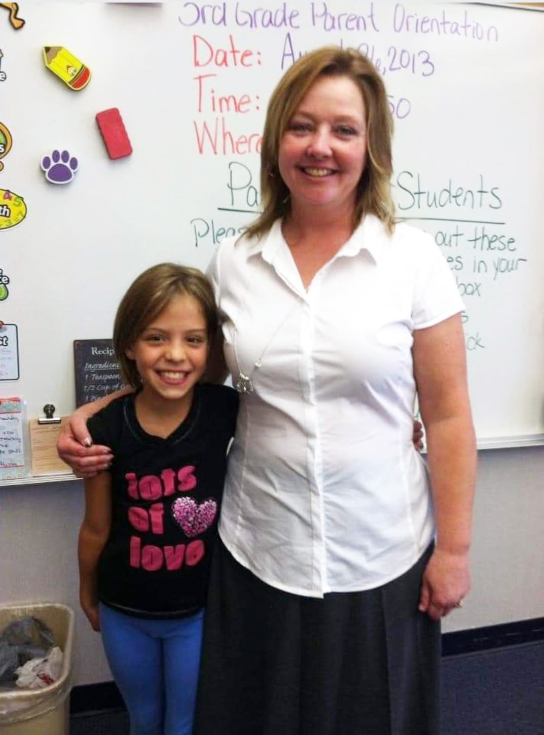 Lackland Elementary teacher Mrs. Moulder taught Alyssa Gruenes in second and third grade. You can see the shed in the background, that is second grade and the picture with the white board in the background is 3rd grade.
