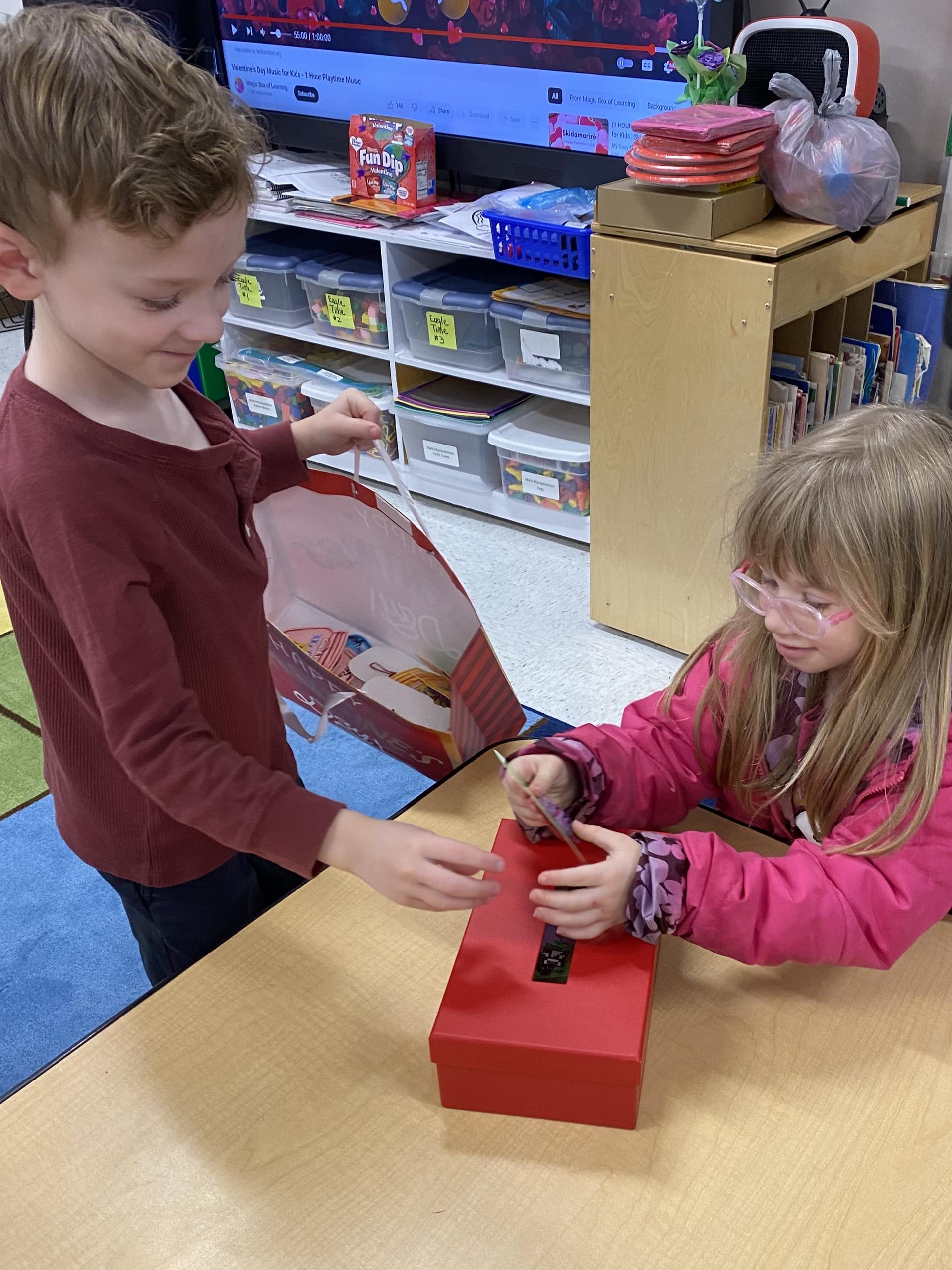 Kindergarteners went all in for their Valentines Day parties by bringing in their own special mailboxes and delivering Valentines to friends and teachers. Goodies and games rounded out an afternoon loved by all! |
