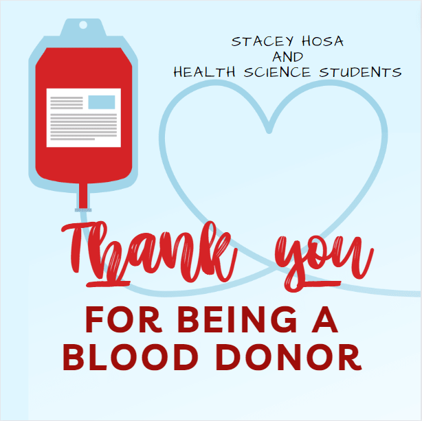 How does Stacey celebrate Valentine’s Day? If you are part of HOSA-Future Health Professionals, it’s by sponsoring a blood drive on campus! HOSA students, along with club sponsor Mrs. Domini Joseph, planned, recruited and processed donor volunteers, and also provided post-donor snacks. Out of 65 volunteers, 57 units of blood were donated. It will be given to the Lackland Blood Donors group to provide life-saving treatments to our military community. Thanks to all blood donor volunteers!