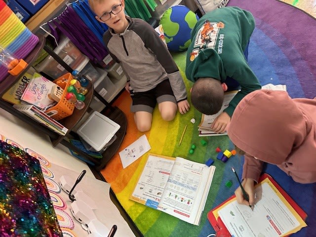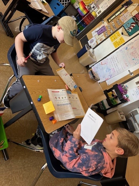 Mrs. Gaskin’s class is using 3D shapes to solve math with three-dimensional solids. |