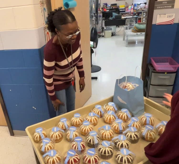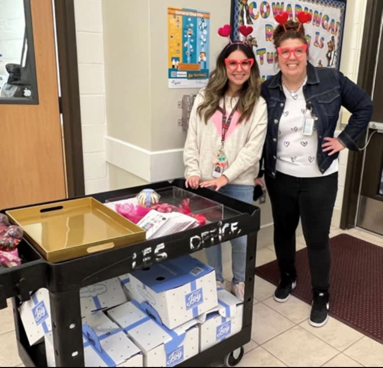 Administration and counselors spreading the love to teachers on Valentine's Day! |