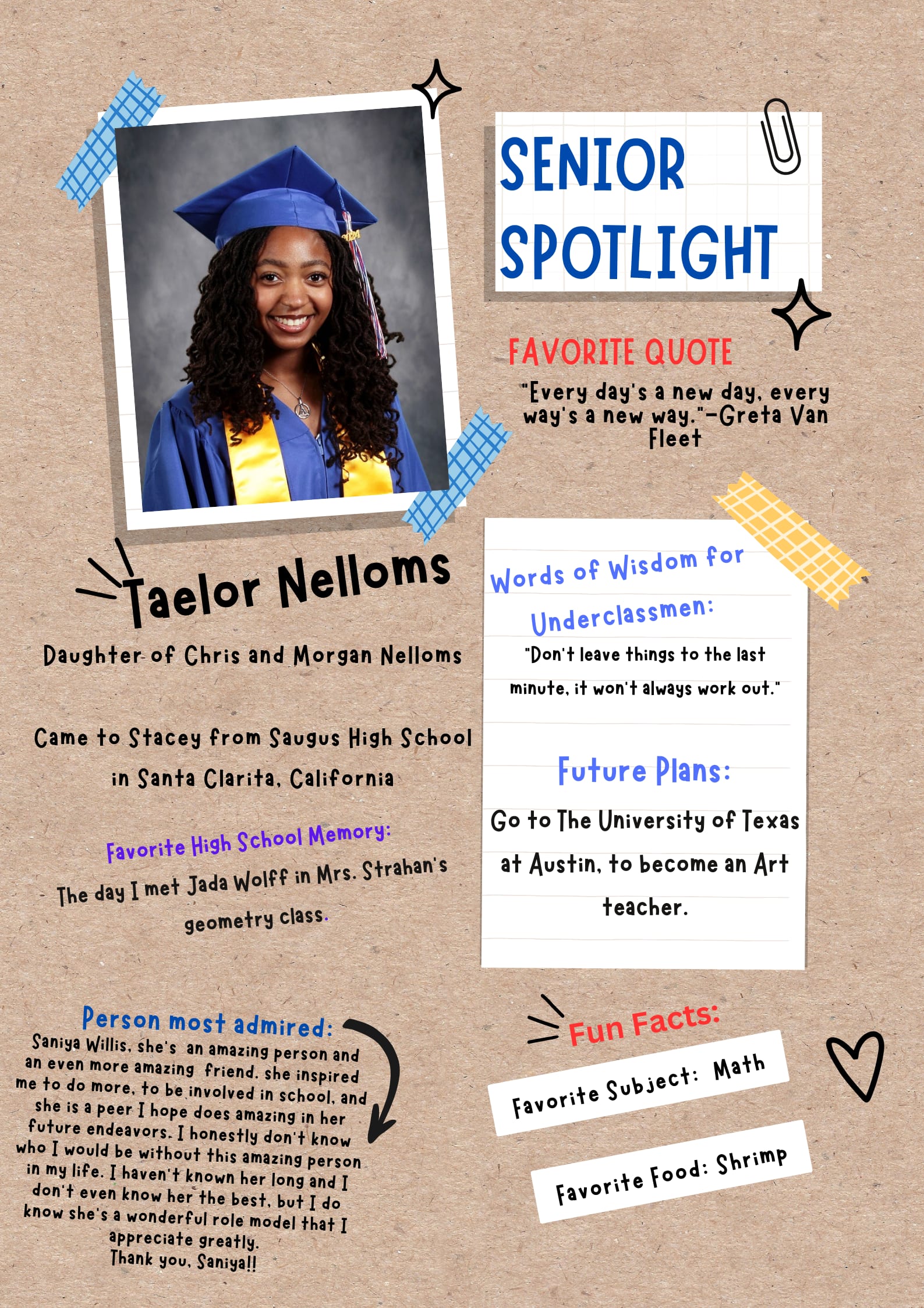 team. I found my love for theater at Stacey. What was your favorite class while at Stacey? My favorite class was anything with Ms. Rabidas