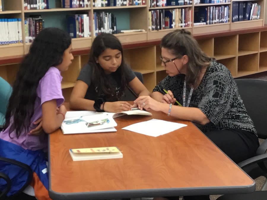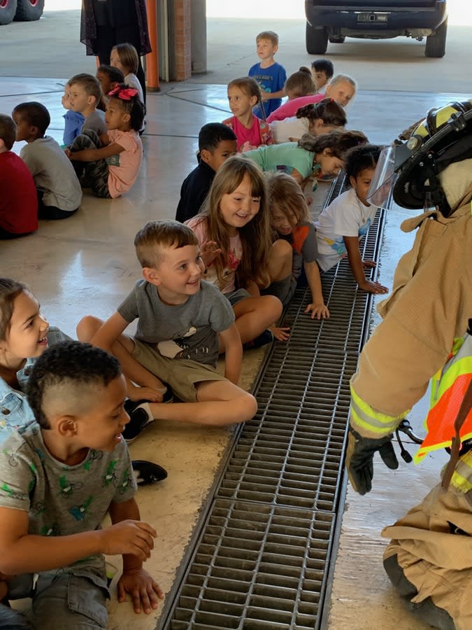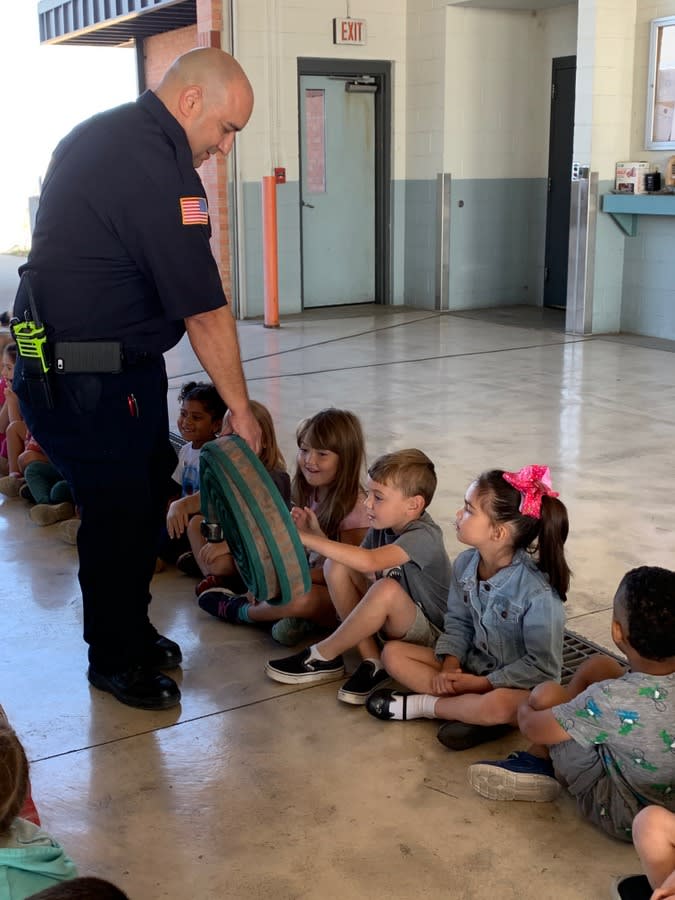 Stacey J.H. Book Club students built Book Spine Creatures for the Library. Ricky Beyea created a pumpkin, Leah Mendoza built a Witch, and Marek Reynolds created a ghost. The Oral Reading Team for the J.H. UIL Academics program visited the Stacey Library to look for pieces for their competition. Mrs. Brock helps Sofia Molina read through a poem while Sophia Mendez-Gonzalez looks on. Elementary Happenings Kindergarten visits the Lackland Fire Department!!