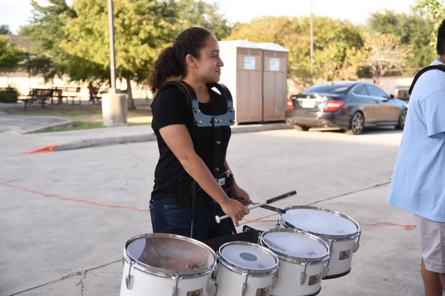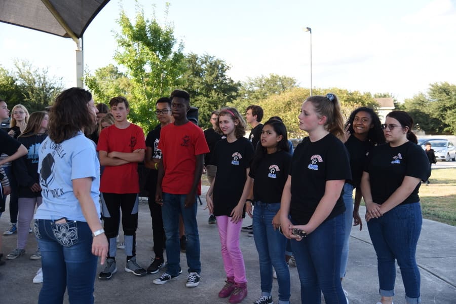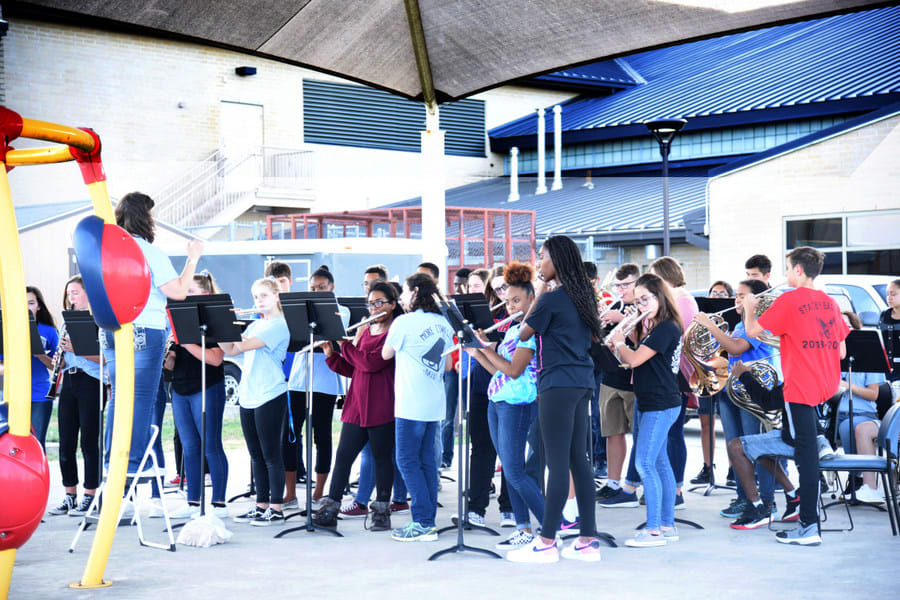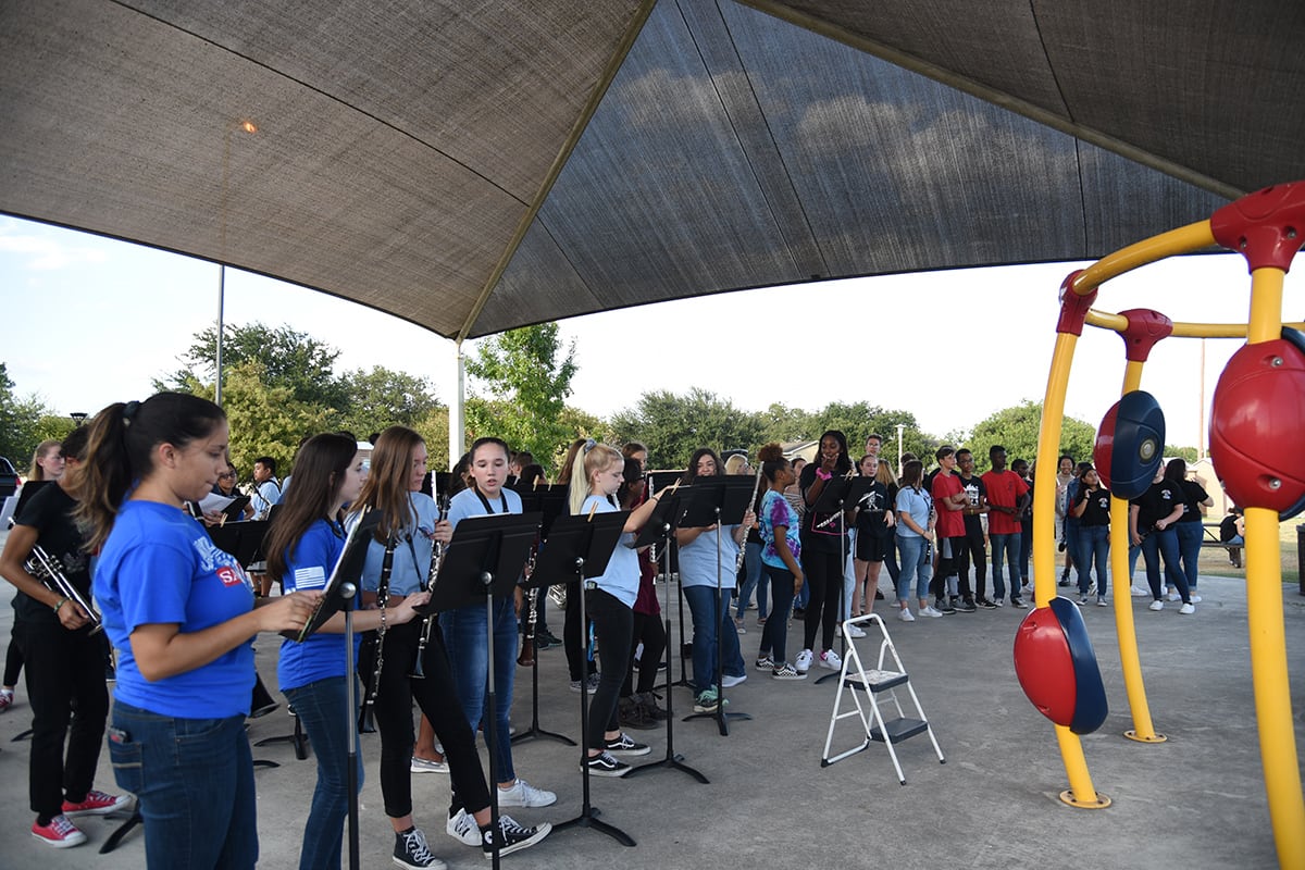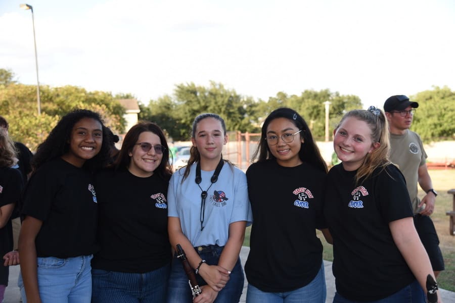 On Tuesday October 1st, Lackland Air Force base hosted National Night Out at the Youth Center. This is an annual community event that brings the neighborhood together with opportunities to meet neighbors, get free things from a variety of booths as well as celebrate our nation. There were also police and firefighter representatives in attendance. To kick off this outdoor event, the Stacey High School band and choir performed the National Anthem, their Alma Mater and a number of pep songs.