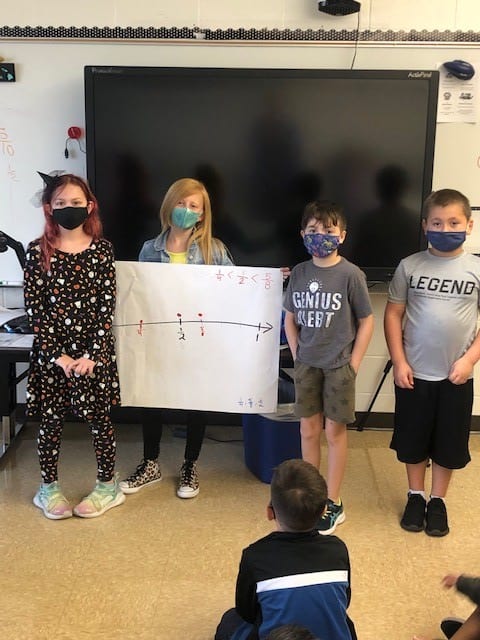 Benchmark fraction line presentations with Mrs. Bragg's class.