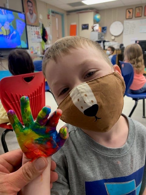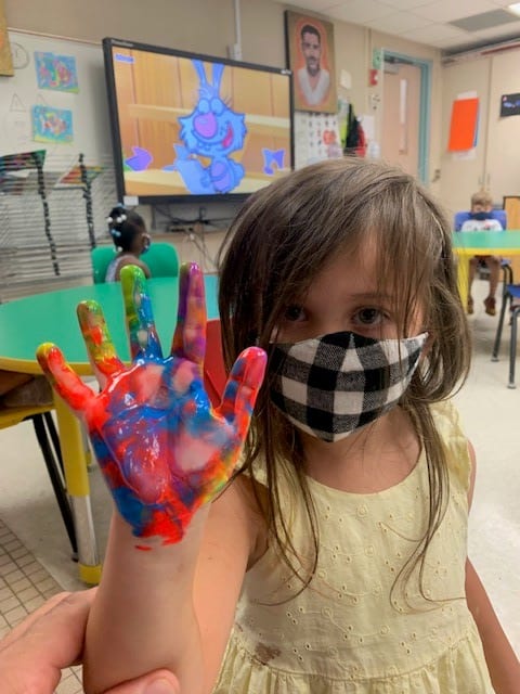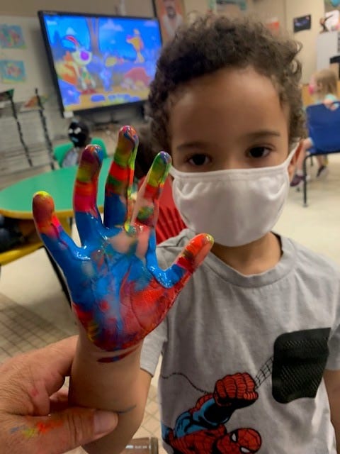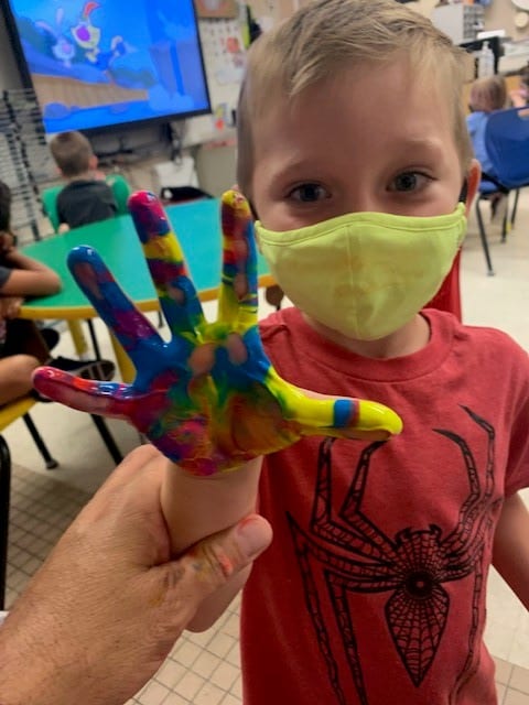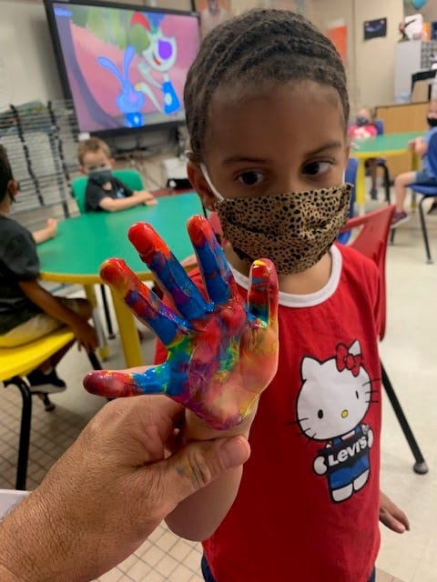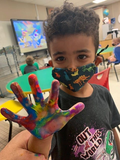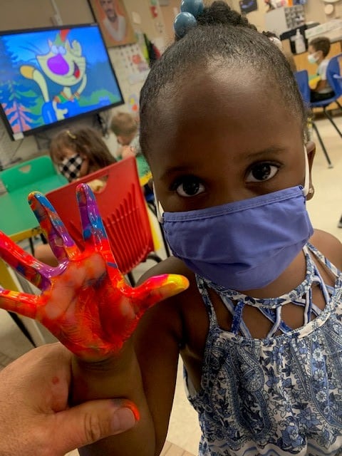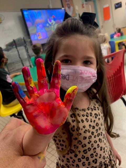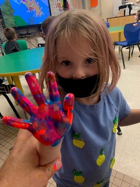 Pre/K painty hands in elementary art!