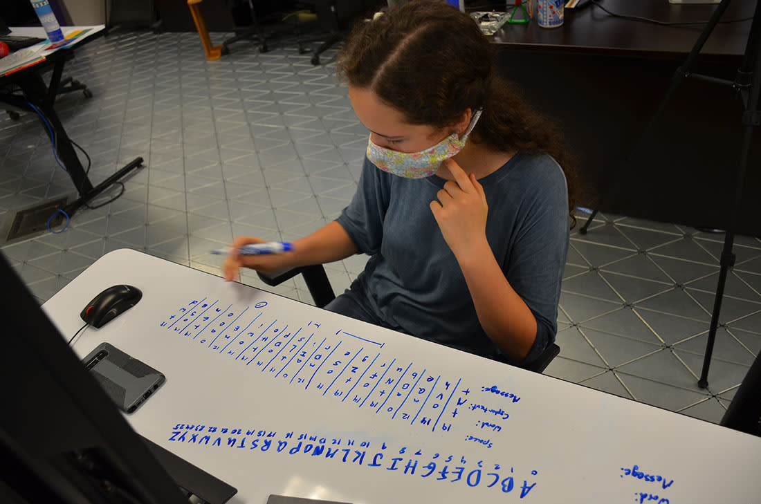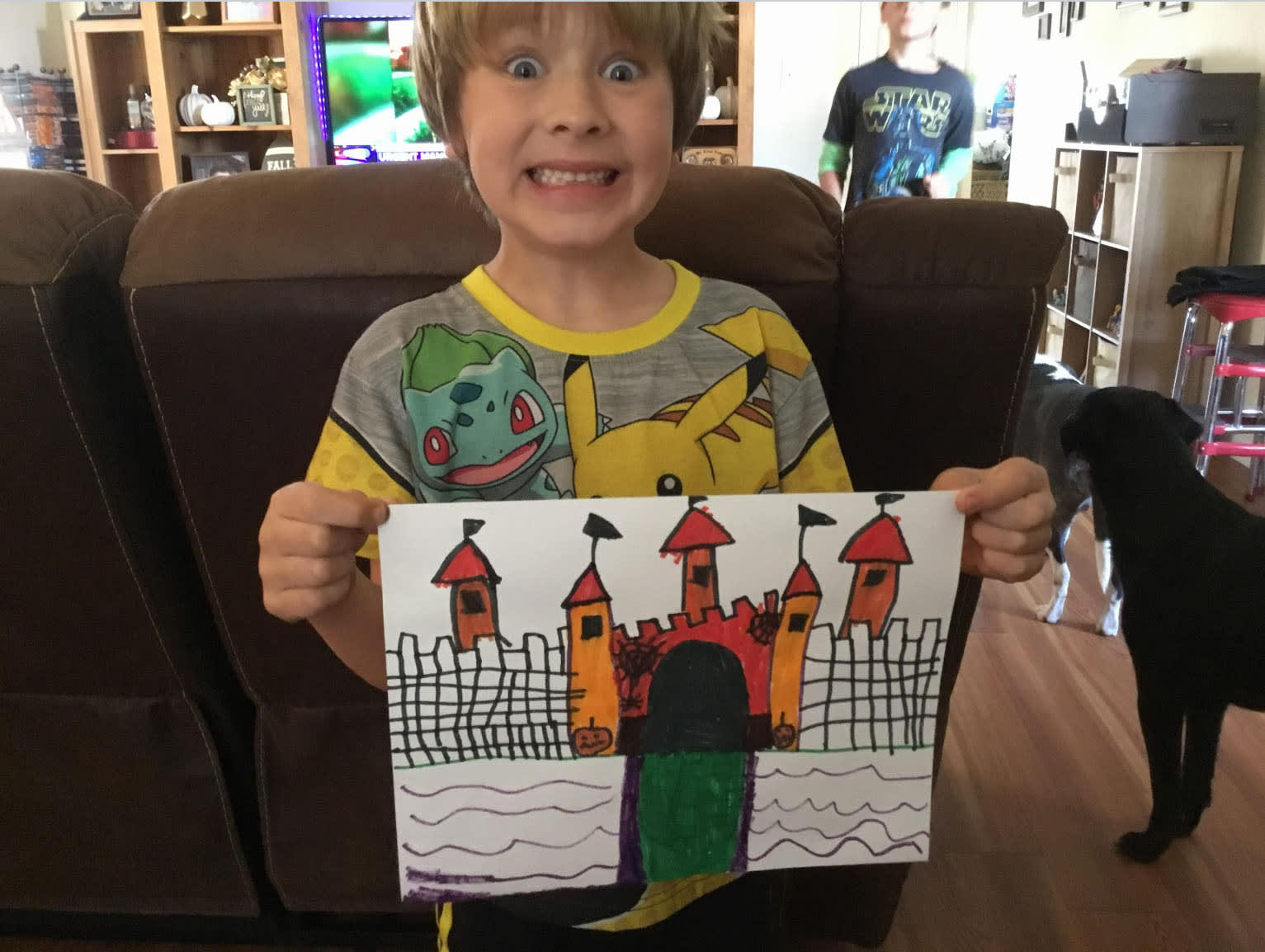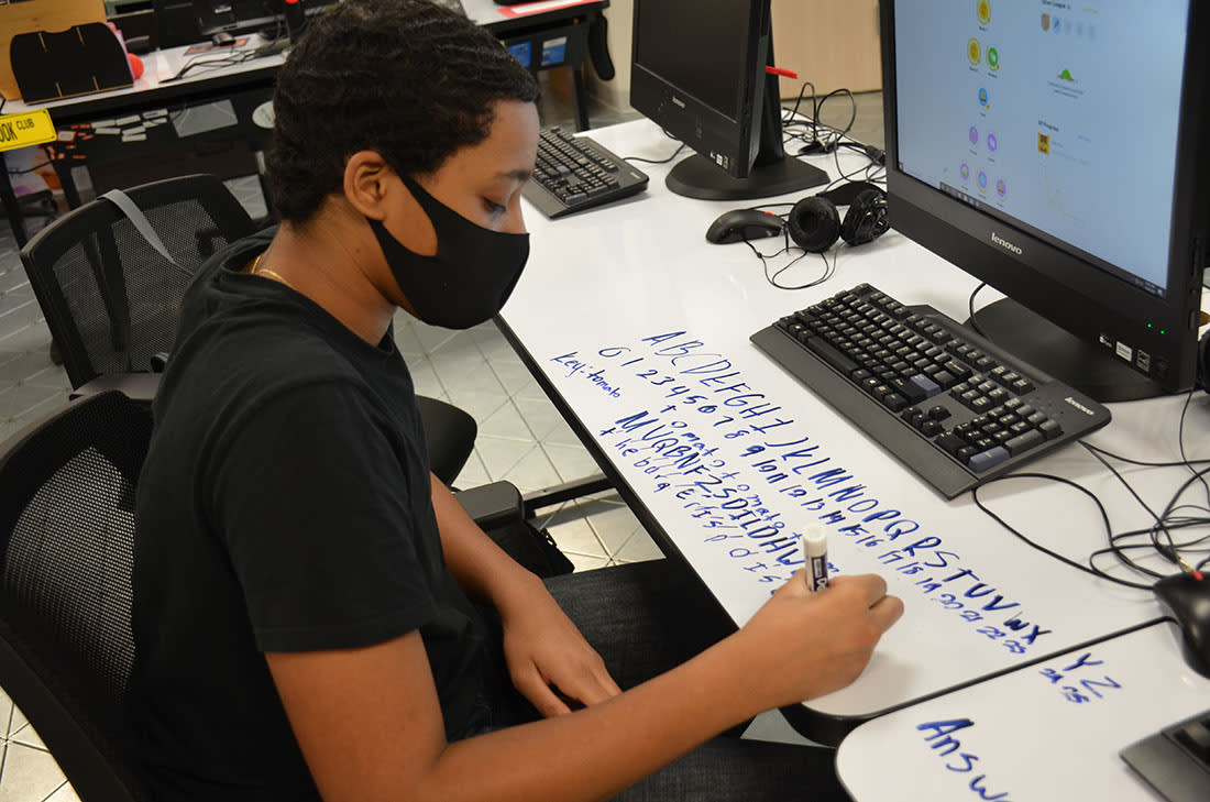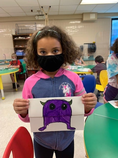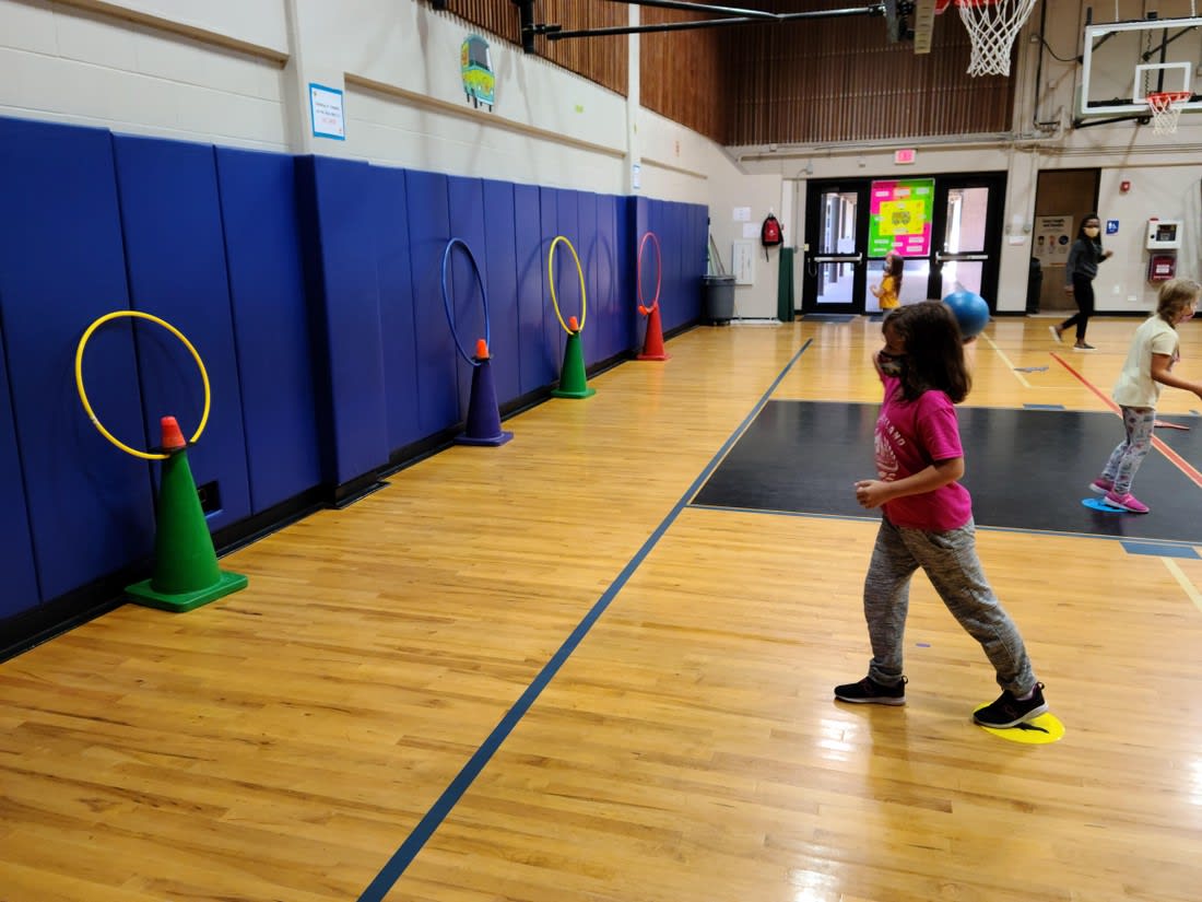 Load the app on your phone: ‘Yearbook Snap’ Elementary Happenings 4th graders practice wearing masks and social distancing during SFA reading.