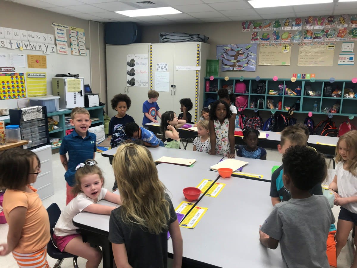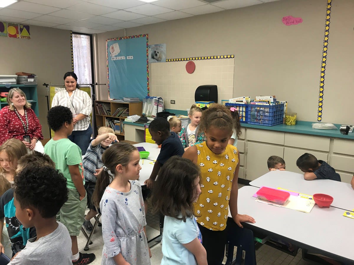 S2S planned this event and invited students from every grade. They participated in games, icebreakers, and a tour. When we spoke to one of the new students, she told us, “They gave me the best inside tour and helped me find where all my classes are!” Students got to know their S2S peers playing Two Truths and a Lie then enjoyed a nice slice of pizza. The tours were informative and the new students got an insiders opinion on the ins and outs of Stacey Jr/Sr High School. Elementary Happenings First graders in Mrs. Guerrero’s class are off to a great start learning many new things & getting to know each other. Students using their senses during a nature walk & science lab. One of our weekly “Star Student” presenting her poster she created. Me bag presentations to learn about our new friends. Mrs. Guerrero’s & Mrs. Allen’s students making new friends after learning about the peace path during a Getting Along lesson.