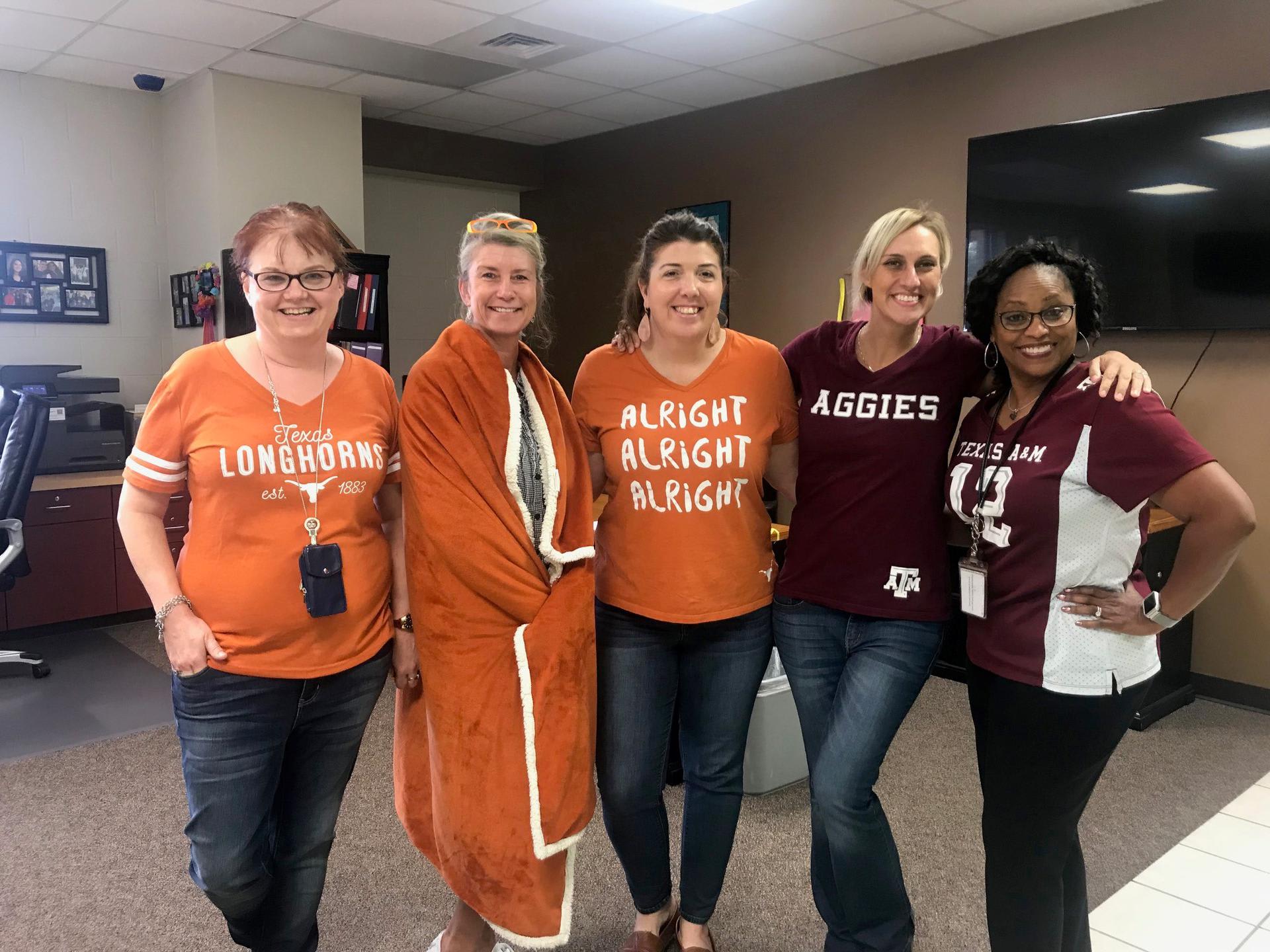 The teachers and staff celebrate College day each Thursday. Students and staff can celebrate their favorite college teams.