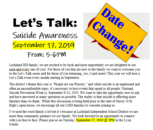 LISD E-Newsletter September 6, 2019 Table of Contents: