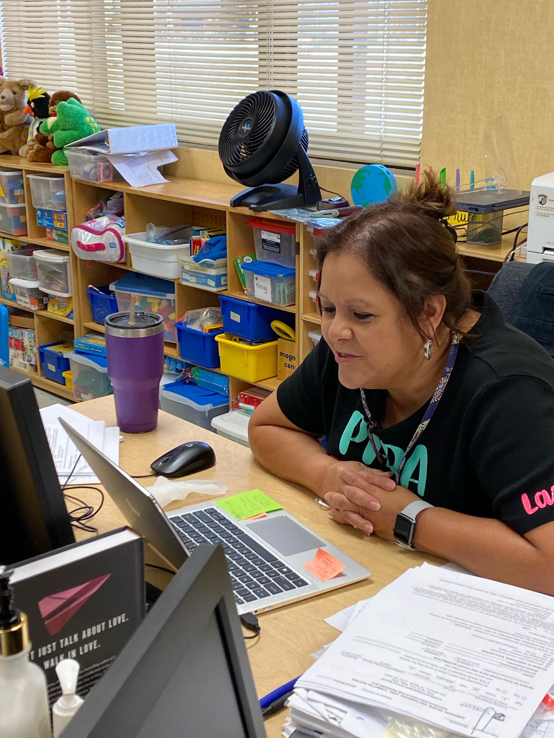 Kinder virtual learning at its best! Paraprofessional Mrs. Lazo working with a student virtually and the look of pure joy on her face shows!