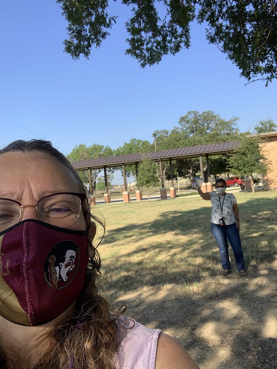 Elementary Happenings Mrs. Roy and Mrs. Silvin out collecting rocks for a virtual lesson.