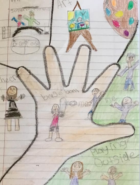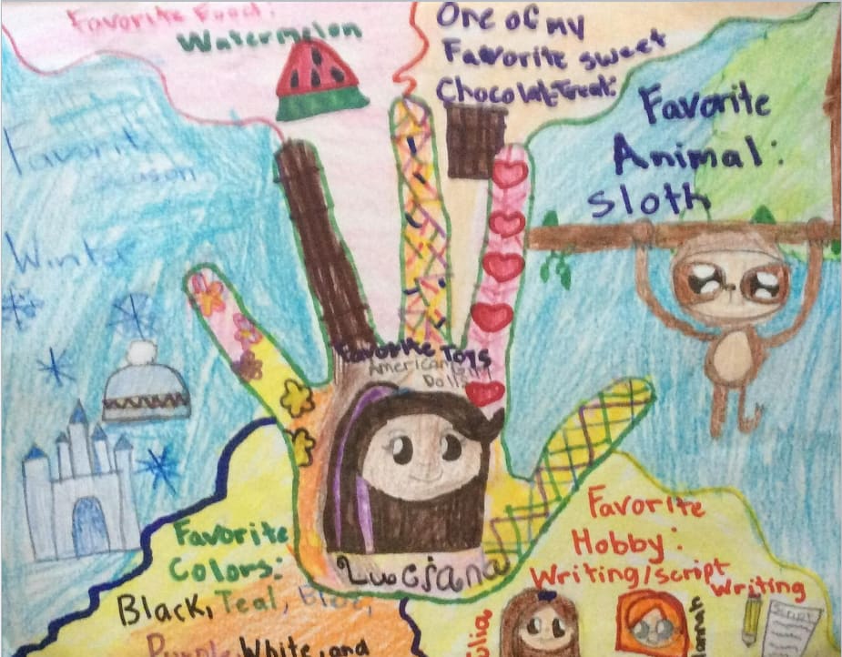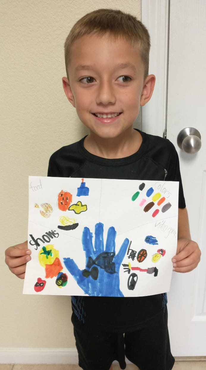 1st - 5th grade "All about Me" hand projects in elementary Art! Great Job! Pre/K and Kinder drew shapes to make art! PTSO Spot light Good Information