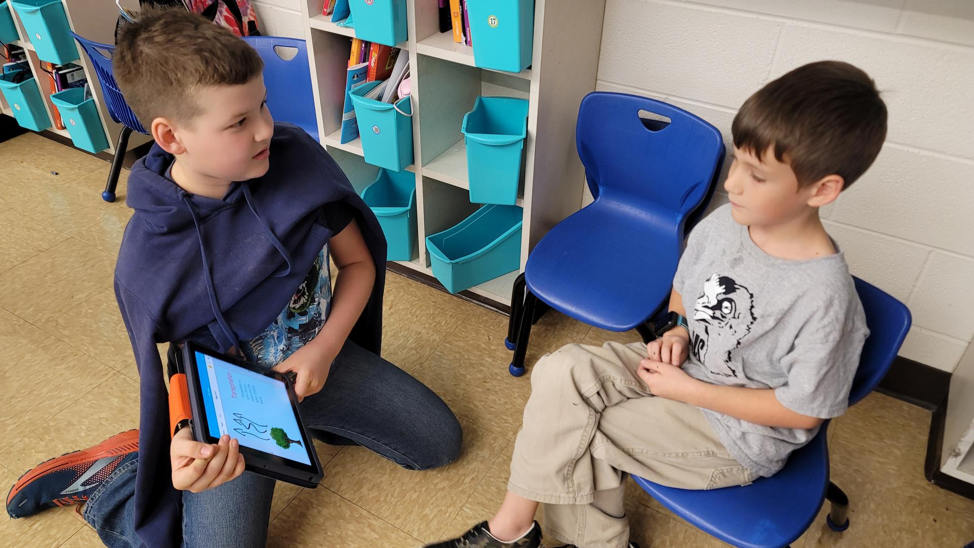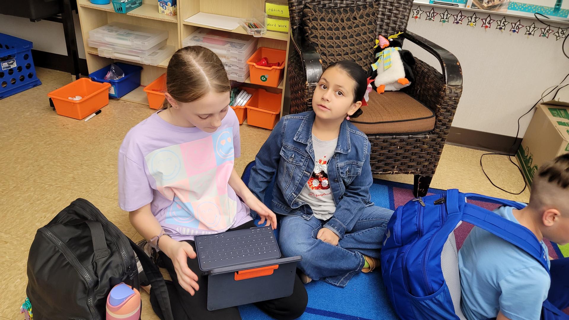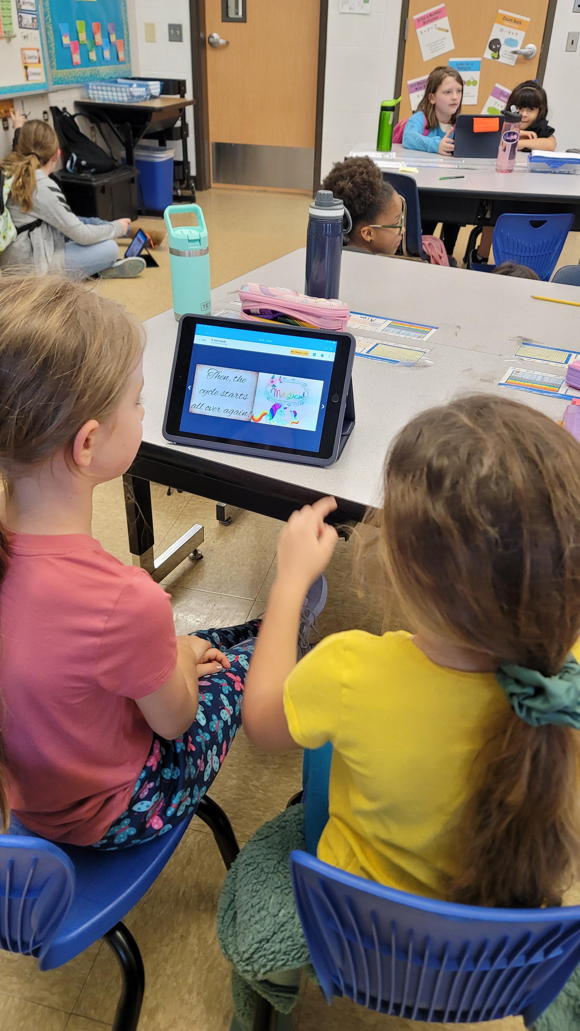 Mrs. Flores' class reading their Water Cycle Books that they created on Book Creator to Mrs. Hernandez 2nd graders. |