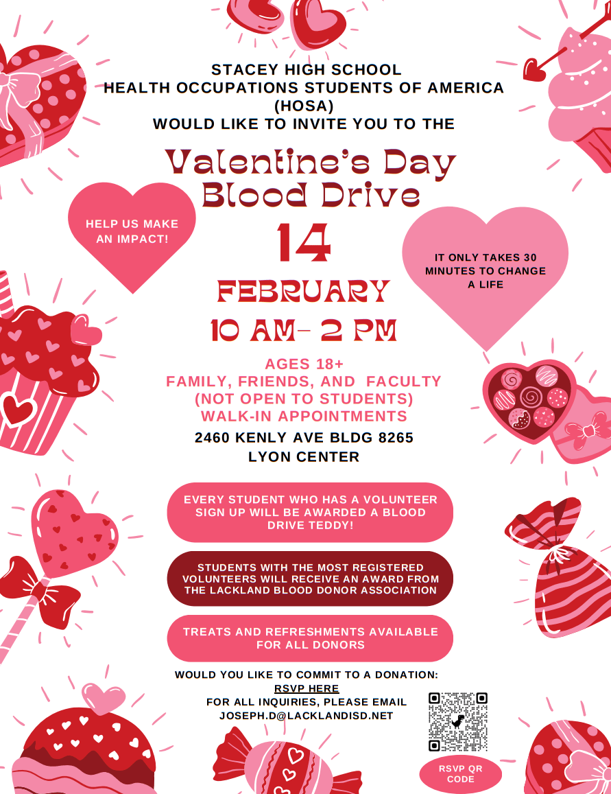 *Tuesday Feb. 13 JV & Varsity boys basketball vs. Falls City at Stacey 5:00 & 6:30pm *Wednesday Feb. 14 Valentine's Day Blood Drive 10:00 - 2:00pm Friday Feb. 16 JH Valentine's Day Dance |