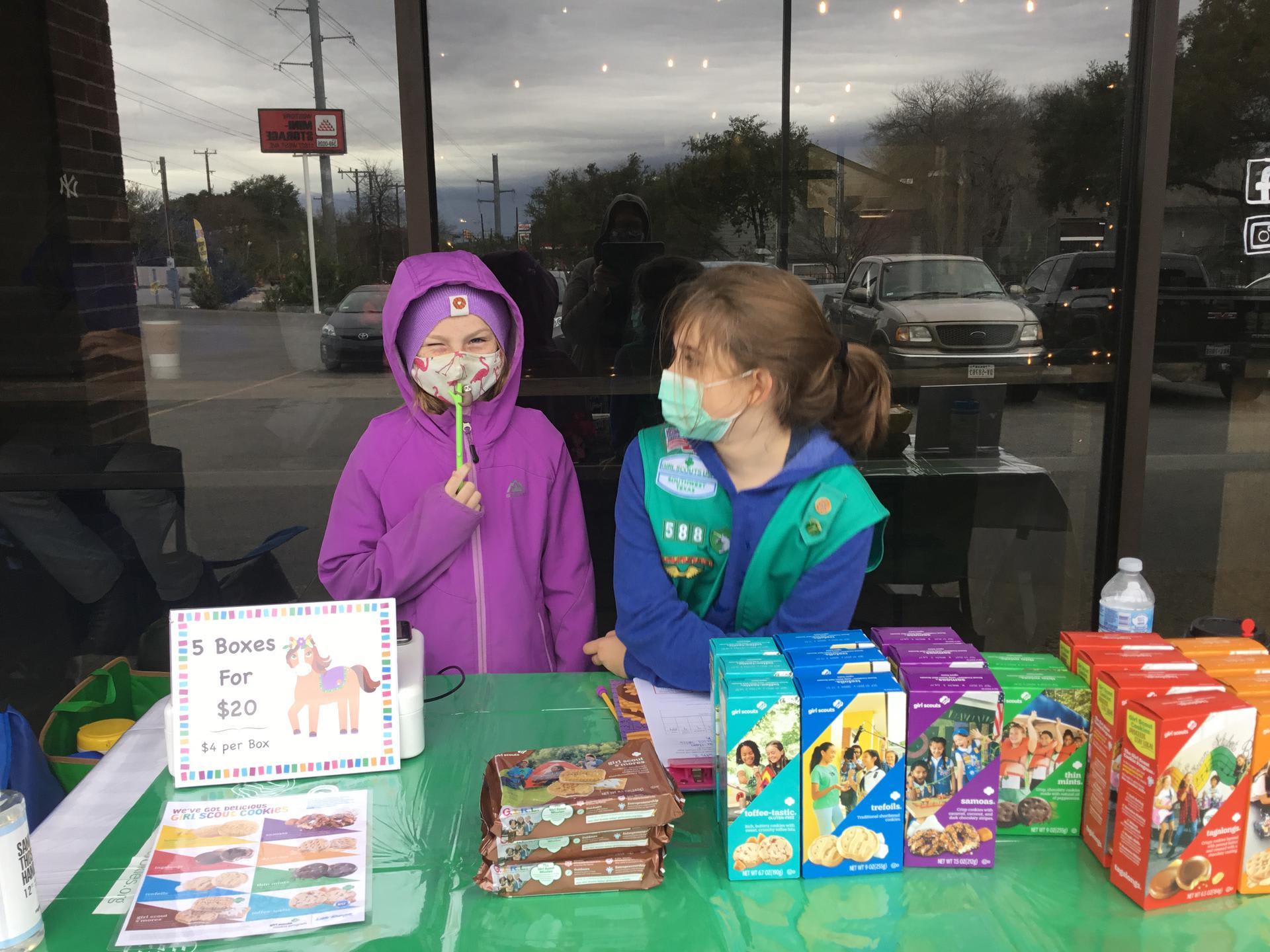 4th grader Katherine Maschek selling her Girl Scout cookies in the cold!