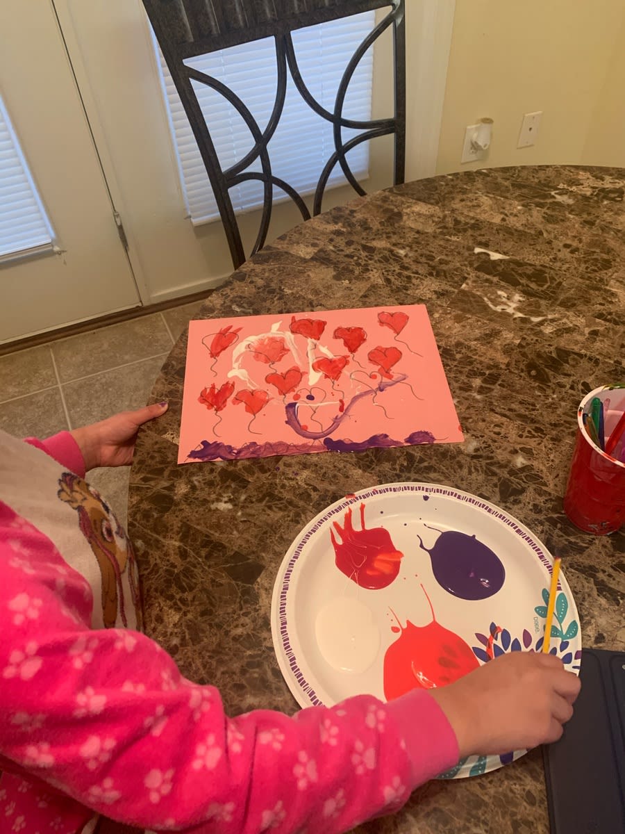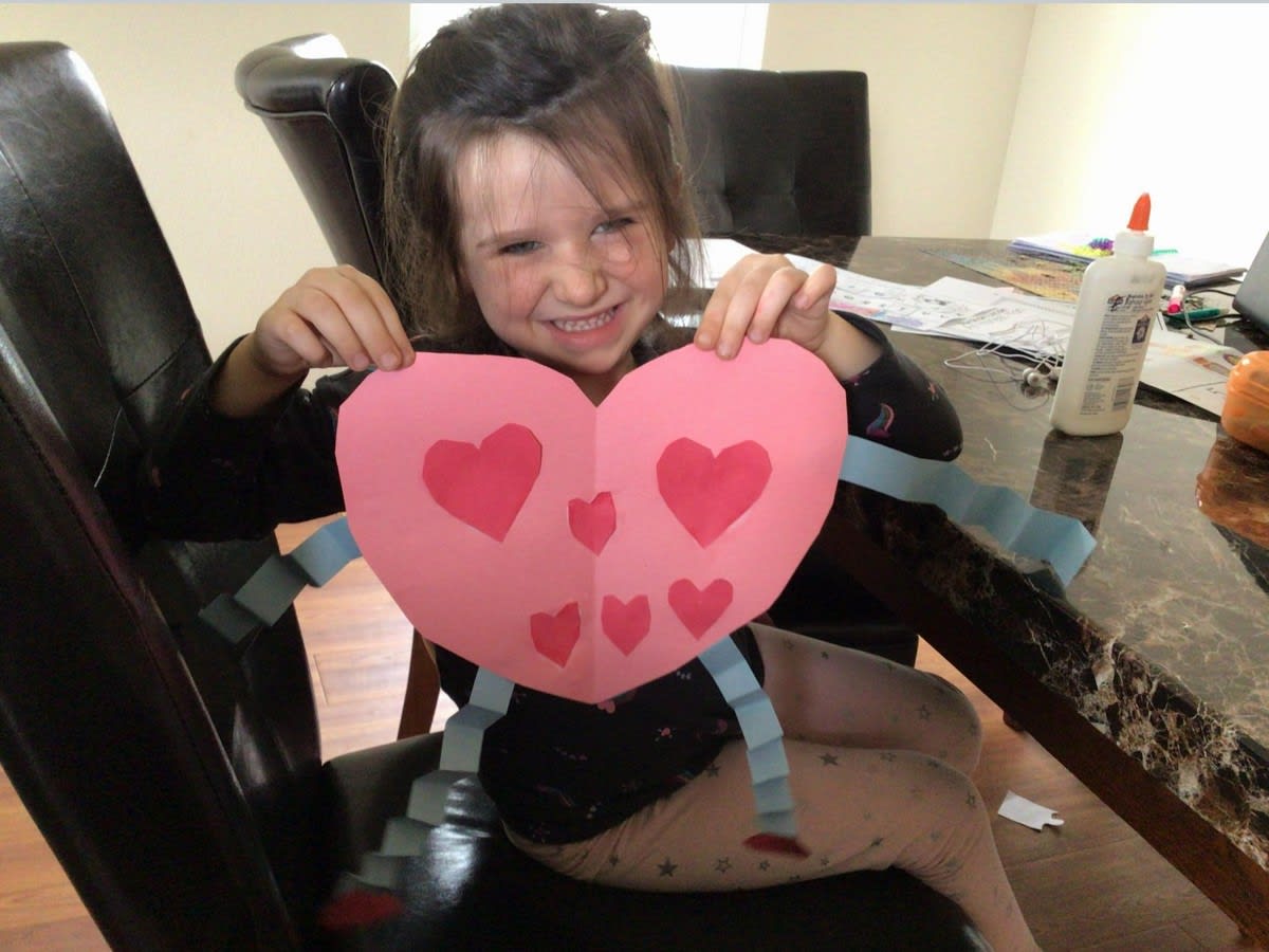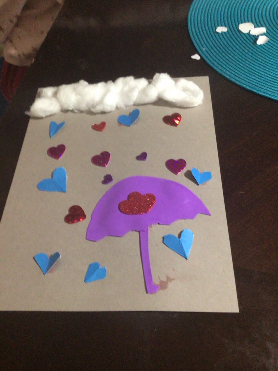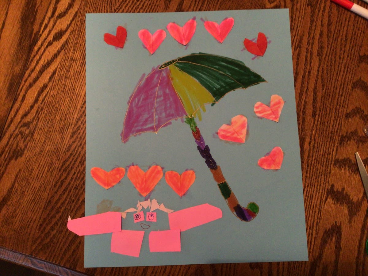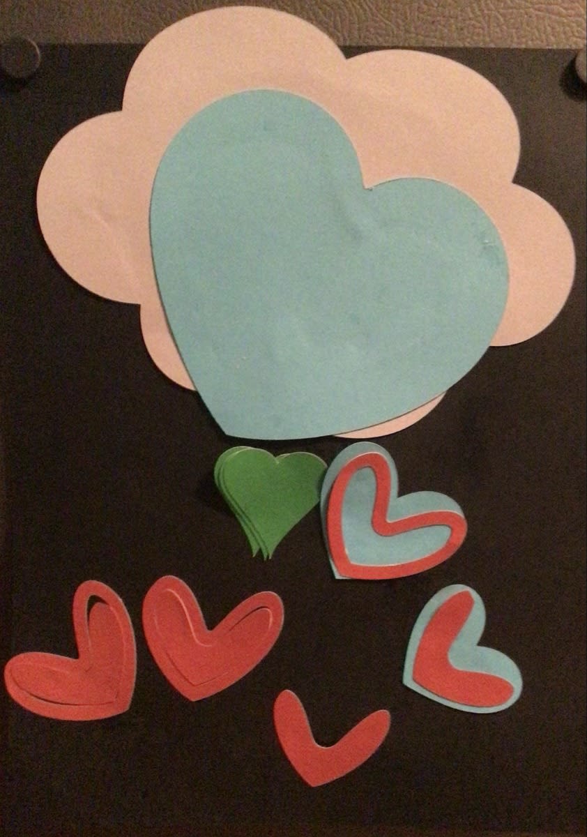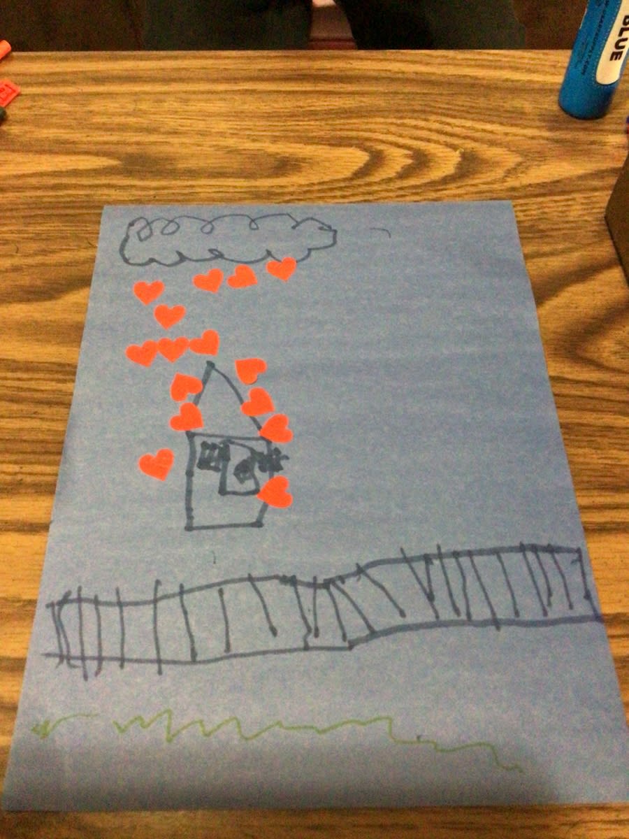 Ms. Heineman’s PreK class read The Day It Rained Hearts. The children made pictures with materials they had at home.