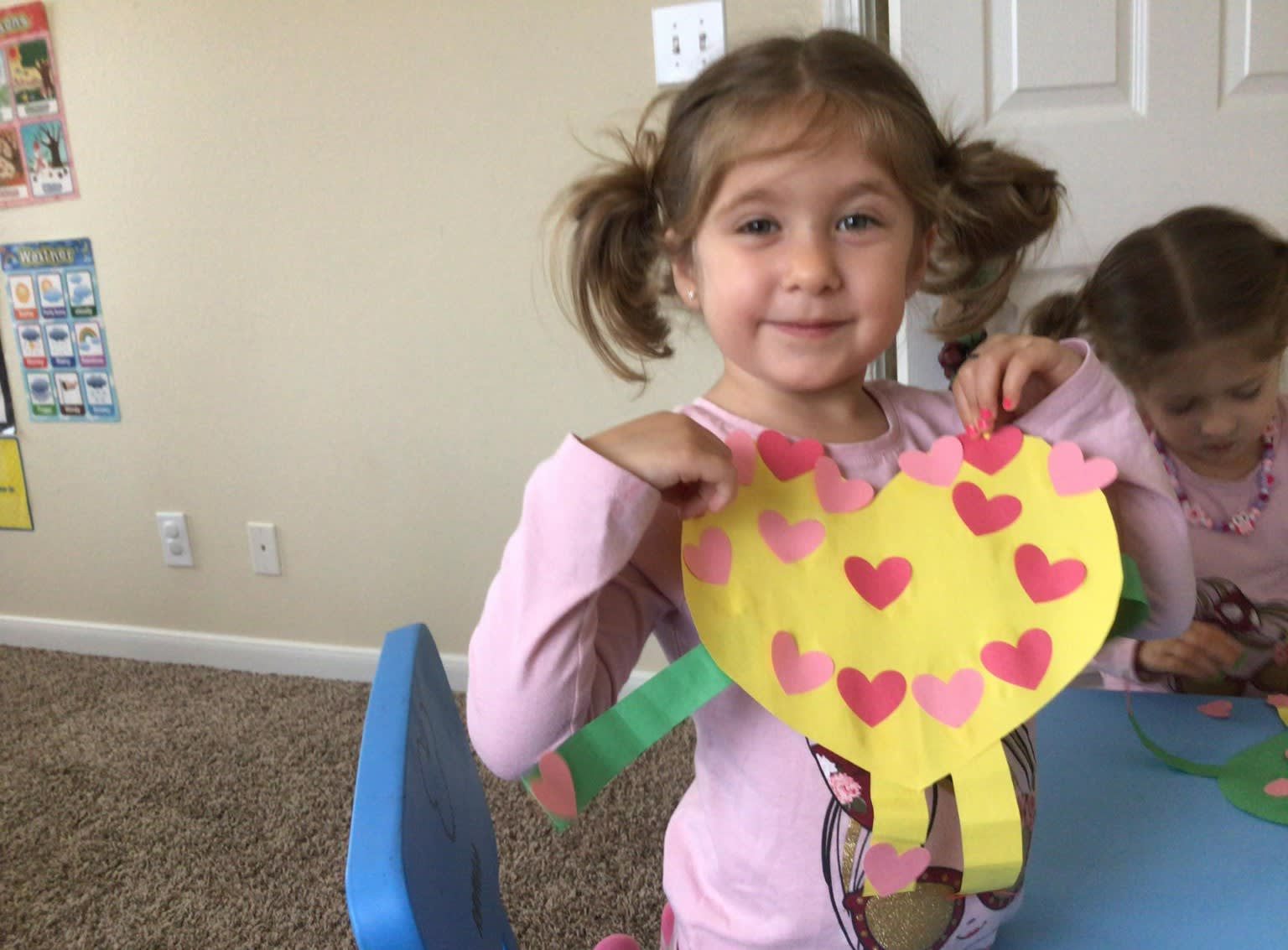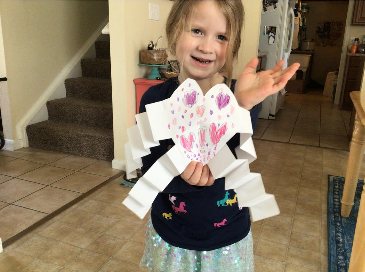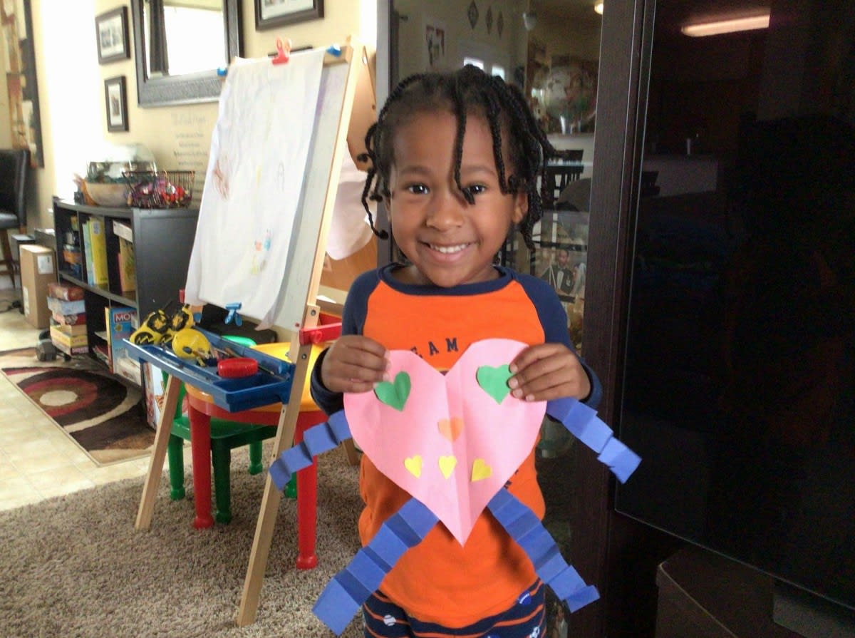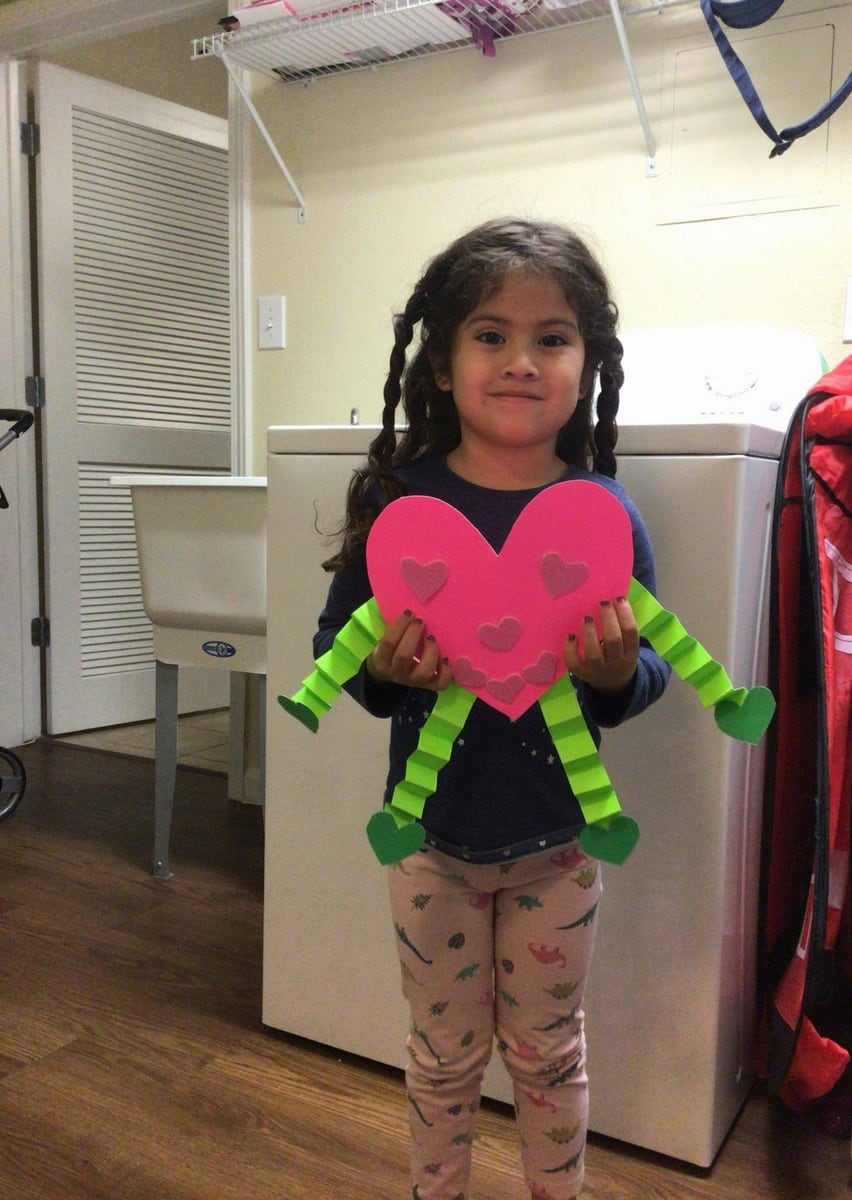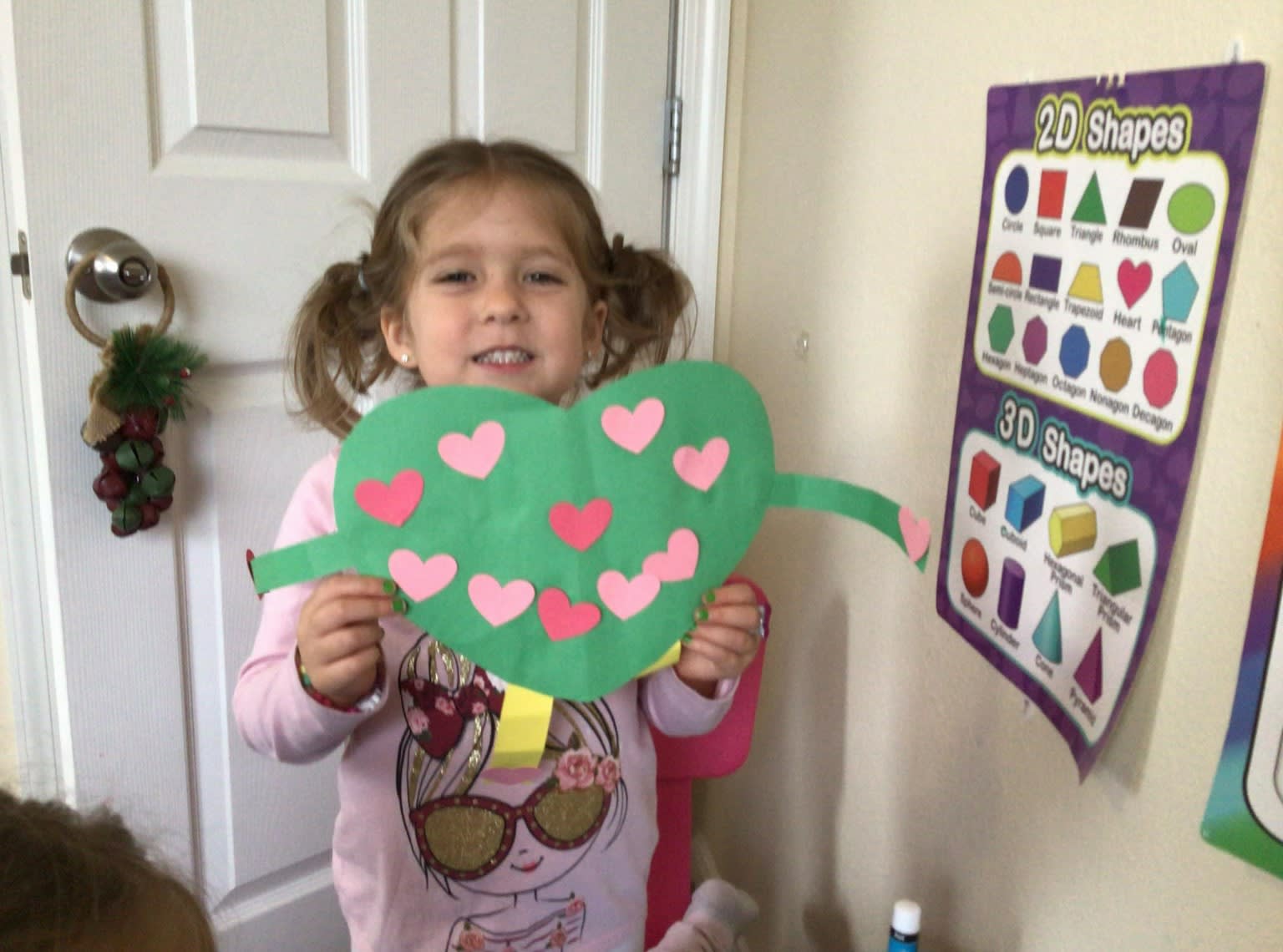 Ms. Heineman’s PreK class read The Day It Rained Hearts. The children made pictures with materials they had at home.