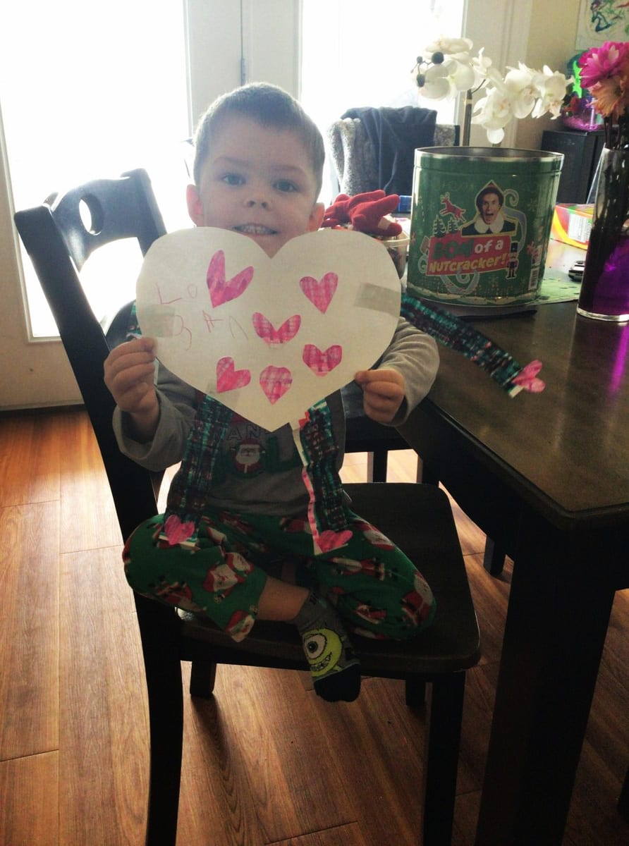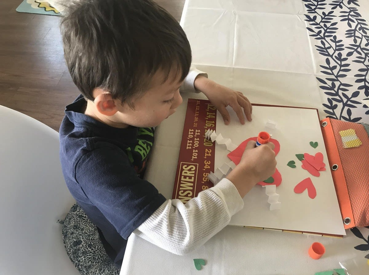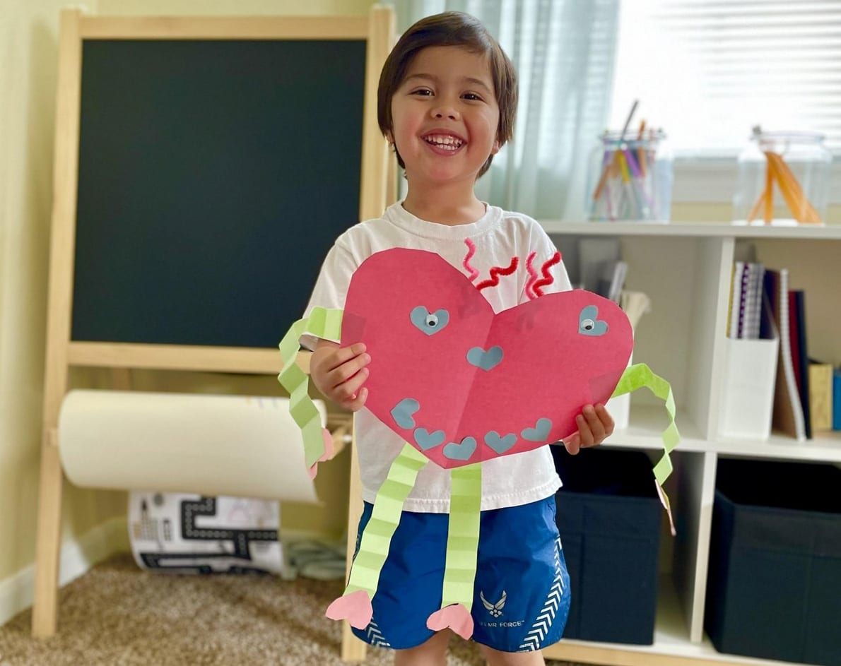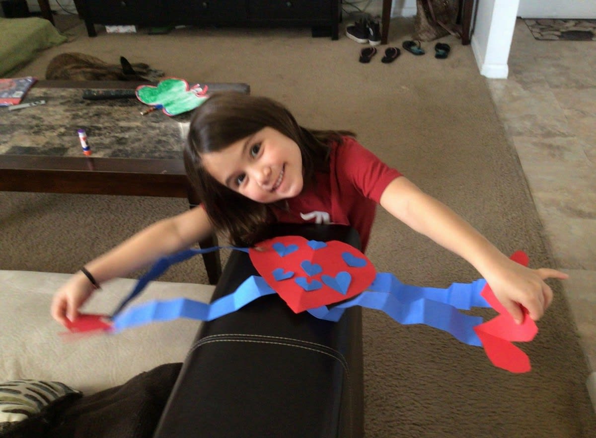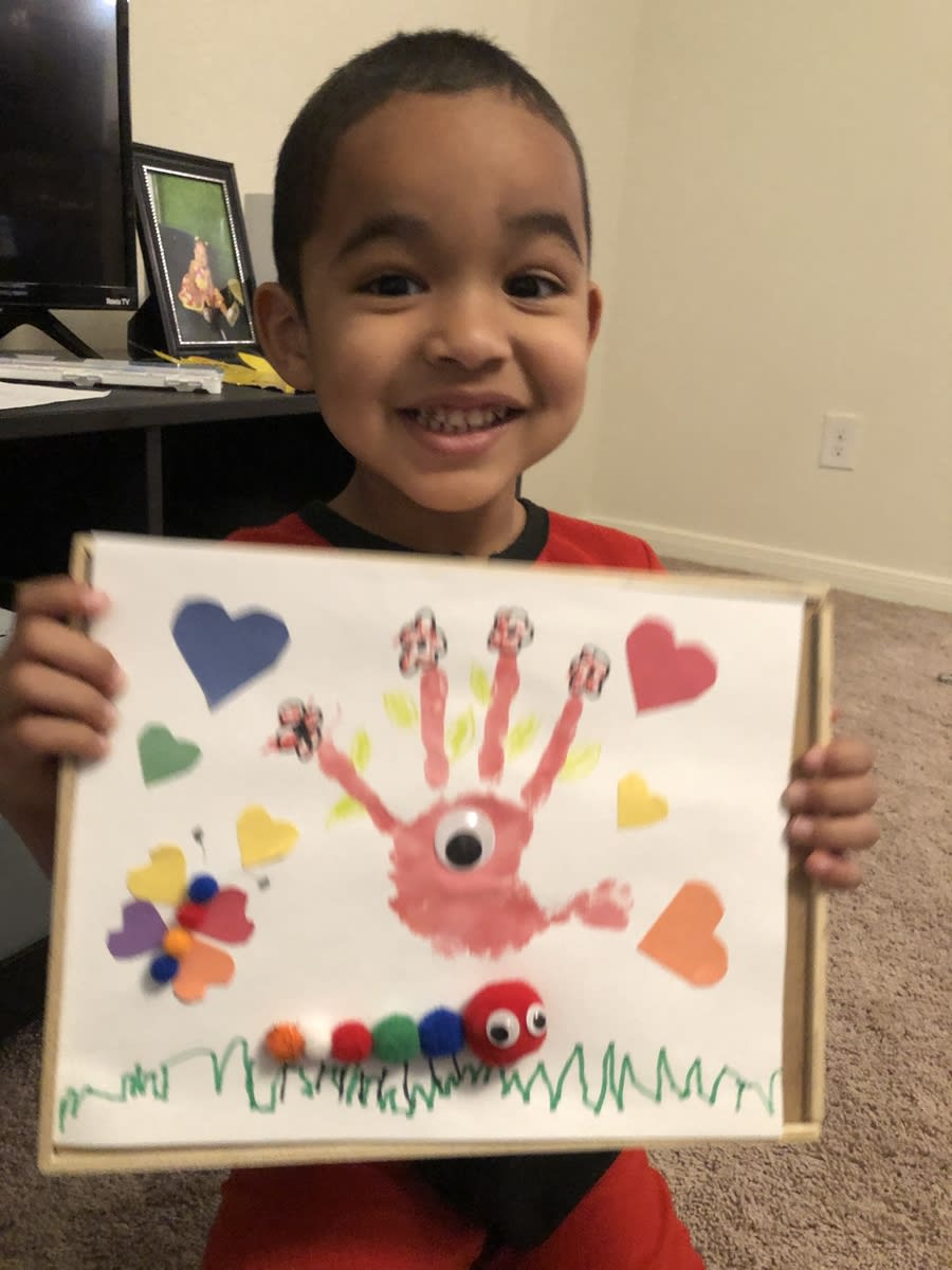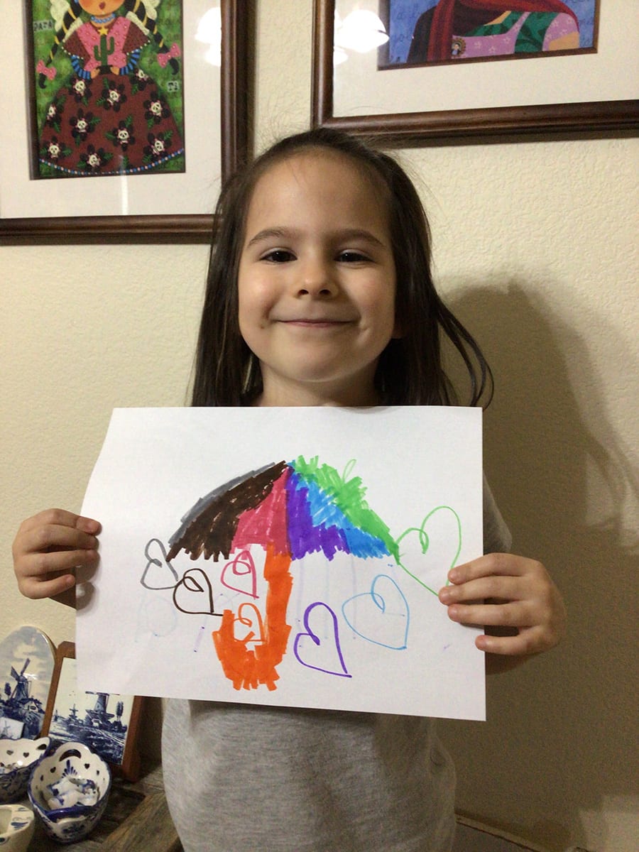 Ms. Heineman’s PreK class read The Day It Rained Hearts. The children made pictures with materials they had at home.