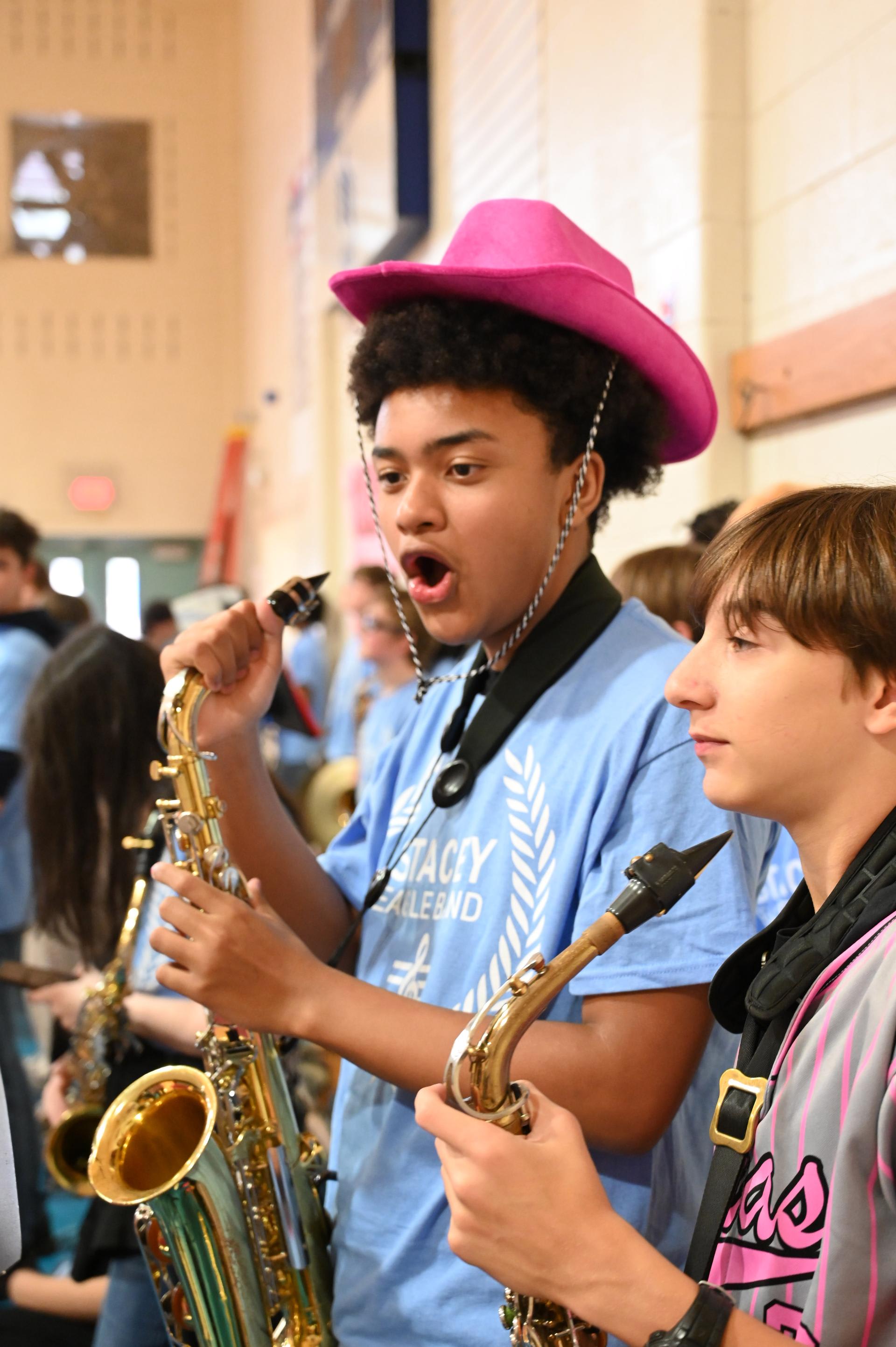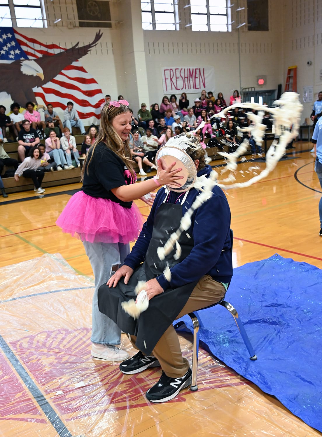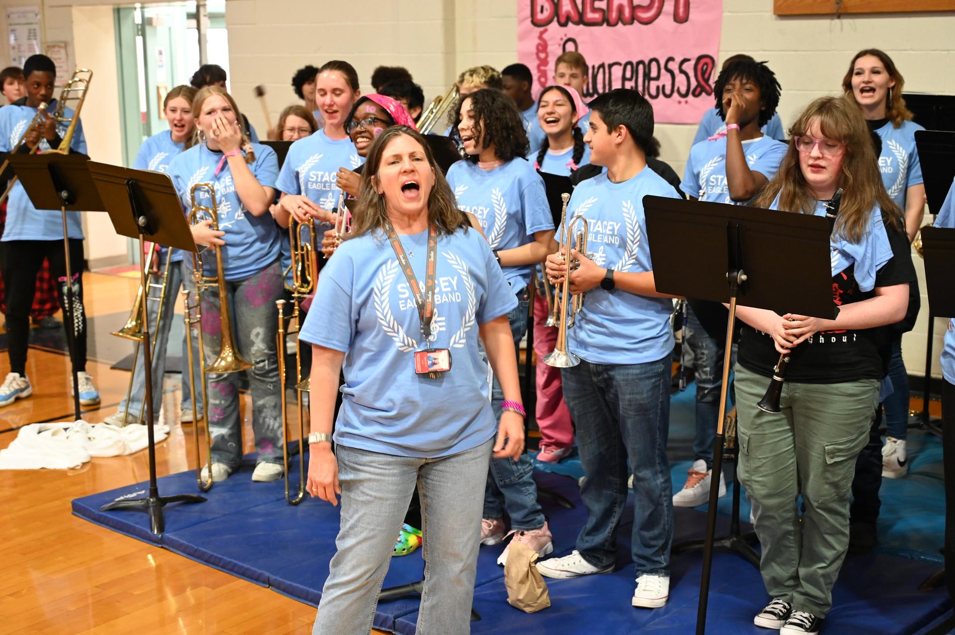 Thanks to Stacey H.S. Stuco, the band, choir, and Mr. Payne & Mr. Martinez for agreeing to participate in the Pie-in-Face charity! Congrats to 6th grade for winning the Spirit Stick! |