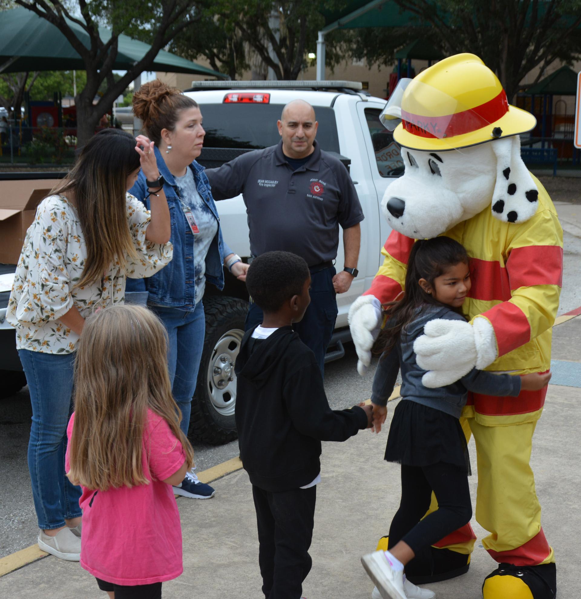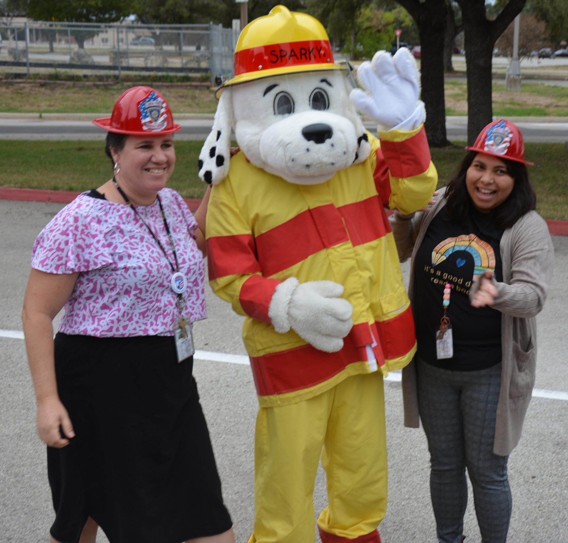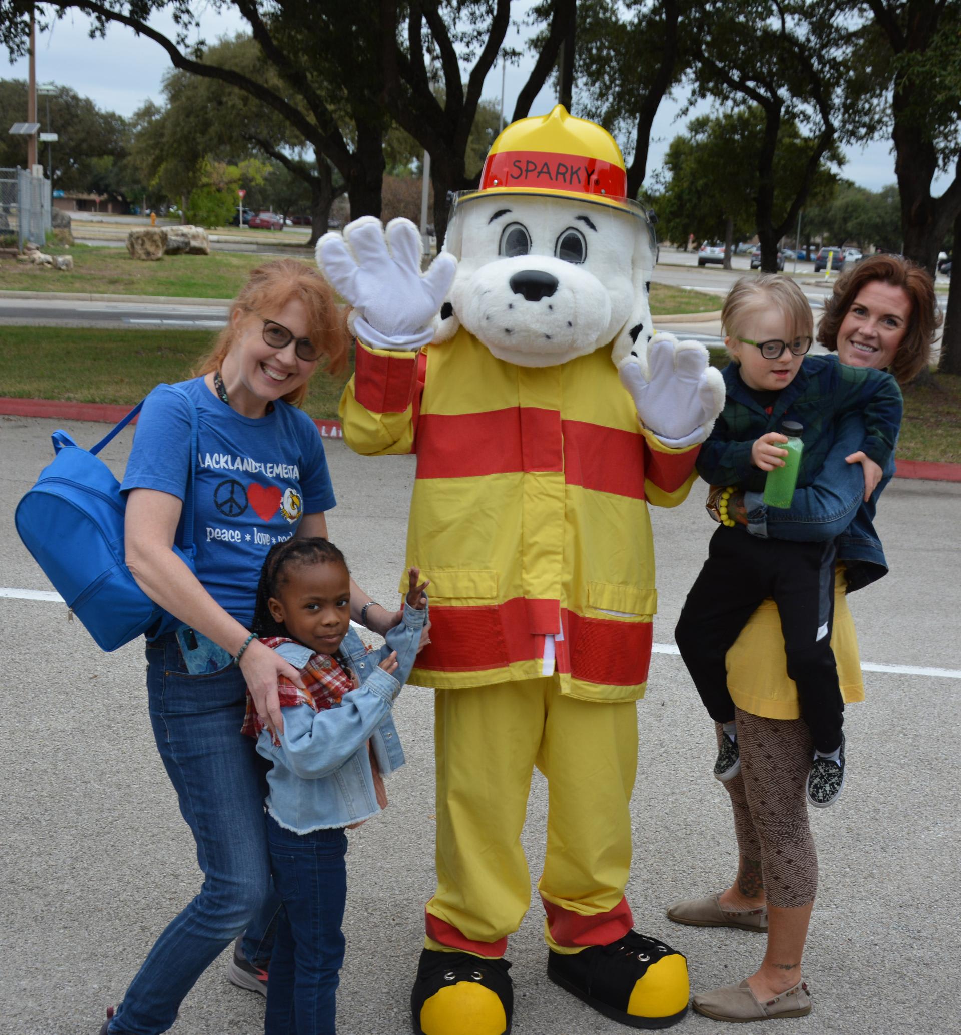 The Lackland Fire Department and Sparky visited Lackland Elementary School with a big fire truck! Pre/ K - 2nd grade got an up close look at the fire truck and 1st, 2nd, and 3rd place winners of the fire safety poster contest were presented their awards. In the mean time, Sparky and more firemen visited 3rd - 5th grade classrooms presenting fire poster contest winners their awards in front of their proud peers. Excitement abounded as fire hats were given out and kids were enthralled with the spectacle!