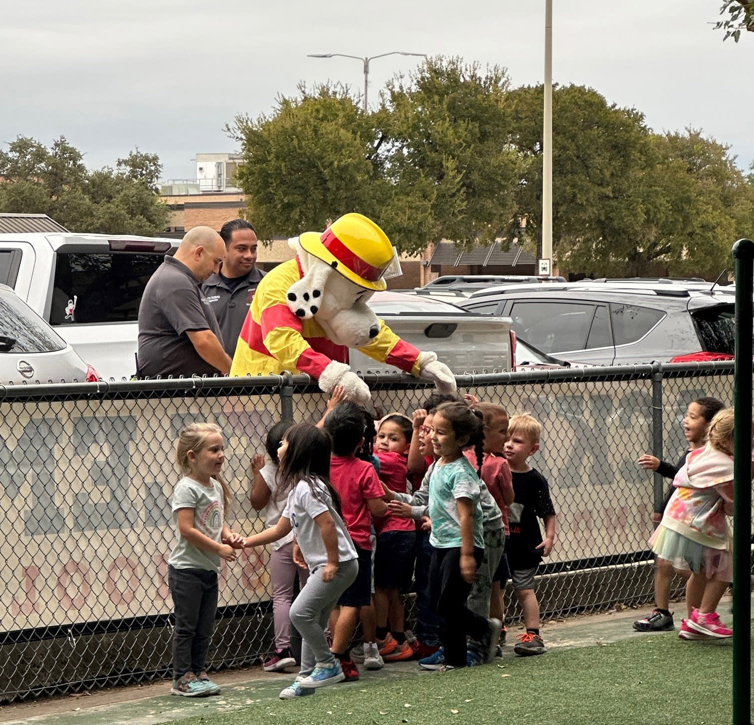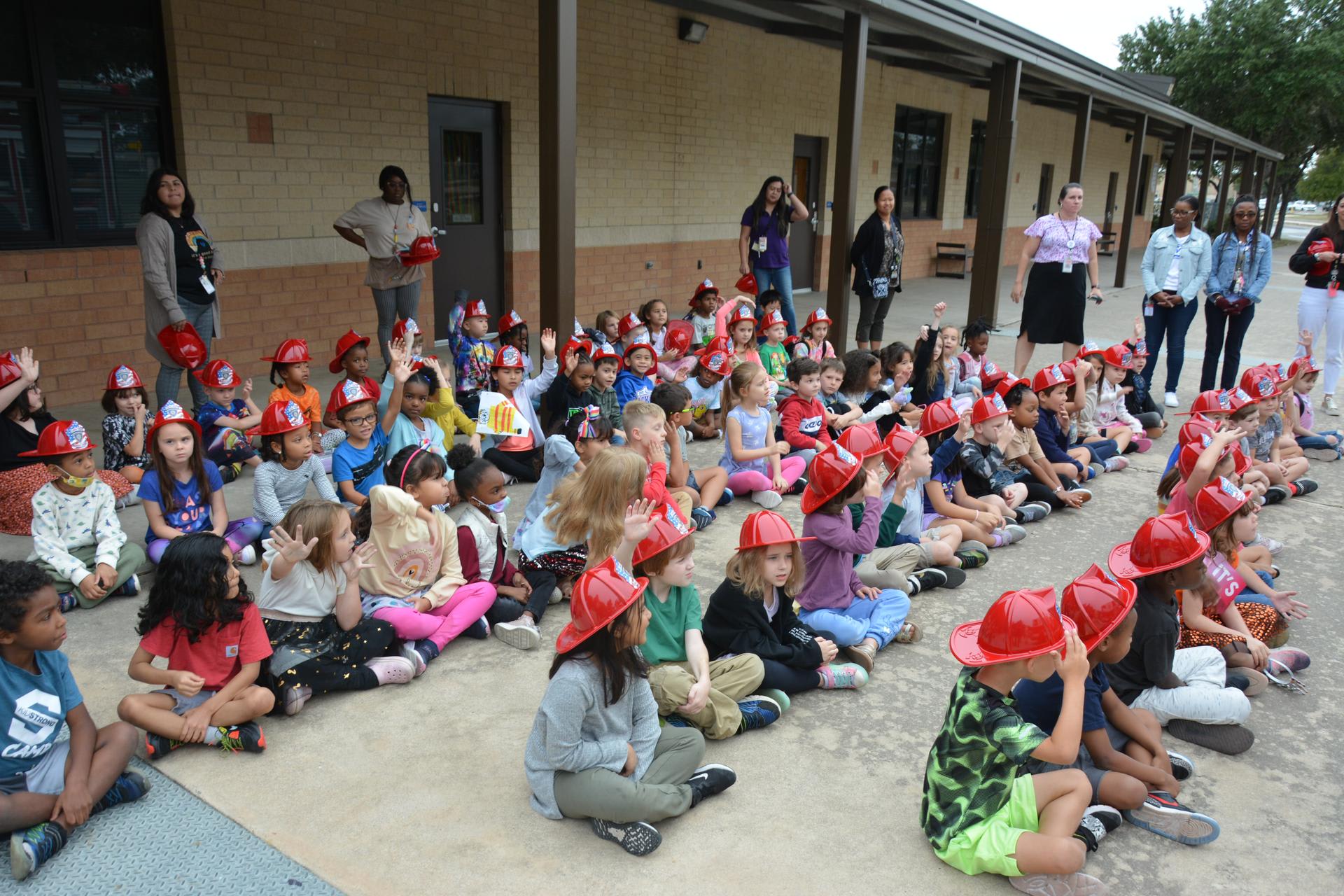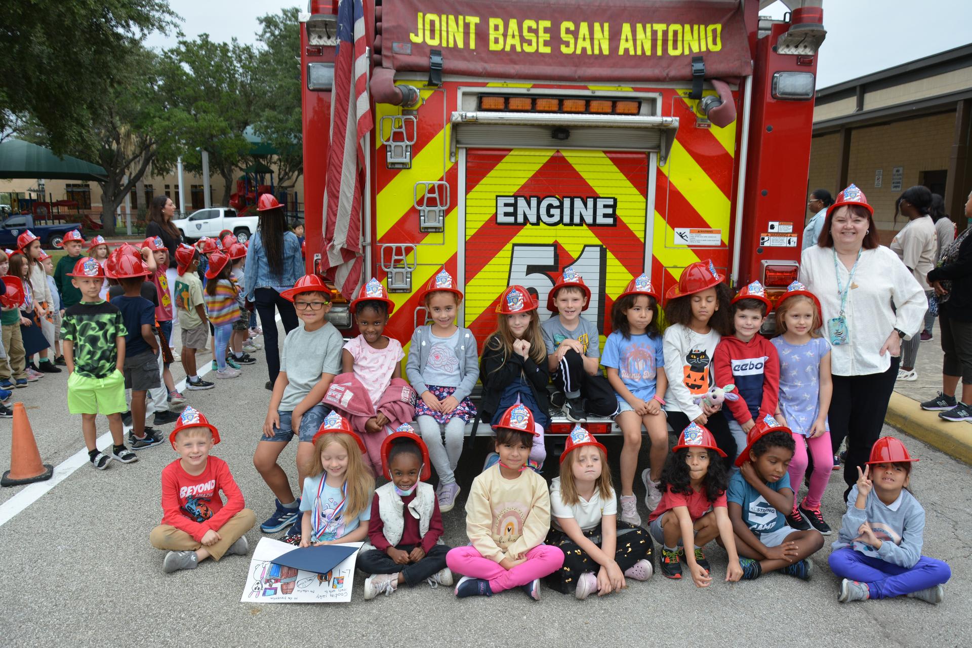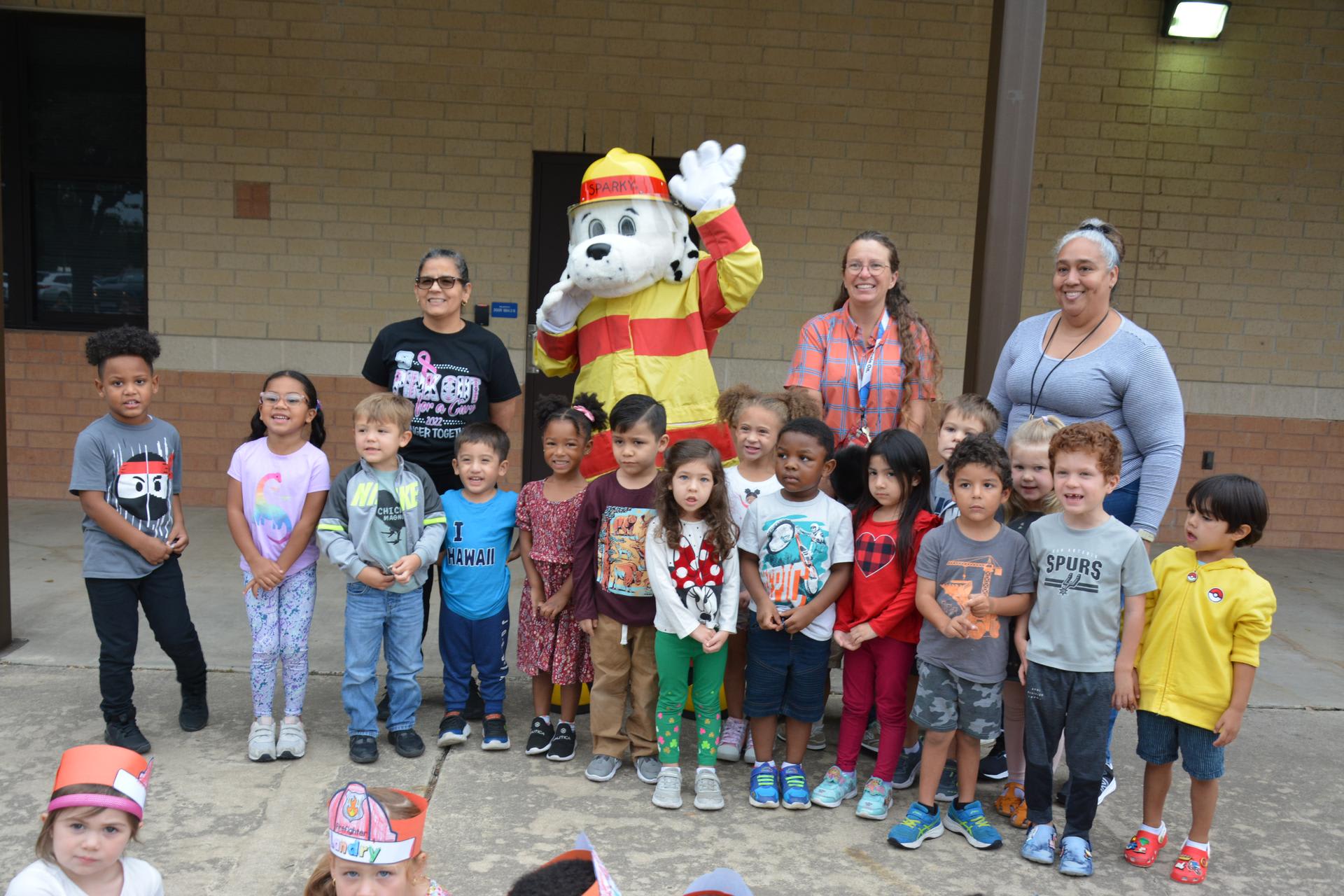The Lackland Fire Department and Sparky visited Lackland Elementary School with a big fire truck! Pre/ K - 2nd grade got an up close look at the fire truck and 1st, 2nd, and 3rd place winners of the fire safety poster contest were presented their awards. In the mean time, Sparky and more firemen visited 3rd - 5th grade classrooms presenting fire poster contest winners their awards in front of their proud peers. Excitement abounded as fire hats were given out and kids were enthralled with the spectacle!