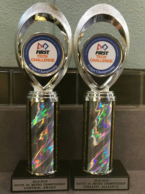 The team finished in 2nd place after 20 matches and made an alliance with the 1st seed to move into the elimination matches. After making a valiant effort, the team was defeated in the finals. However, they did qualify for a regional wildcard event that will take place on Feb 16th at Brandies HS. They were also the highest placing 1A-4A school at the championship and will most likely receive an invitation to the UIL State Championship in Austin April 4-6.