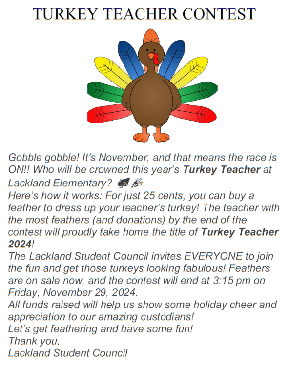 Lackland Elementary School, Mrs. Terry Leija, Leija.t@lacklandisd.net Stacey Jr./Sr High School, Mr. Hunter Shelby, Shelby.h@lacklandisd.net