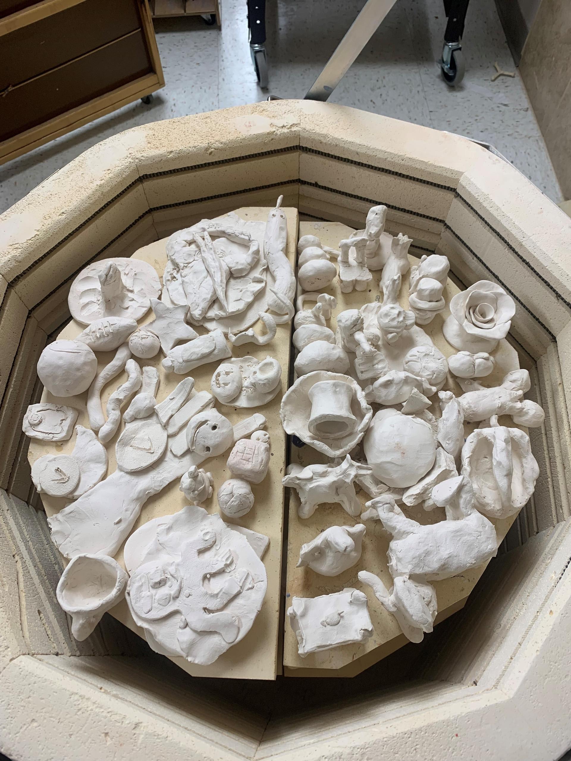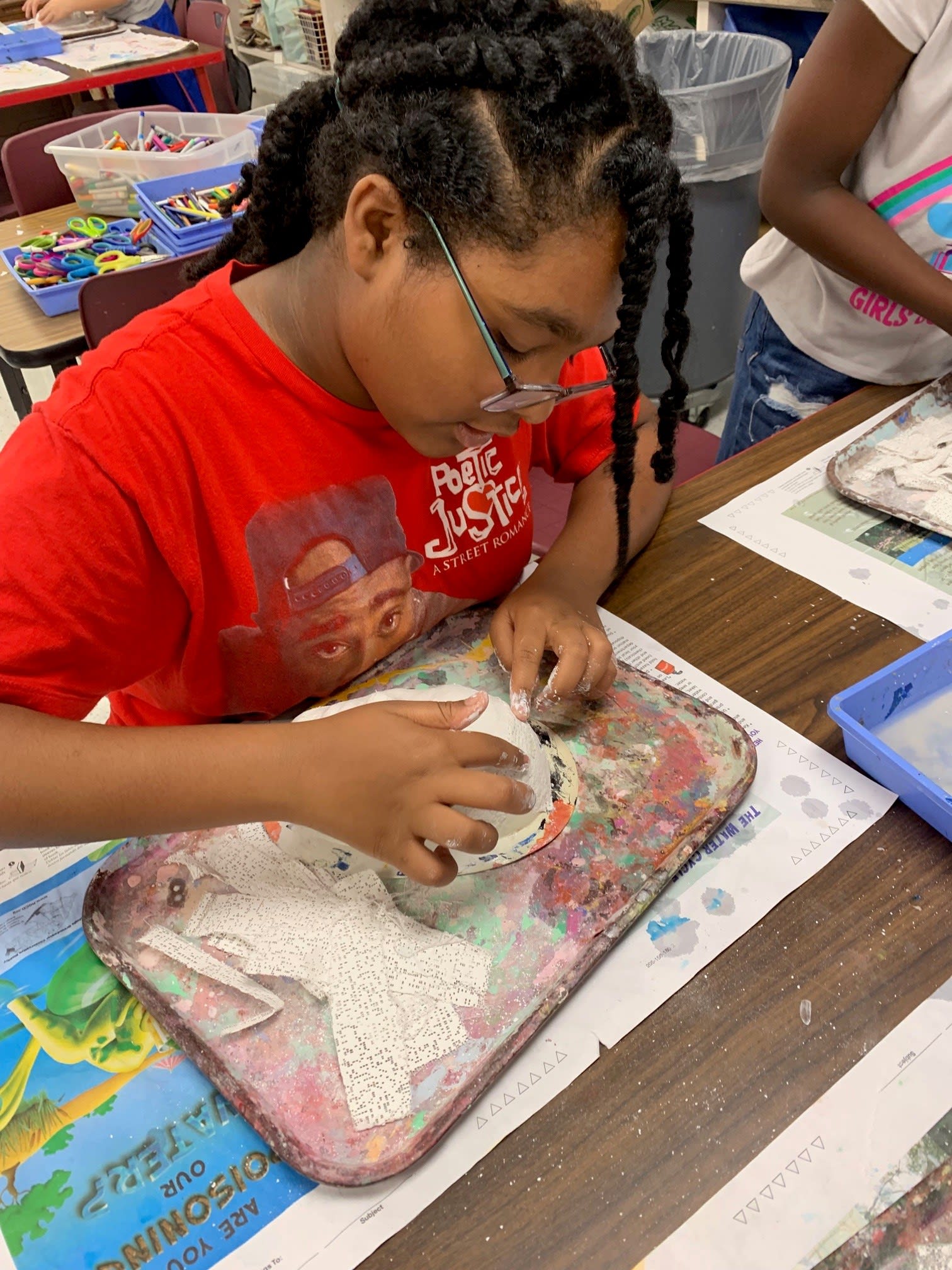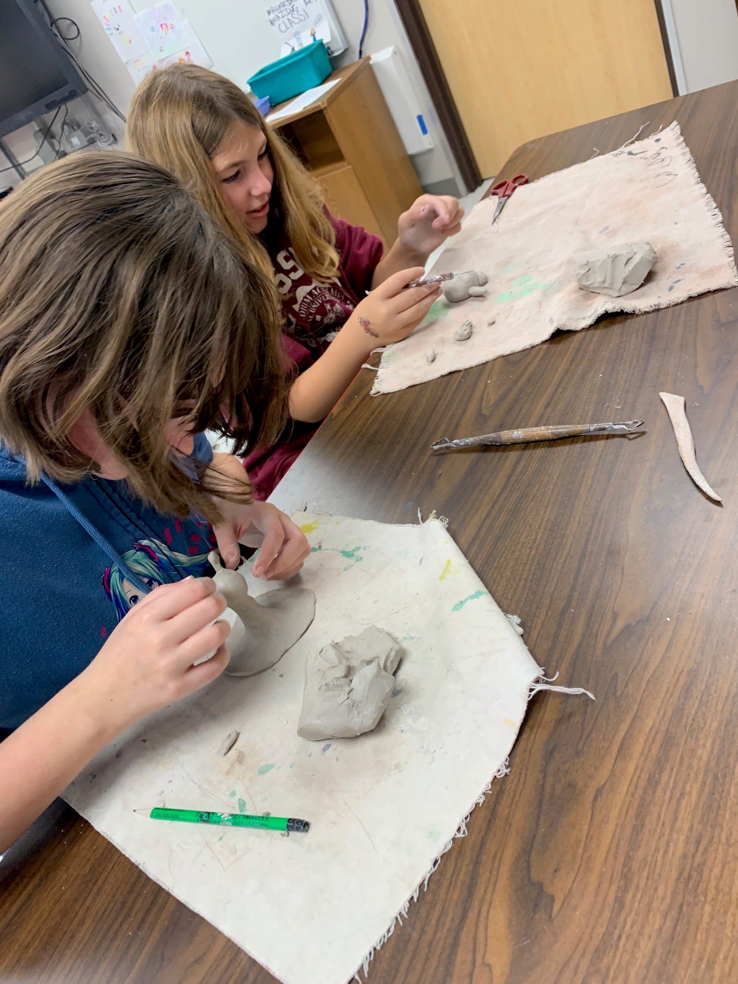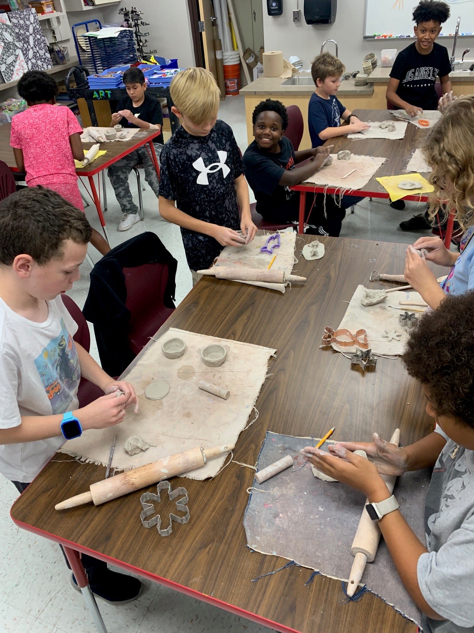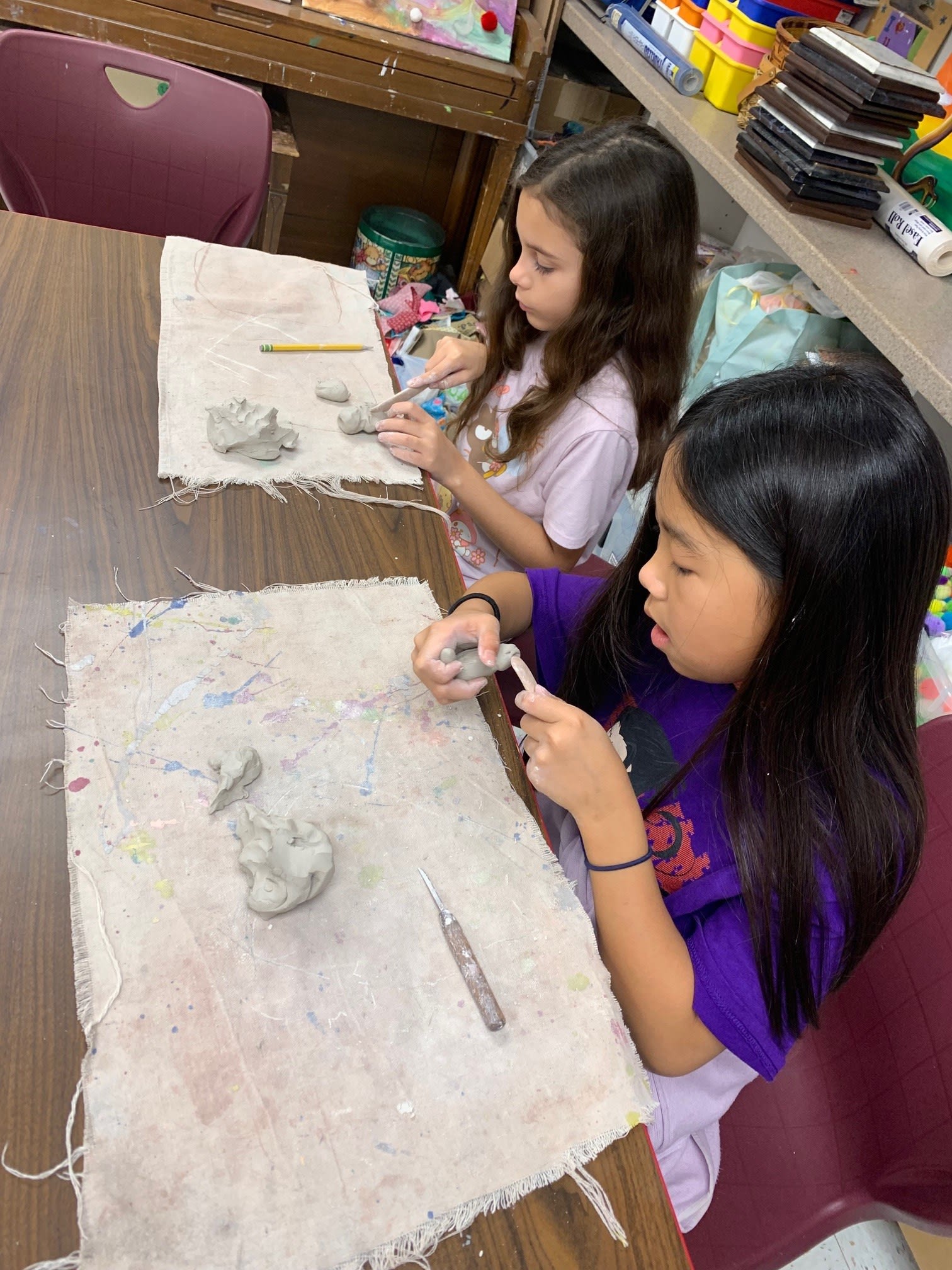 4th / 5th grade art club create masks using plaster gauze strips over a face armature. |