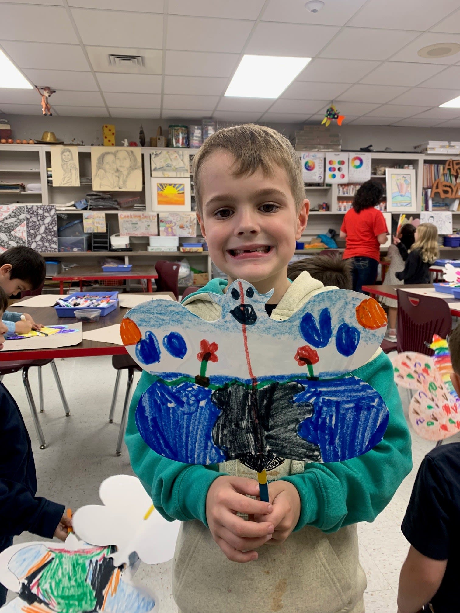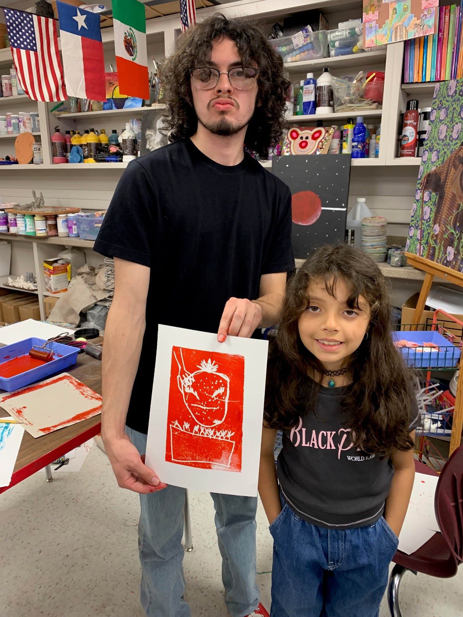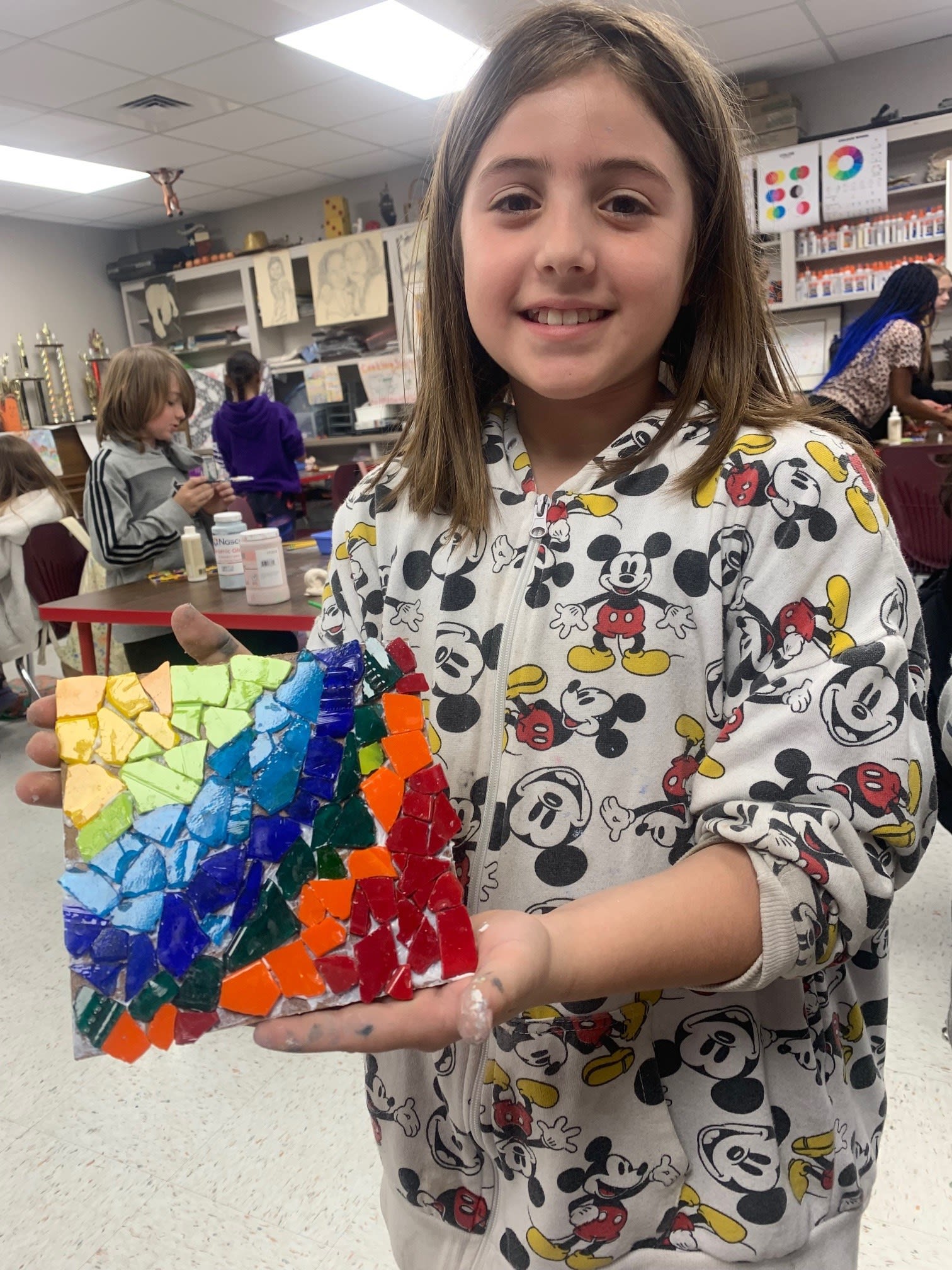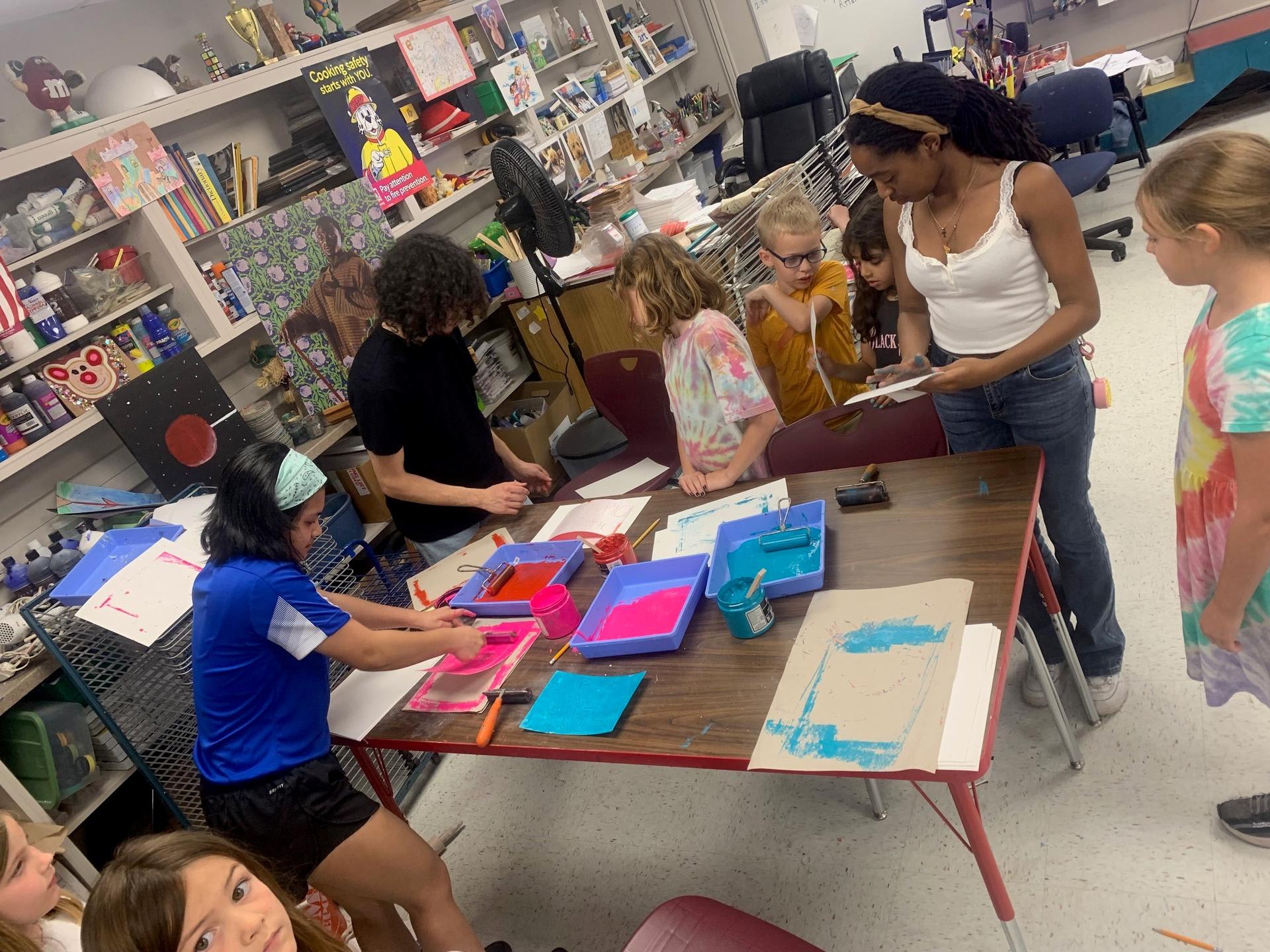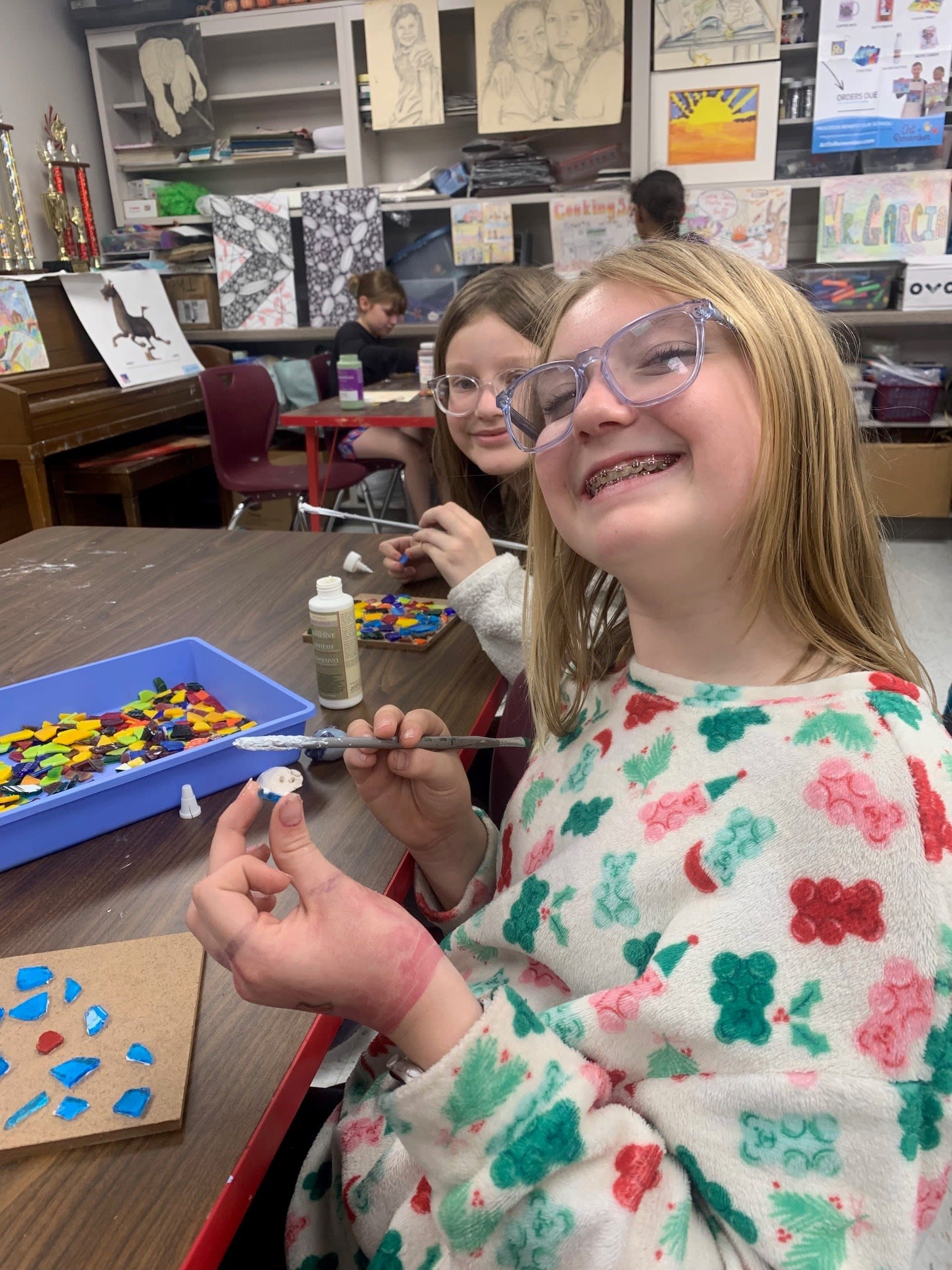 Elementary art clubs experience stained glass mosaic, printmaking and ceramics. Thanks to Taelor Nelloms and the other high school kids for helping with the creative process! |