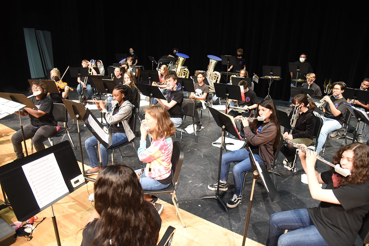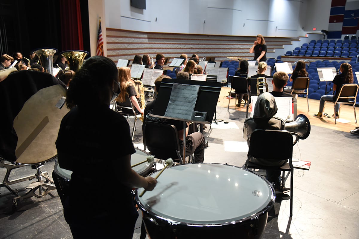 What were some of the things that surprised you when the whole band rehearsed together for the first time? “I guess I was surprised because we stayed together for most of the time, and it seemed like people were watching Mrs. Brock for most of it. The sound definitely surprised me, because I didn’t realize that we would sound that strong together. When you’re at home, you don’t hear most of the band over your sounds unless you turn your volume up loud.” -Caitlyn Baney, 10th grade