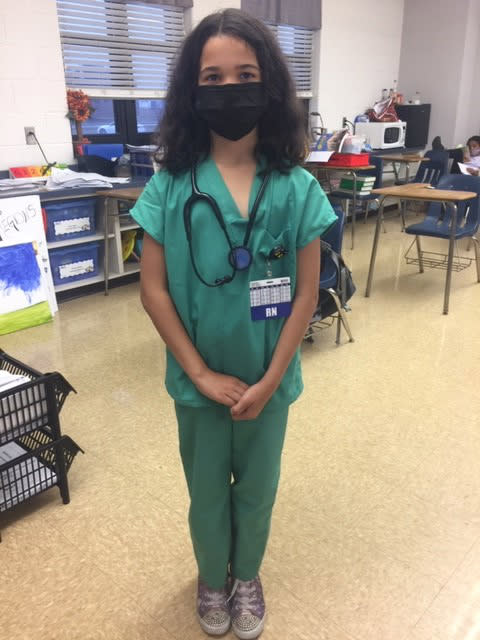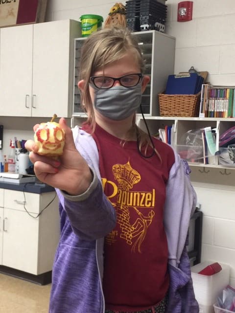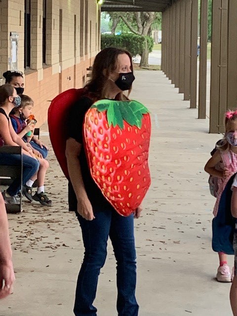Lydia Yates dresses up for Day “C” of the ABC Countdown to Summer- Career Day! Victoria Van Vickle bites into an apple on “F” Day- Fruit Day!