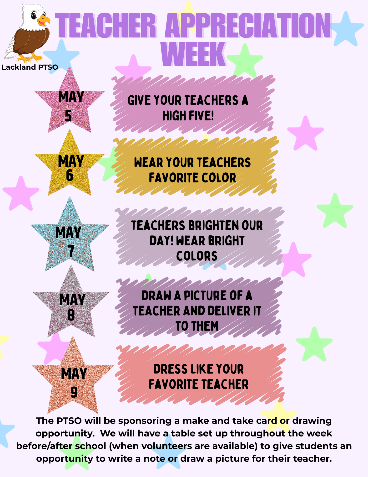 | Upcoming Events: *May 5 - 9 Teacher Appreciation Week