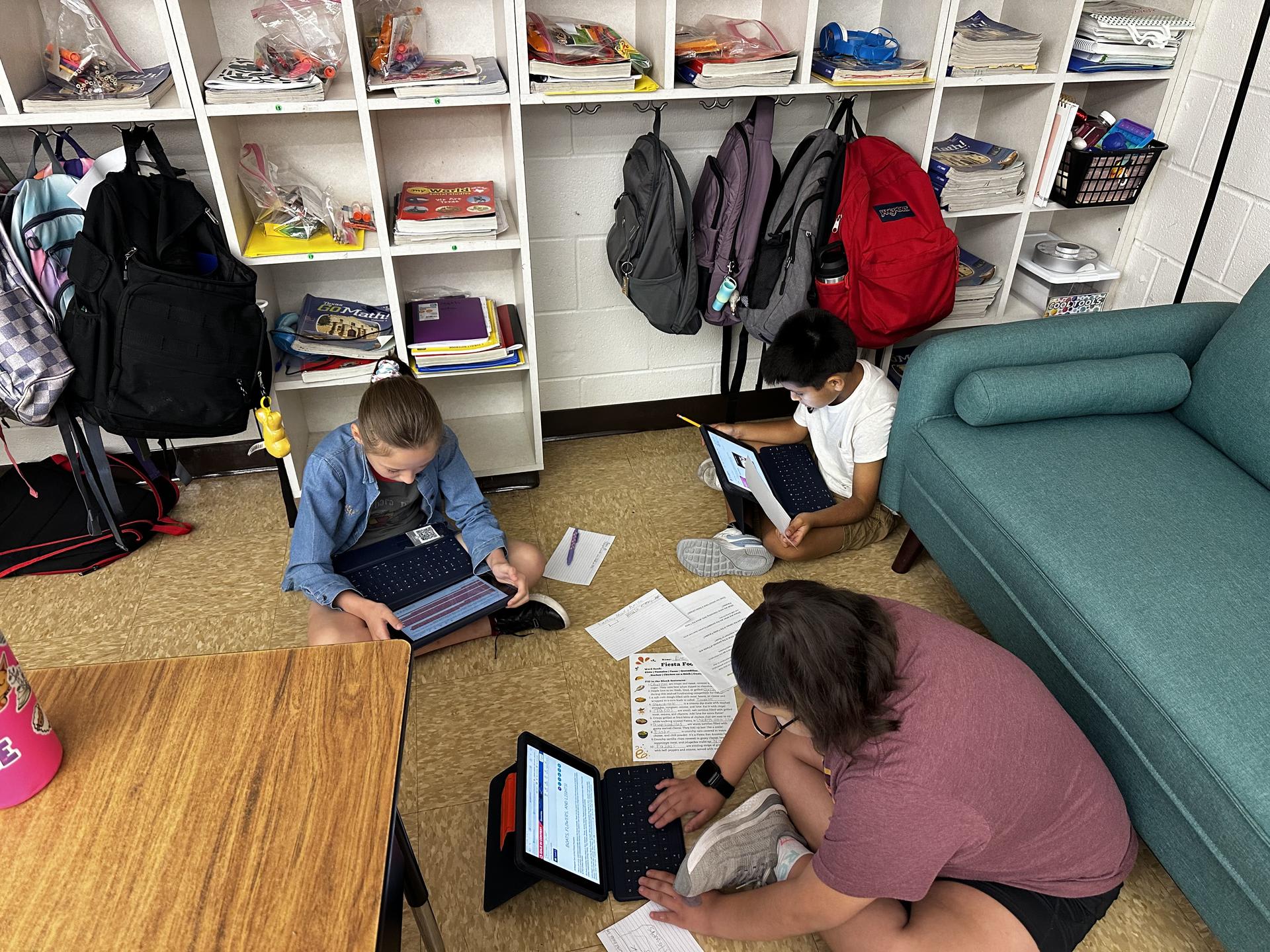 Math review skills: Students reviewing long division skills & learning from their peers. Everyone did a great job! |