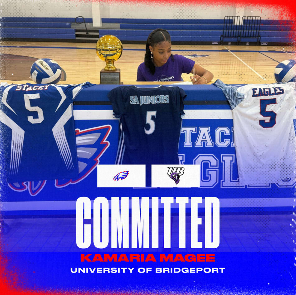 Kamaria Magee signed her national letter of intent to extend her volleyball and academic careers at the University of Bridgeport on Monday April 28th!! Kamaria was surrounded by friends, teammates and family as she made her commitment. We wish Kamaria nothing but the best in her future endeavors as a Knight but once an Eagle always an Eagle!! |