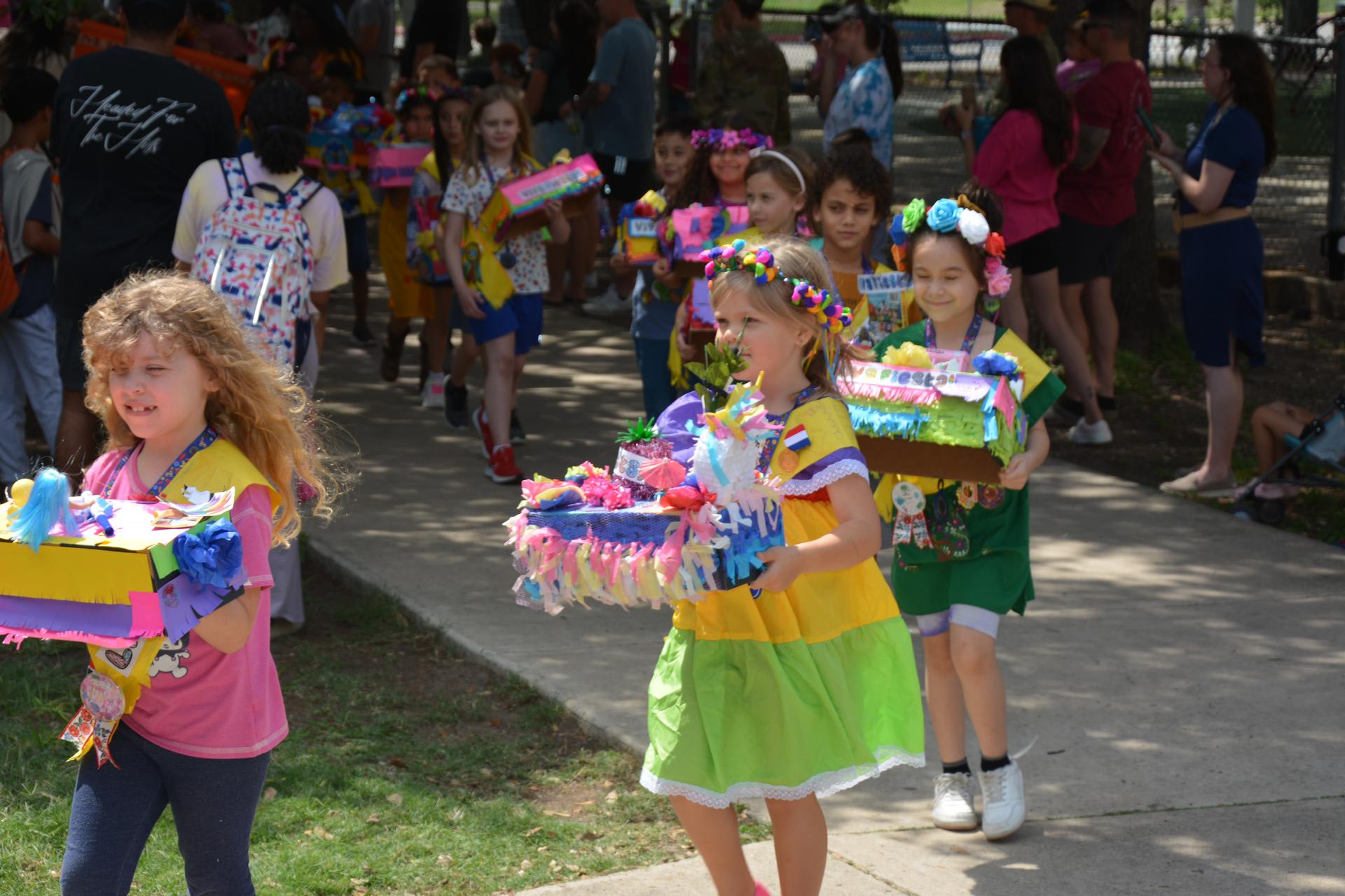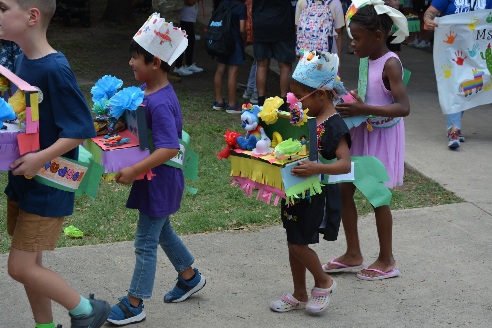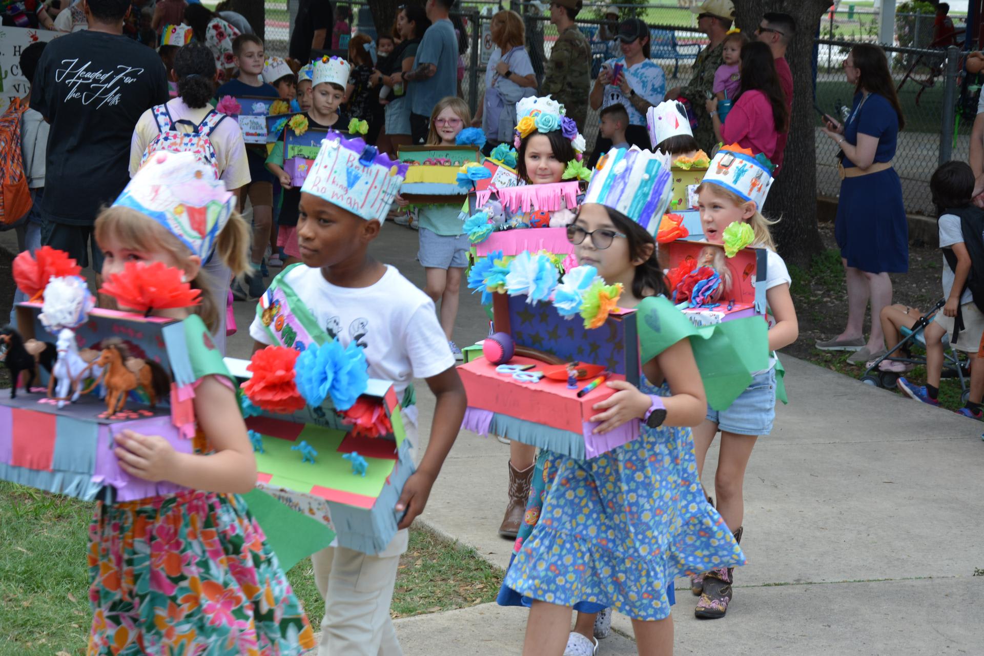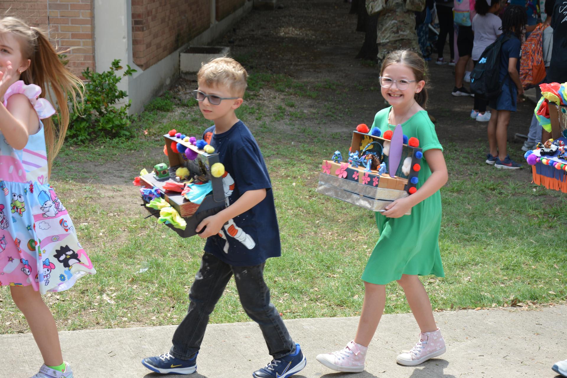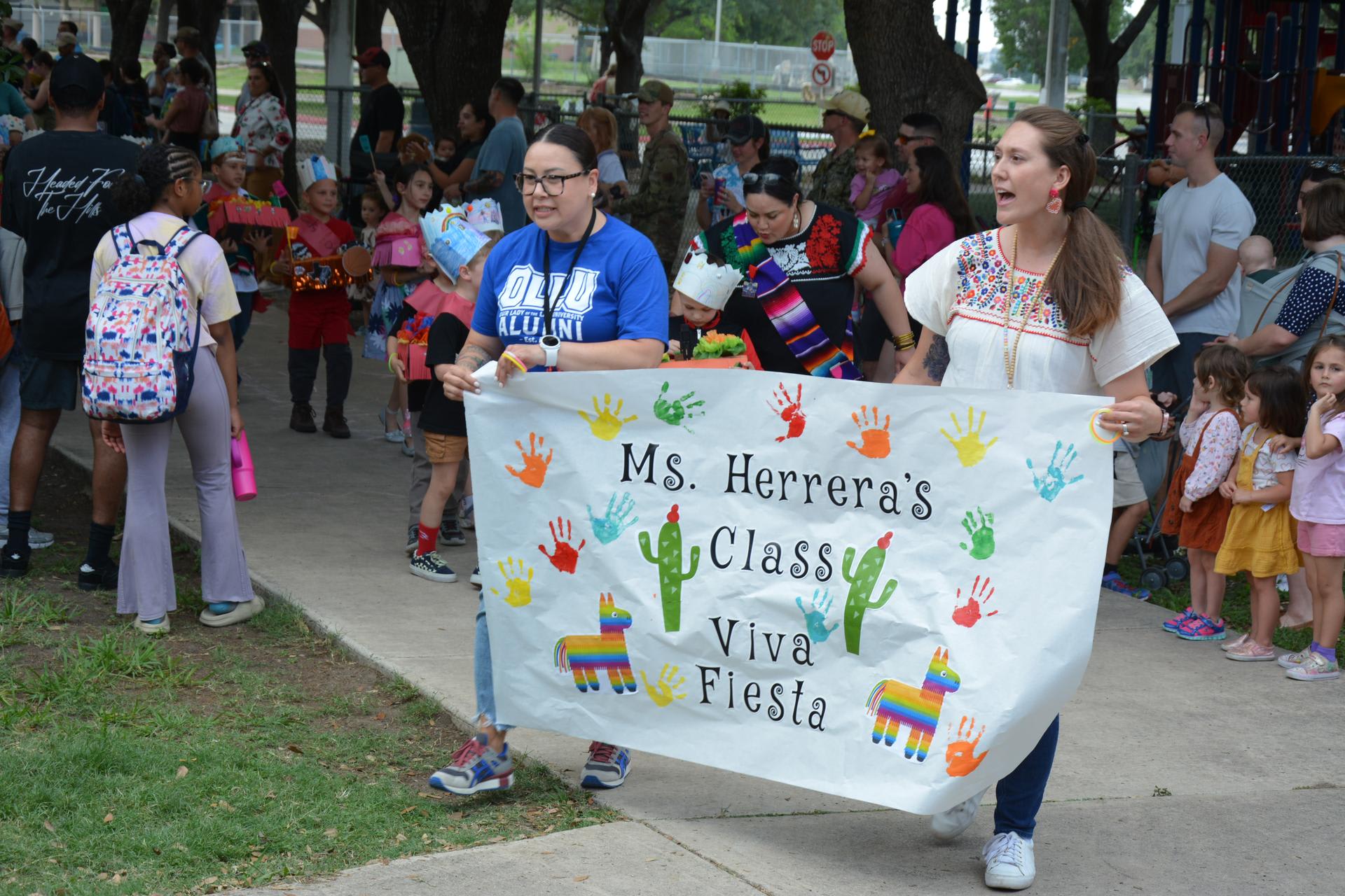 Social Studies Night at the Museum teamwork: Students in Mrs. Guerrero's class engaged in researching different information about Fiesta and the purpose of this significant annual cultural event in San Antonio.