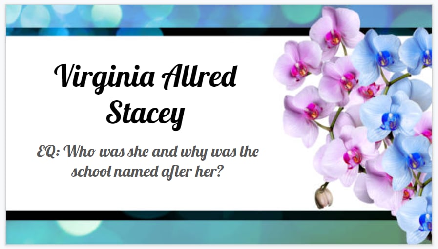 The AVID elective classes held their first family night on Sept. 8 to present what AVID is to their parents and show off the project they had been working on. What started off as a focused note-taking activity turned into an inquiry project. The essential question was, "Who was Virginia Allred Stacey, and why is our campus named after her?" It turns out that if you try and search her name on the internet, the only thing that really pops up are school related events.