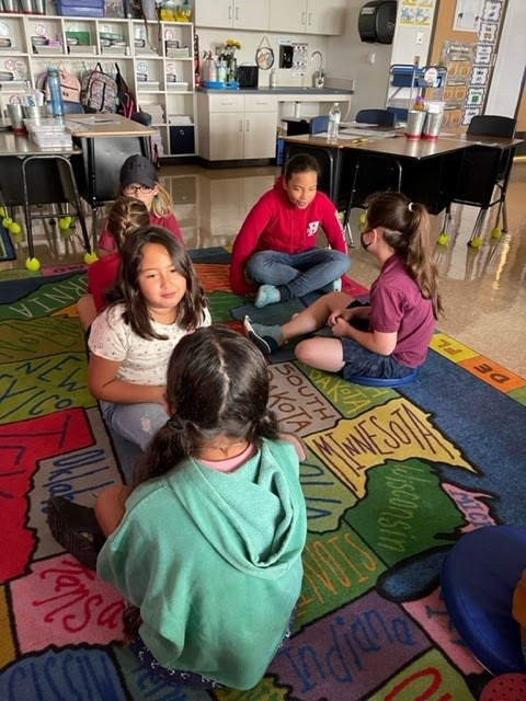 4th grade group sharing. Reading. Morning deep breathing time during mindfulness generating encouraging thoughts for ourselves and others. |