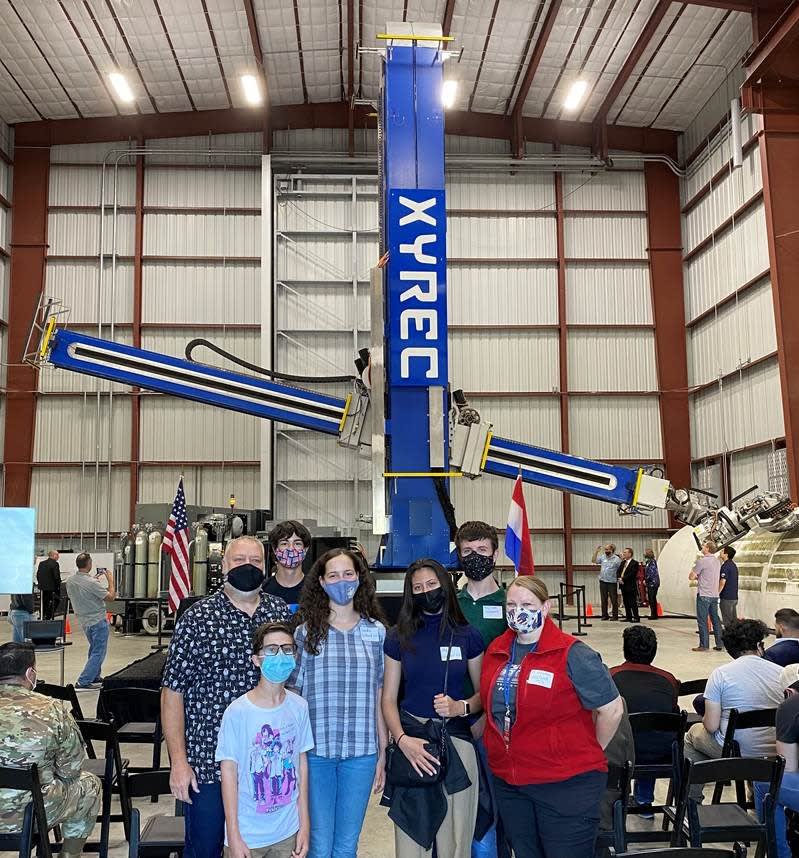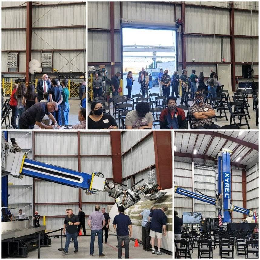 Bots in Blue see the Worlds Largest Robot On October 28th, members of the Stacey High School Robotics team, Bots in Blue, attended the unveiling of the world’s largest industrial robot built by XYREC. The students were among just 100 invitee’s that included both the Minister of Foreign Affairs and Minister of Trade from the Dutch government. The students had a private conversation with Peter Boeijink, the CEO and designer of XYREC’s 7 story robot that autonomously strips paint from large commercial and military aircraft with a laser. The students also were able to meet with the Director of Robotics at Southwest Research Institute (SwRI) as well as CEO’s from Renu Robotics, Hatchbed Robotics, and PlusOne Robotics. The students were particularly excited to have met with David Monroe, the inventor of the cell phone camera and the technology behind Facetime and Zoom.