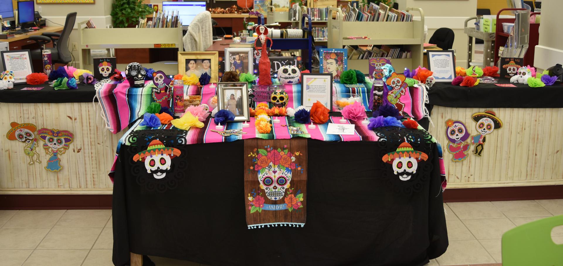 Día De Los Muertos at Stacey By Grace O’Brien, 11th grader Ofrenda in the library, made to celebrate Día De Los Muertos