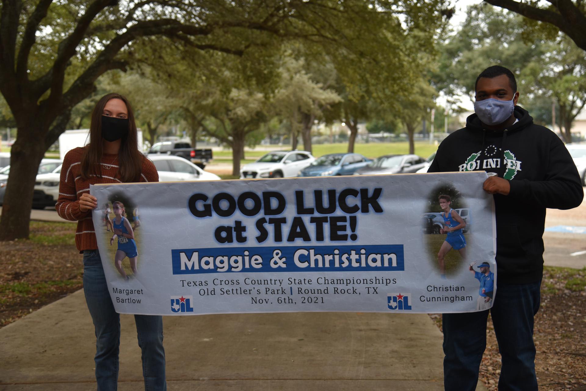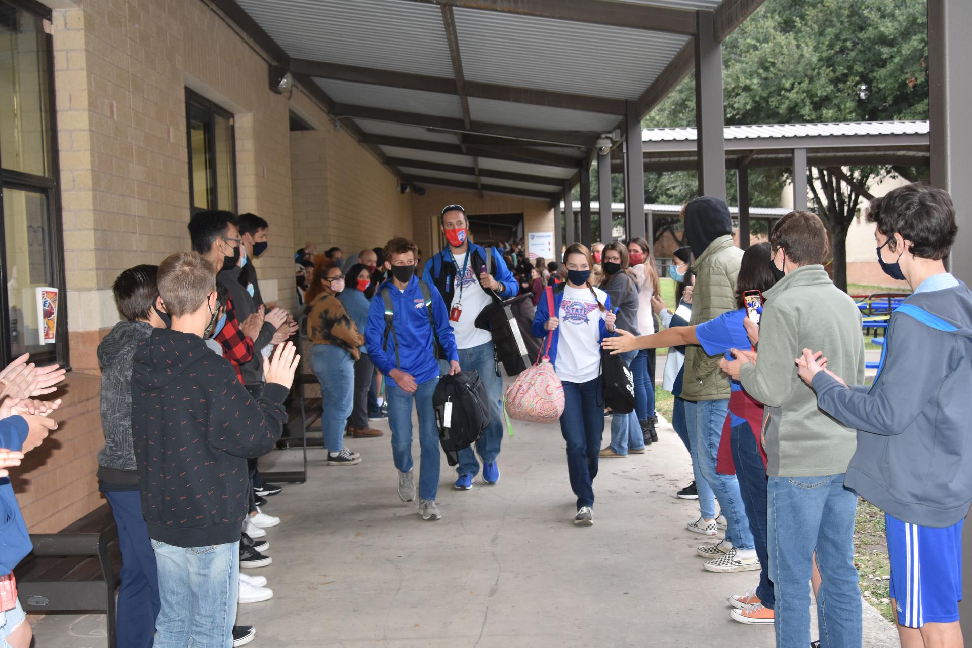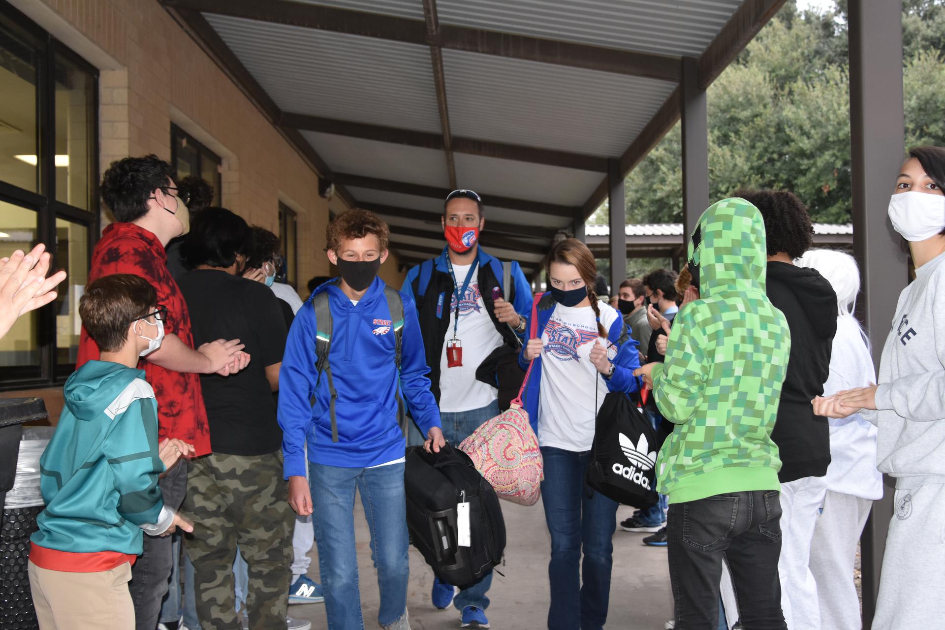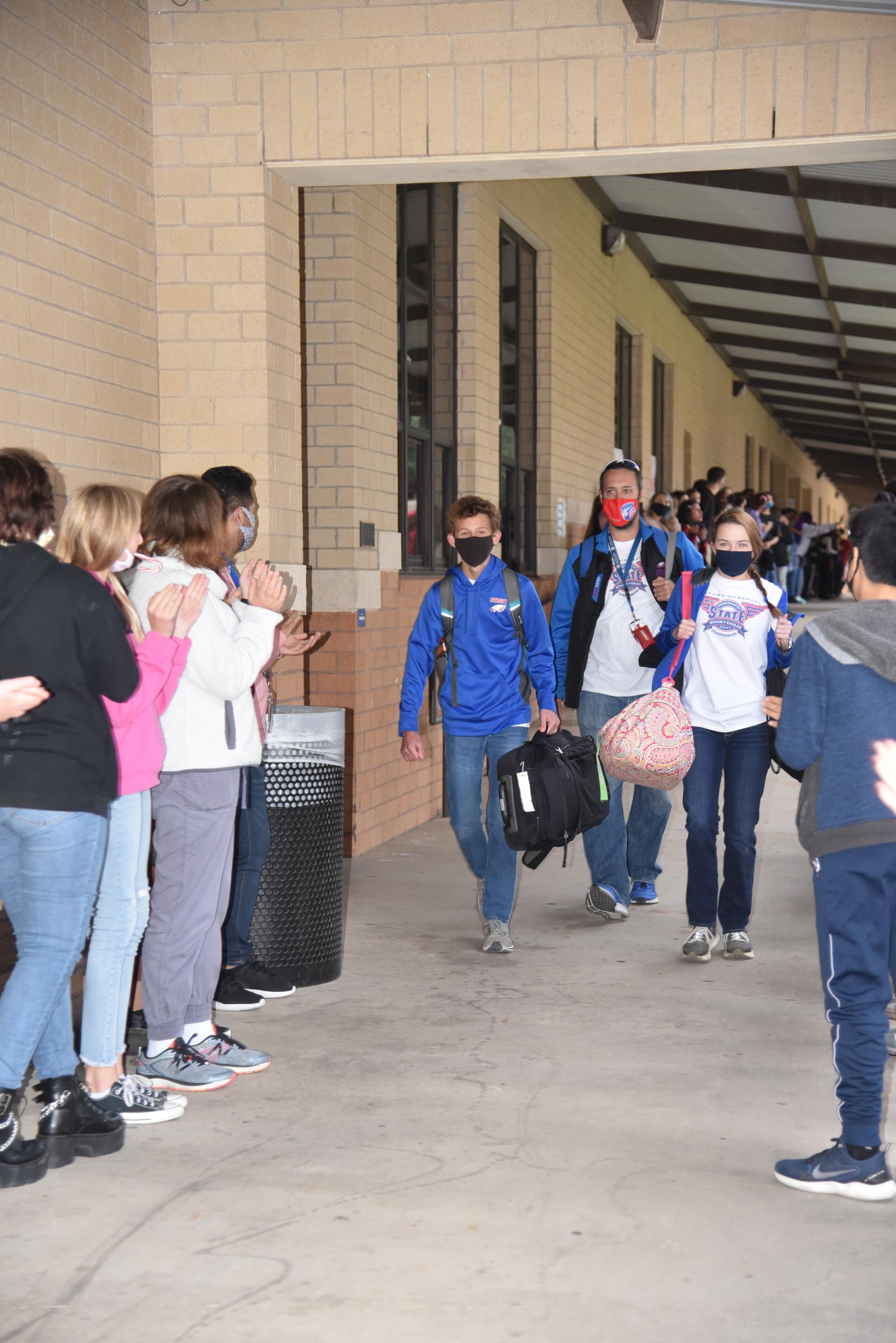 *Elementary, Middle School and High School Substitutes *Substitute Nurses *Elementary Cafeteria Monitors *Elementary Cafeteria Monitor/cross-walk *Bus Drivers *Custodians Click on the link to apply https://www.applitrack.com/lacklandisd/onlineapp/default.aspx Stacey Happenings Congratulations to Maggie Bartlow and Christian Cunningham on qualifying for the UIL State Cross Country meet. Maggie placed 5th at the Regional meet in Corpus Christi while Christian came in at 11th in his race. They will run on Saturday in Round Rock at 8:30AM and 9:00AM. Good luck on your races. Students lined the walkway during 2nd period on Friday to give cheer them on and wish them good luck as they left campus.