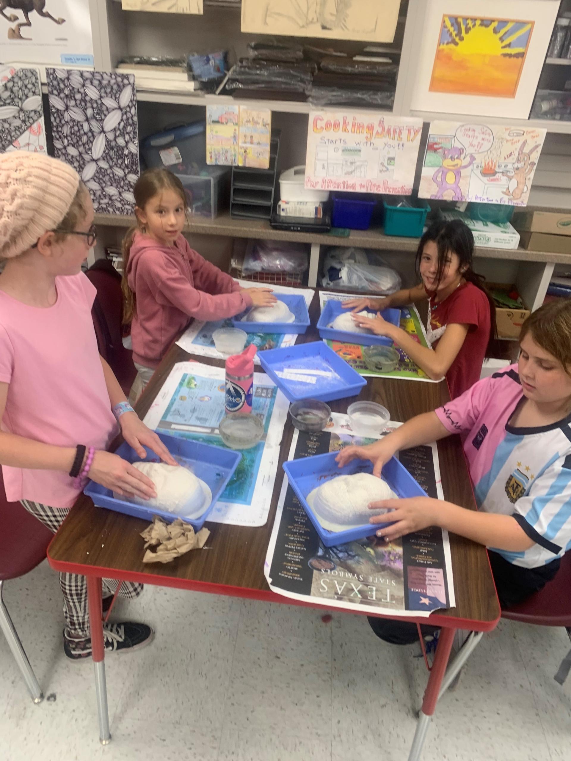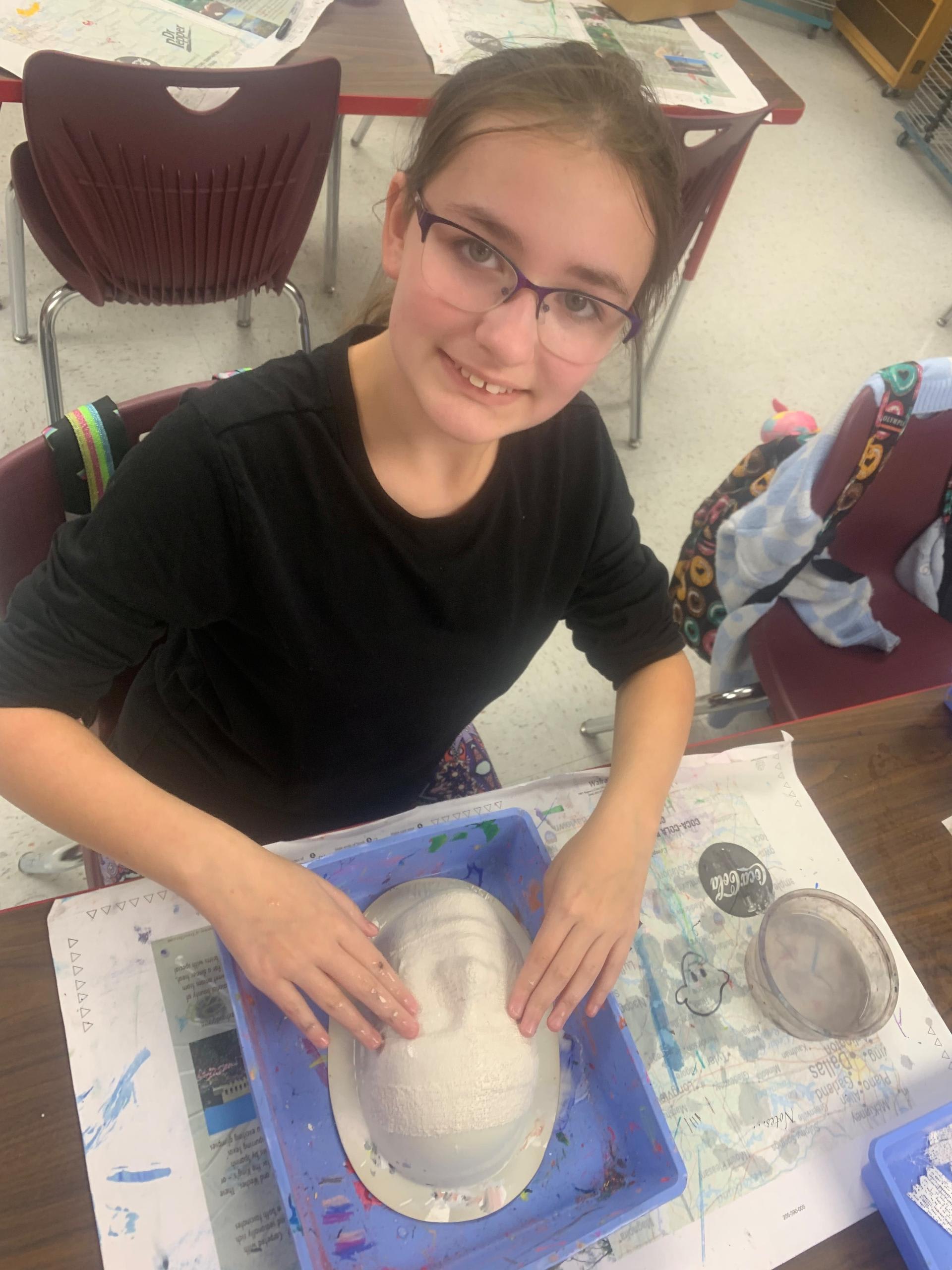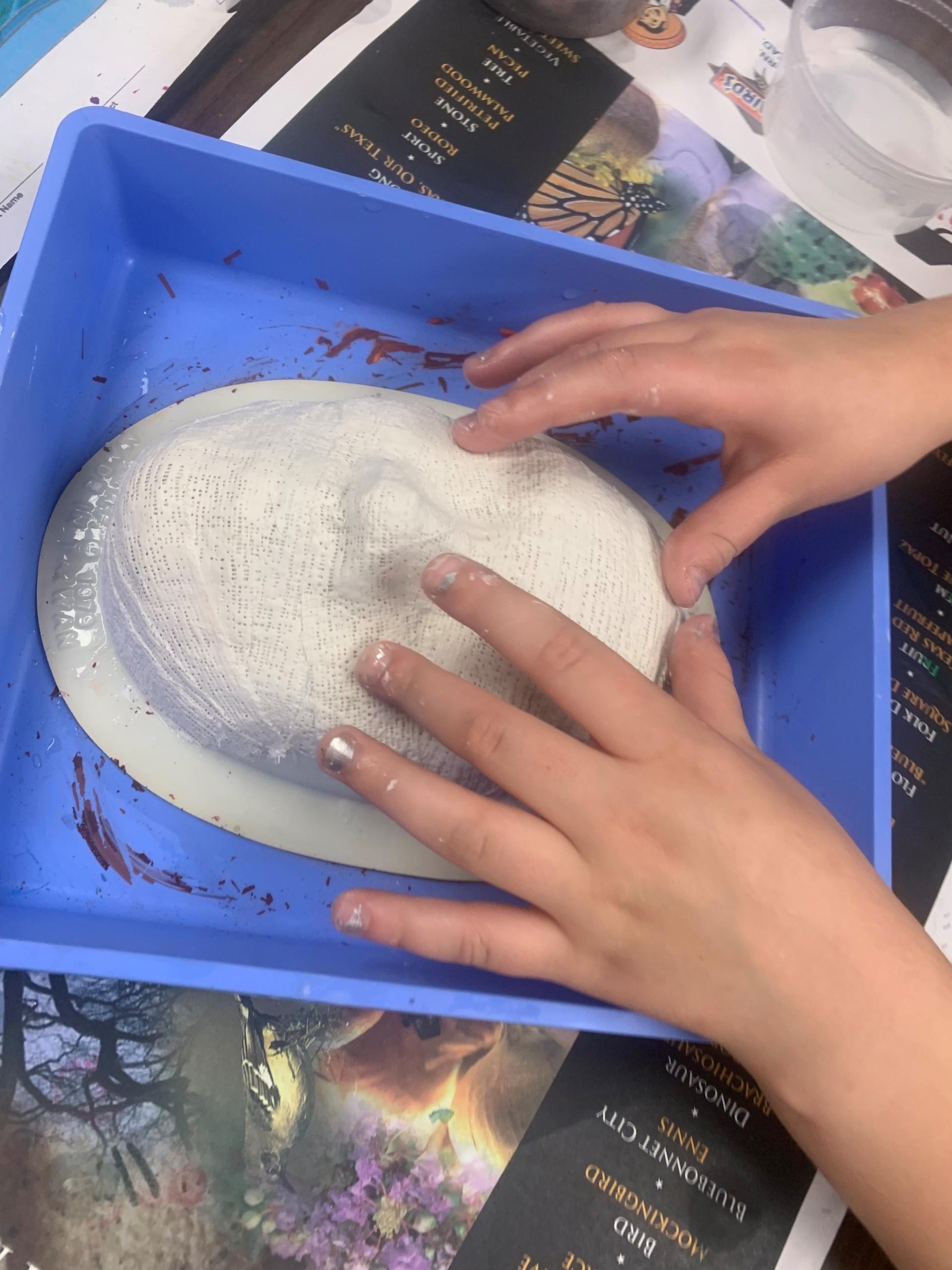 4th / 5th grade art club uses plaster gauze strips to make masks! |